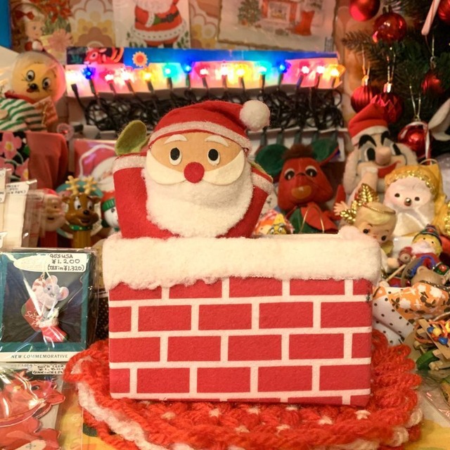 60'S〜70'S DAKIN社 Vintage Santa Claus Dream Pets。 60年代から70年代 Made in Japan DAKIN社製のドリームペッツです。 クリスマスシリーズのドリームペッツで、レンガの煙突からひょこっと両手を上げたサンタクロースがとっても可愛いアイテムです。 サンタさんと煙突のボックスはくっついている作りです。 サンタさんの横にスペースがあるので、サイズの合うお気に入りの雑貨を飾ったり、ペン立てやコーム入れなどとしてご使用頂いても可愛いかと思います。 ライトグリーンの手袋に上目遣いの表情がクリスマスシーズン以外も飾っておきたい可愛いさです。 煙突は厚紙にフェルトが貼られた作りで、両サイドとフロントはボアのような生地が貼られています。 サンタさんのお髭もボア生地で、他はフェルト生地です。 ボックスの内側に若干の折れ線、袖口のフェルトのラインに僅かな糸のとびだしや、点のような擦れ、ボックスのフロントの上端に小さなシミ、後ろ側の上のフェルトのラインに点のようなごく薄らとしたシミが見られますが全体的にきれいな方かと思います。 高さ 約16cm 横 約13cm 奥行き 約5cm 布タグ付き ■発送・注文に関する情報や注意事項 ご注文後、通常3~5営業日以内に発送いたします。宅配便にてお届けいたしますので、配送先の住所が正確であることをご確認ください。 ■ その他の情報や注意事項 在庫には限りがありますので、売り切れの場合はご了承ください。また、お使いのディスプレイによって色合いに若干の違いが見られることがあります。