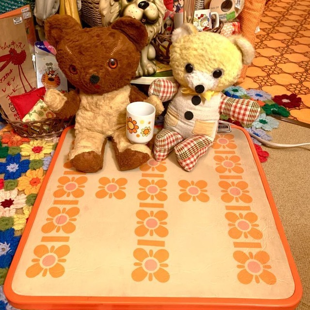 昭和レトロ National flower柄 ホットカーペット。 コンセントに差し込んで使用するパネルタイプのホットカーペットです。 ポップなオレンジのプラスチックの枠やオレンジ、ピンクのレトロなフラワー柄がとっても可愛いデザインです。 表面はサラサラとした手触りで、裏面はフェルトマットとなります。 ほんわかとした優しい温かさです。 使わない時は立て掛けてディスプレイして頂いてもポップな雰囲気が可愛いかと思います。 経年による裏面に若干の生地の擦れとへこみ、表面にシミやシワのくせ、プラスチックの枠に所々シミがあります。 作動確認済みです。 縦 約43.8cm 横 約44cm 厚さ 約2cm コードの長さ 約252cm 古いアイテムの為、ご購入後のご使用はお客様の責任の元お願い致します。 ■発送・注文に関する情報や注意事項 ご注文後、通常3~5営業日以内に発送いたします。宅配便にてお届けいたしますので、配送先の住所が正確であることをご確認ください。 ■ その他の情報や注意事項 在庫には限りがありますので、売り切れの場合はご了承ください。また、お使いのディスプレイによって色合いに若干の違いが見られることがあります。