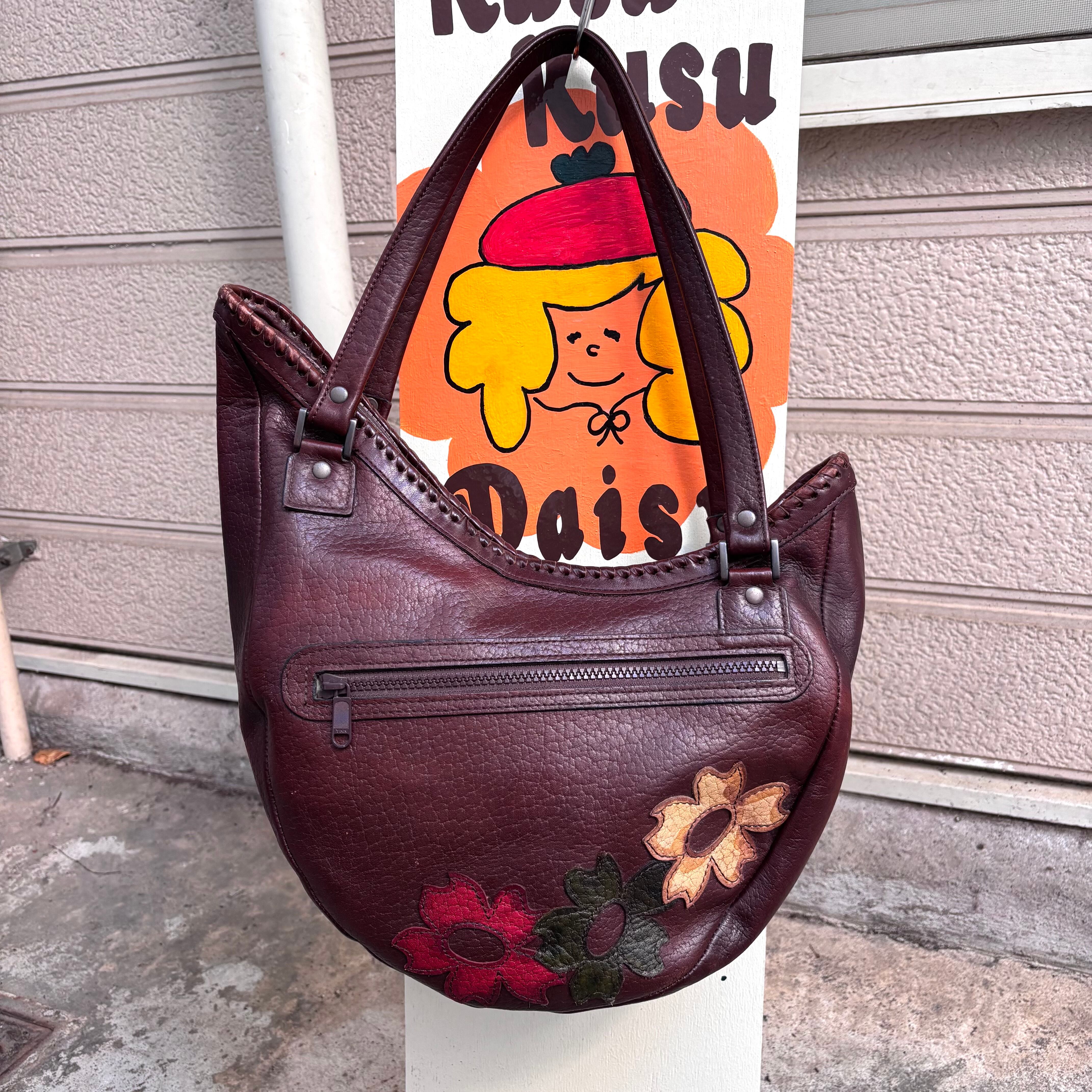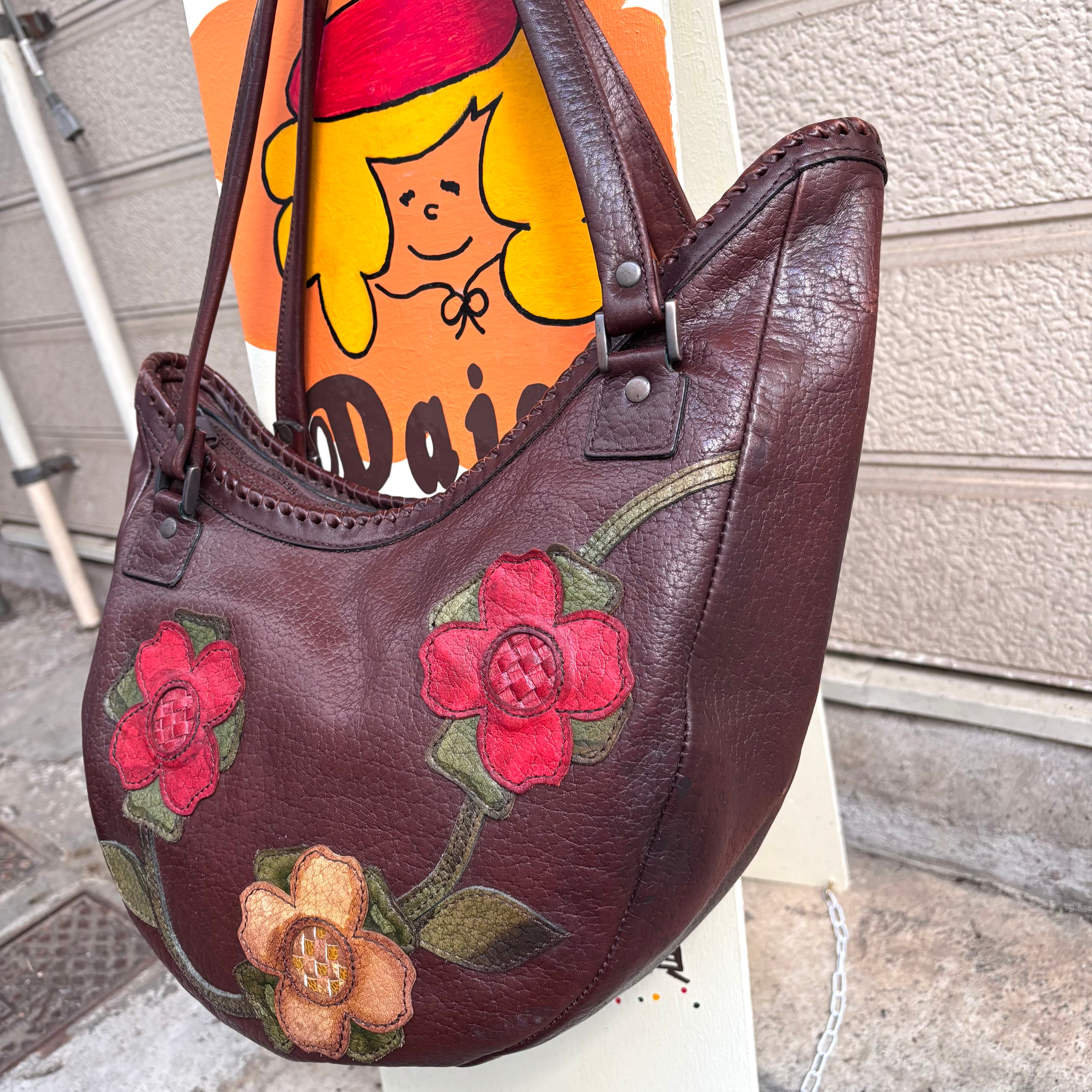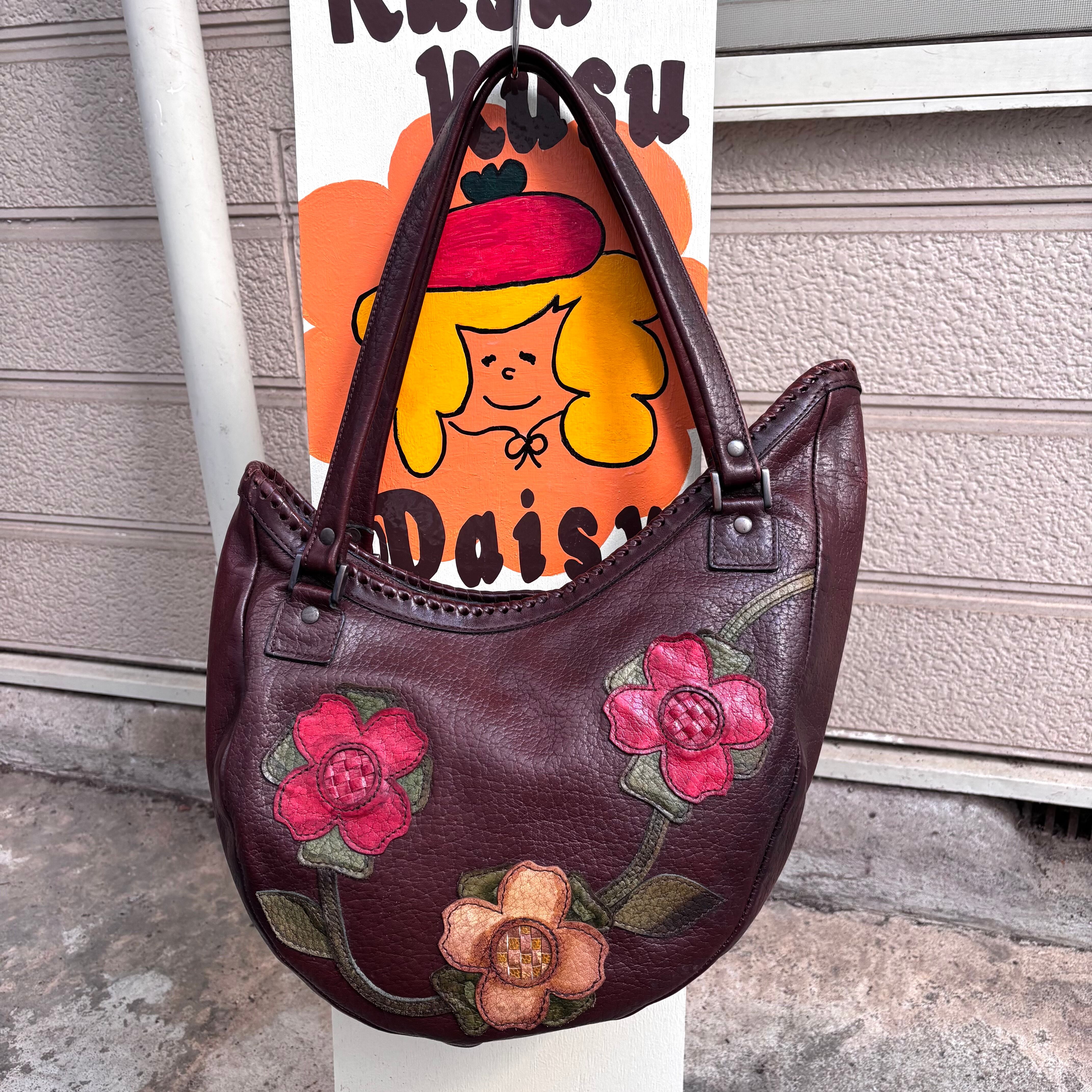 70年代から80年代 ヴィンテージ フラワーパッチ レザーショルダーバッグです。
