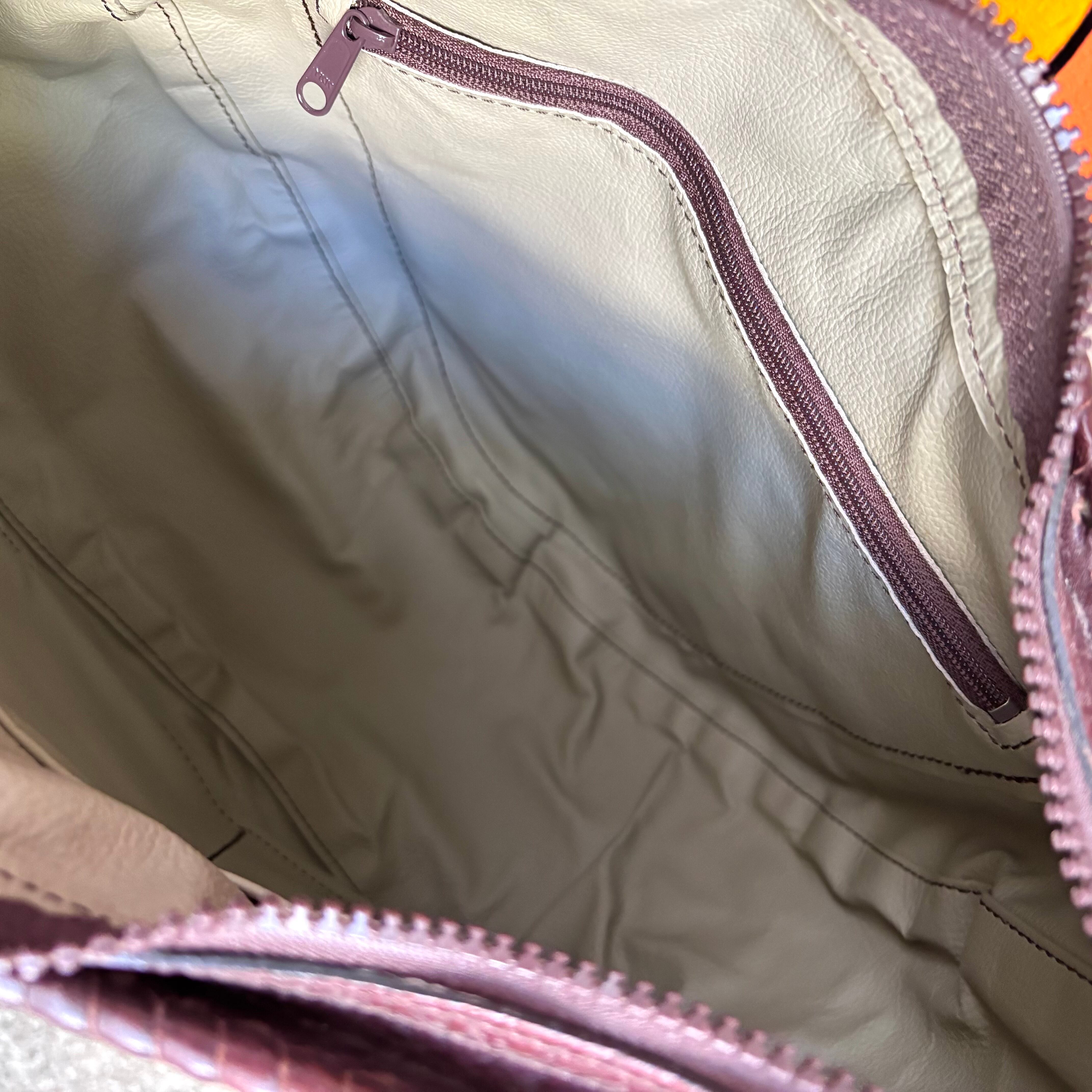 裏側にジップ付きのポケット、内側にジップ付きのポケットと2つのポケットがある作りで収納力もありデイリーにご使用頂けるかと思います。