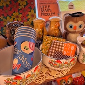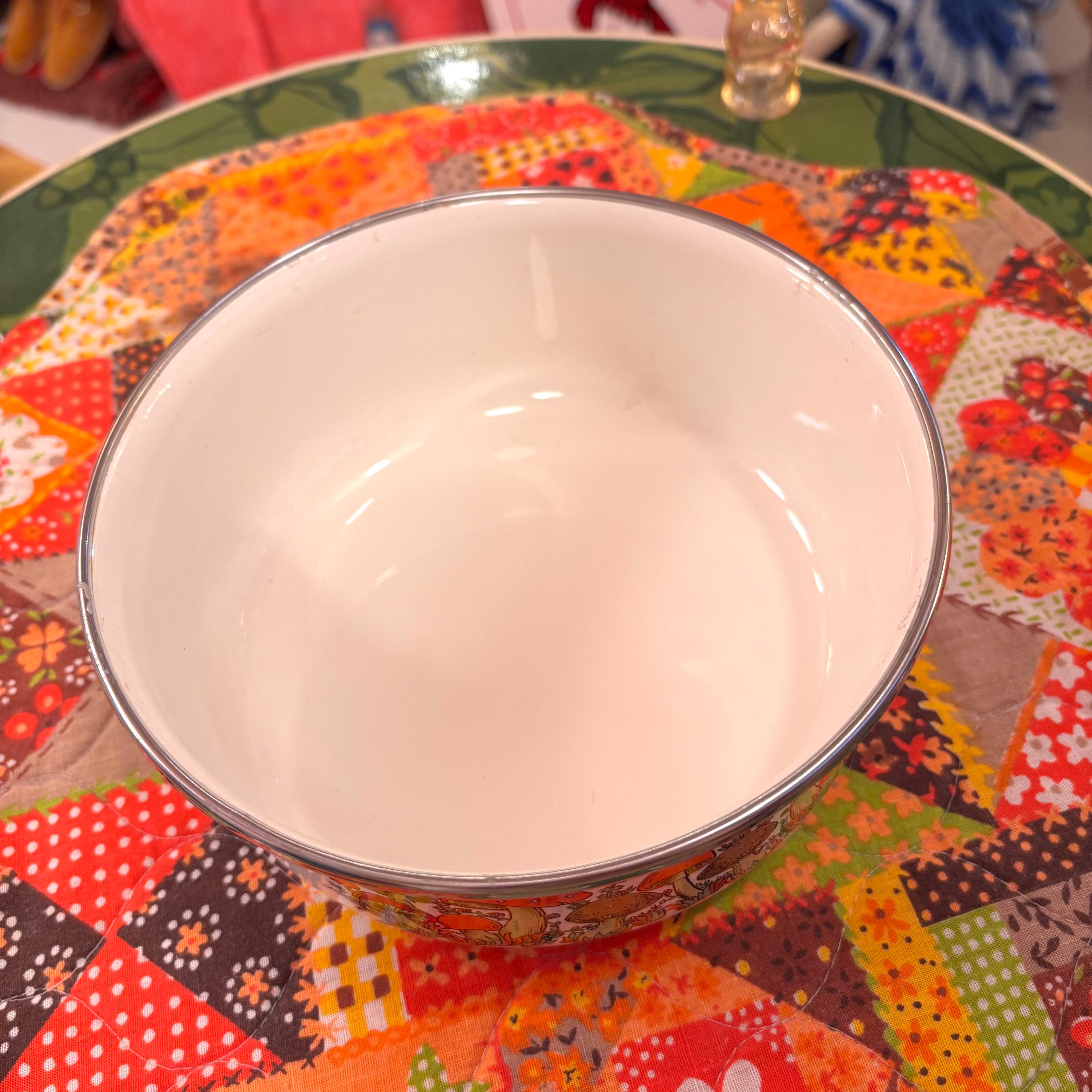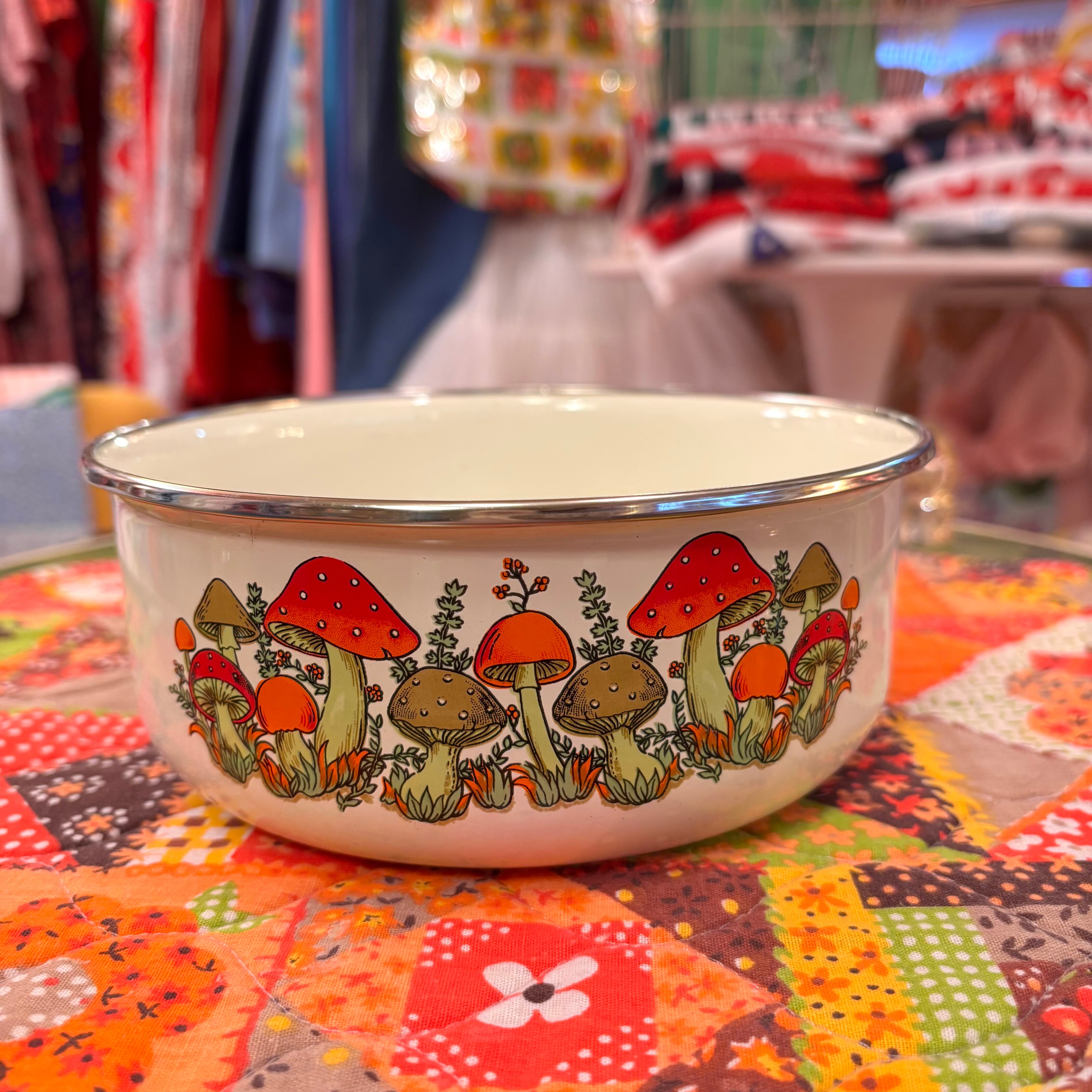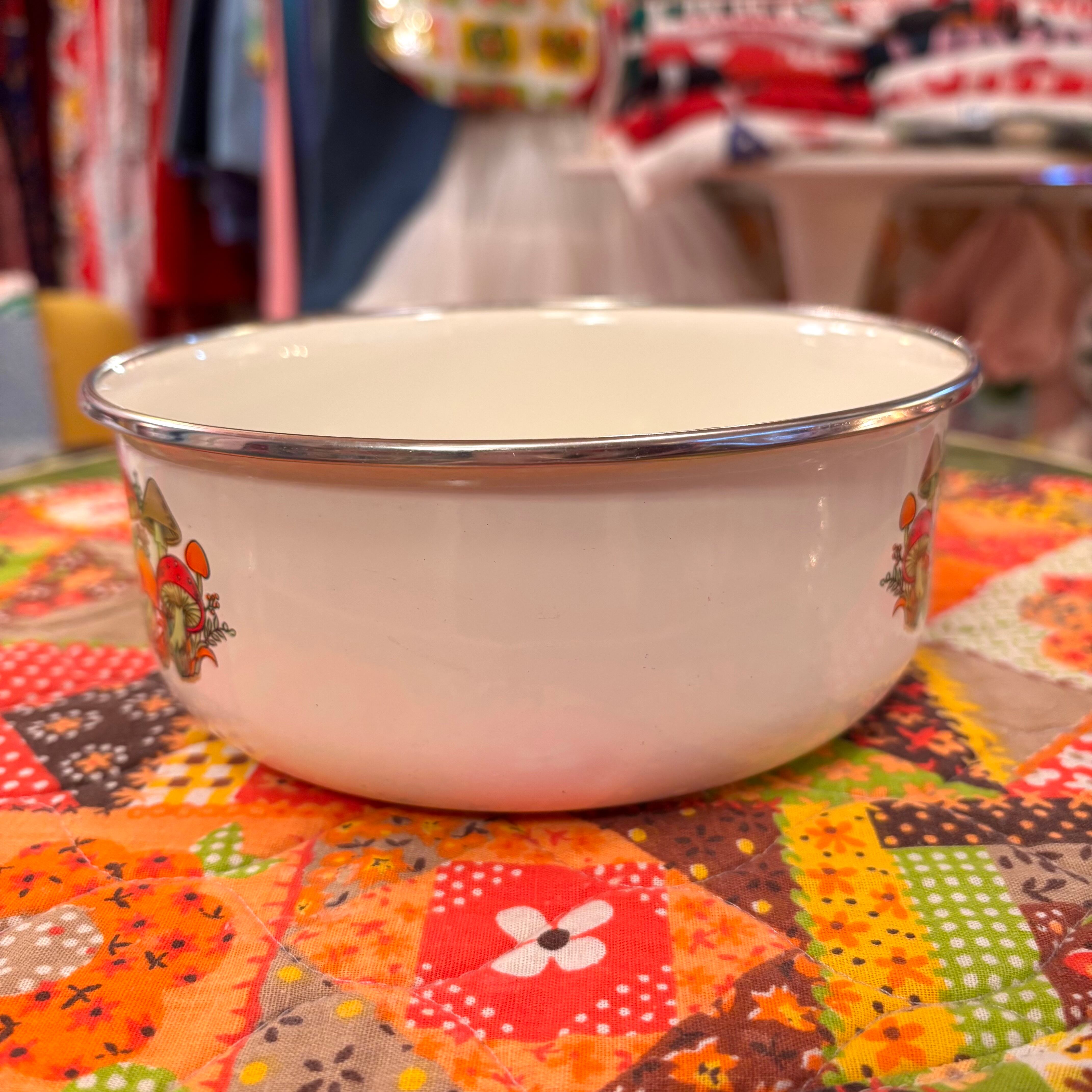 70'S USA Vintage mushroom printed enamel bowl。