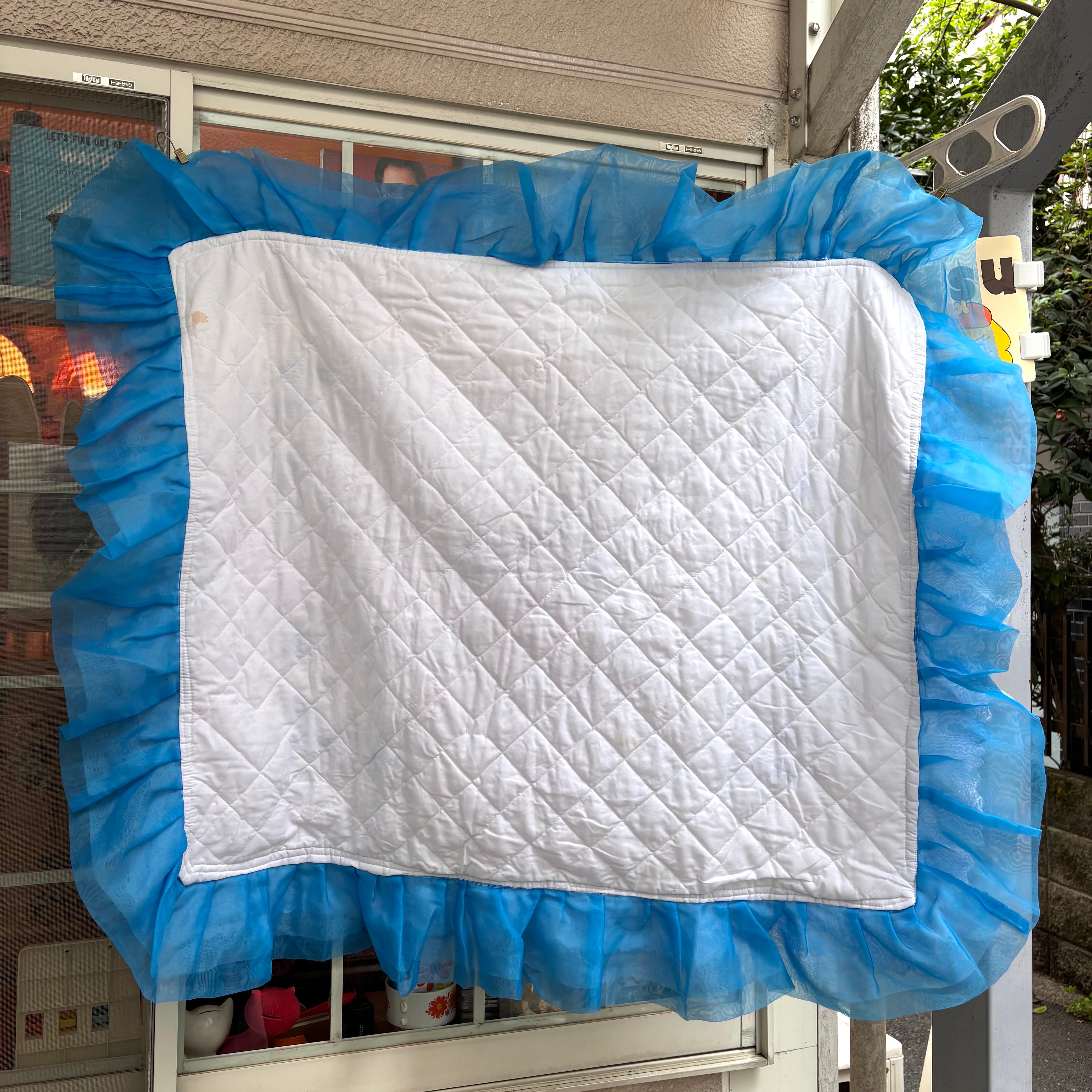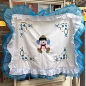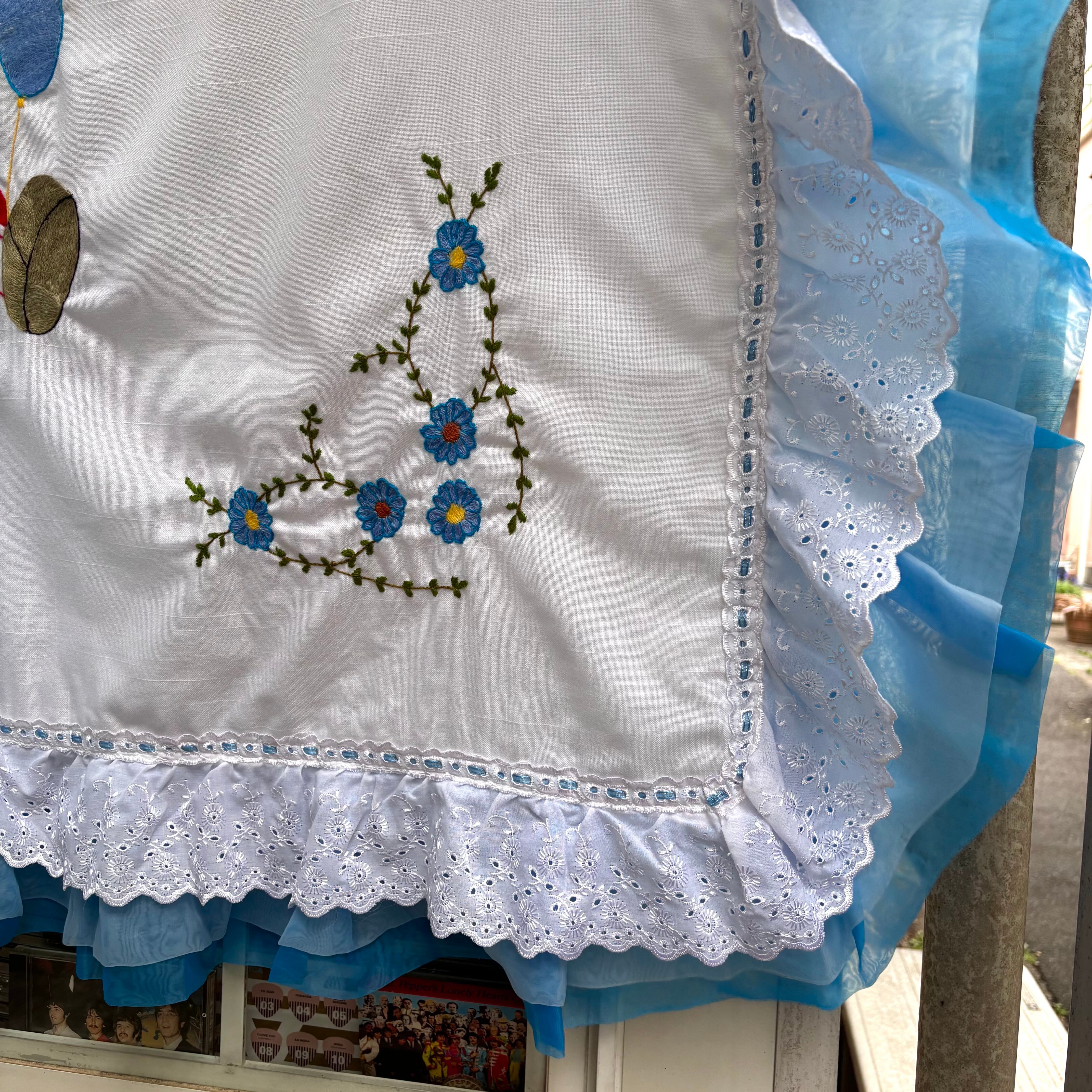 60年代から70年代 当時のハンドメイド1点もの 刺繍 シフォンフリル キルトカバーです。