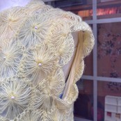 60'S Flower motif pearl beads crochet top。