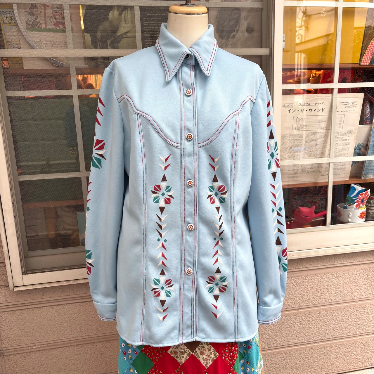70年代 ヴィンテージ ネイティブ柄ポリシャツです。