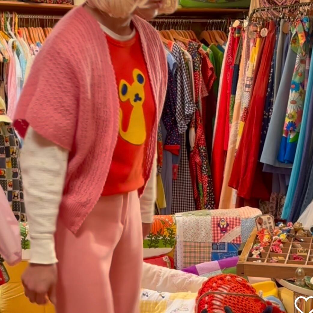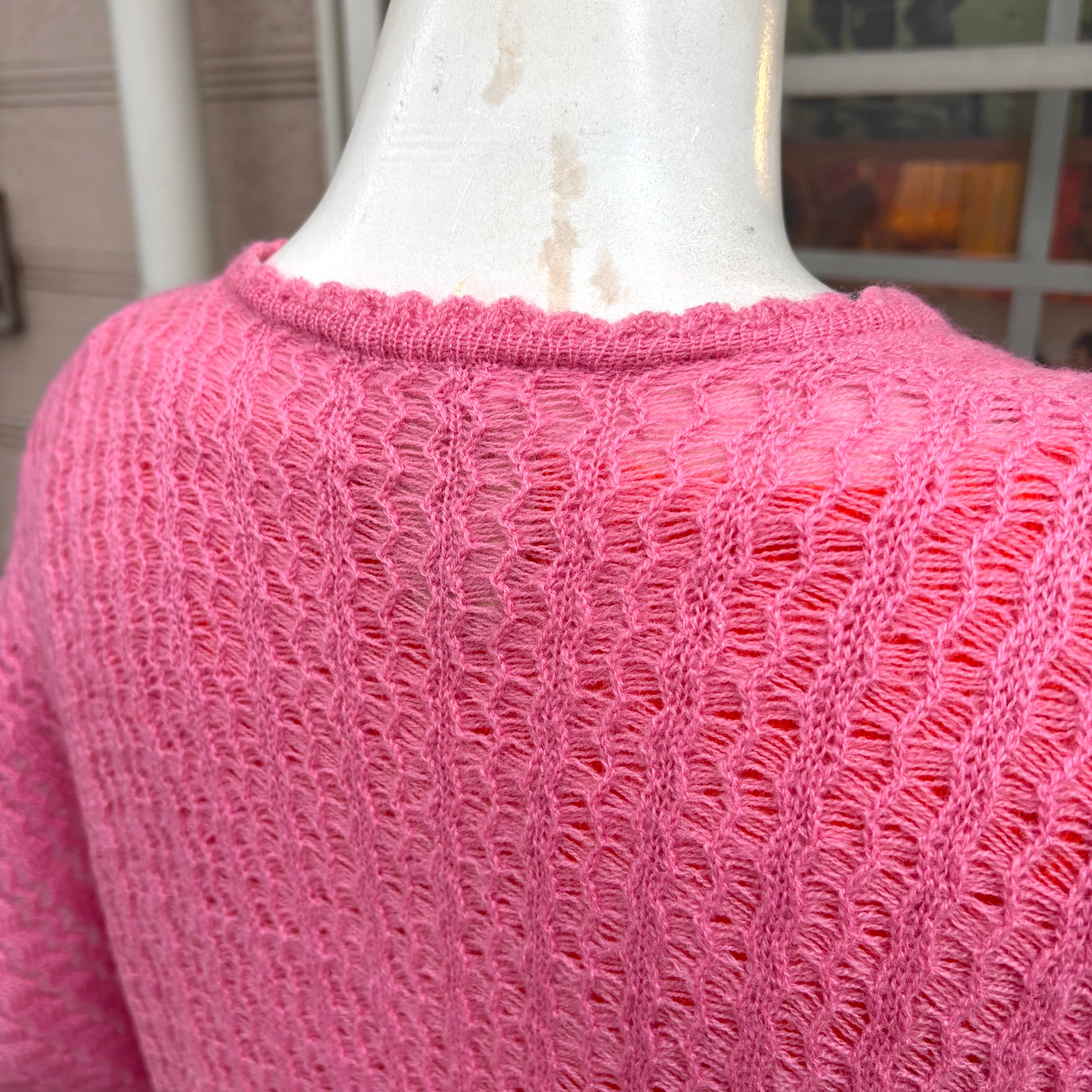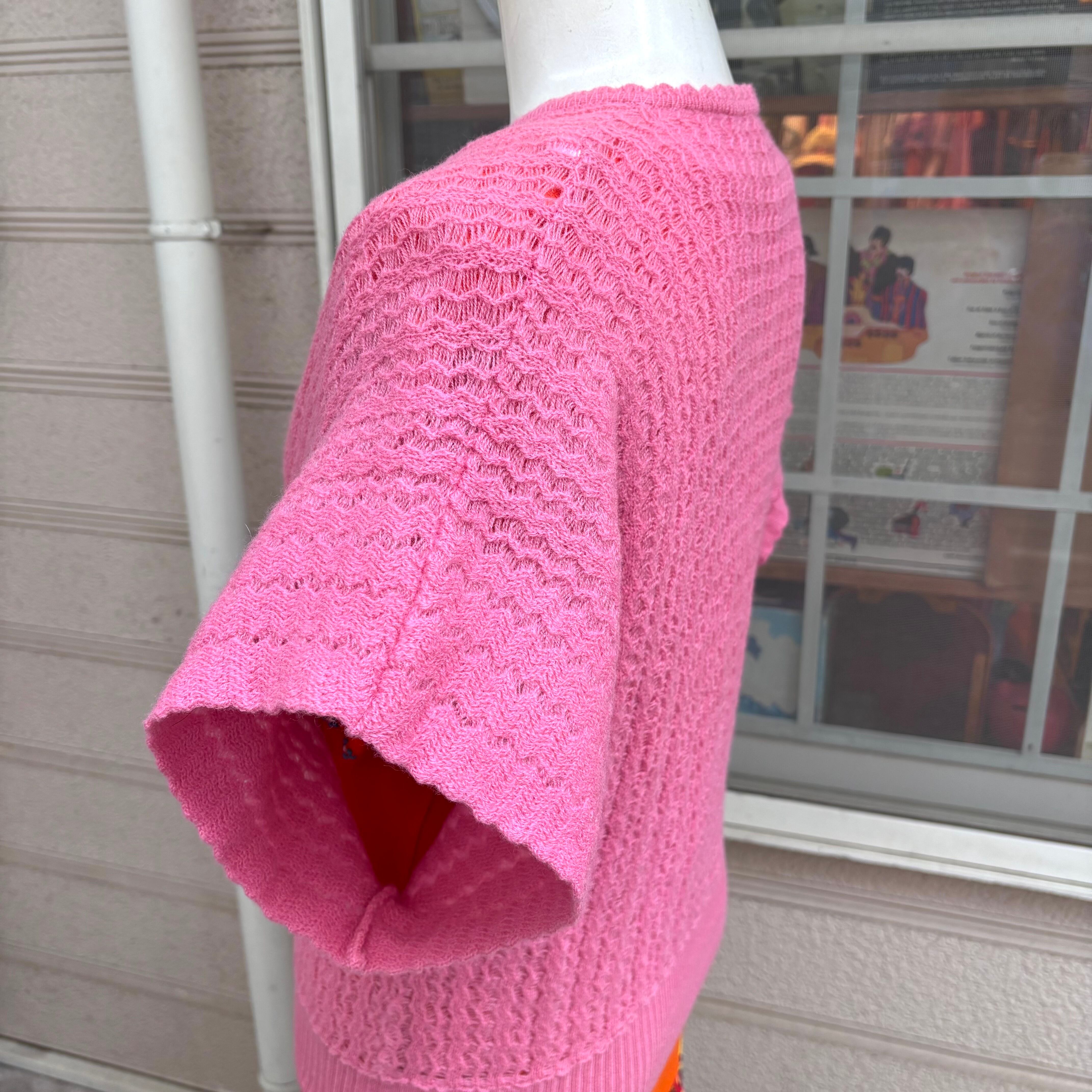 ヴィンテージならではなピンクカラーやなみなみの編み目、ドルマンのフォルムがとっても可愛い1着です。