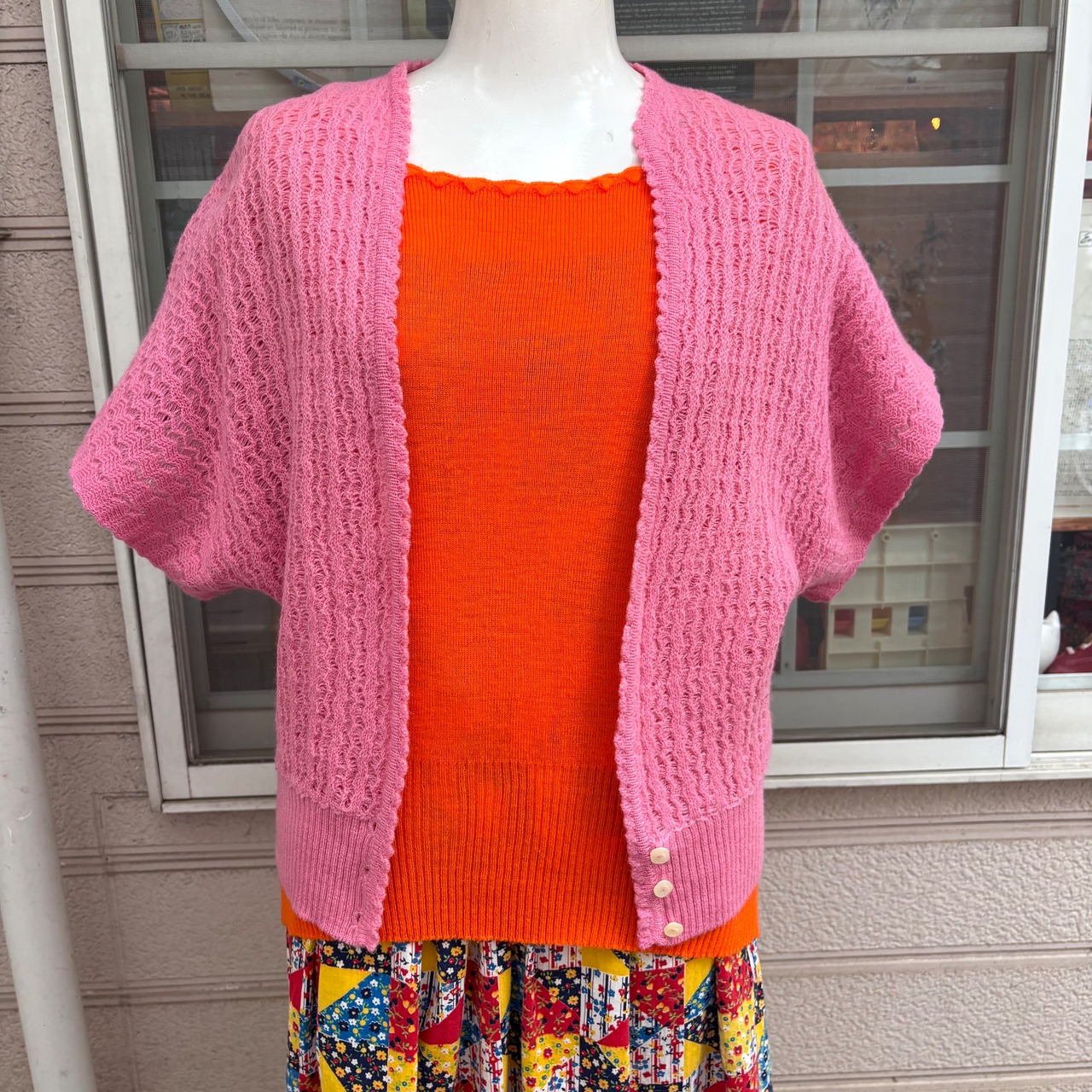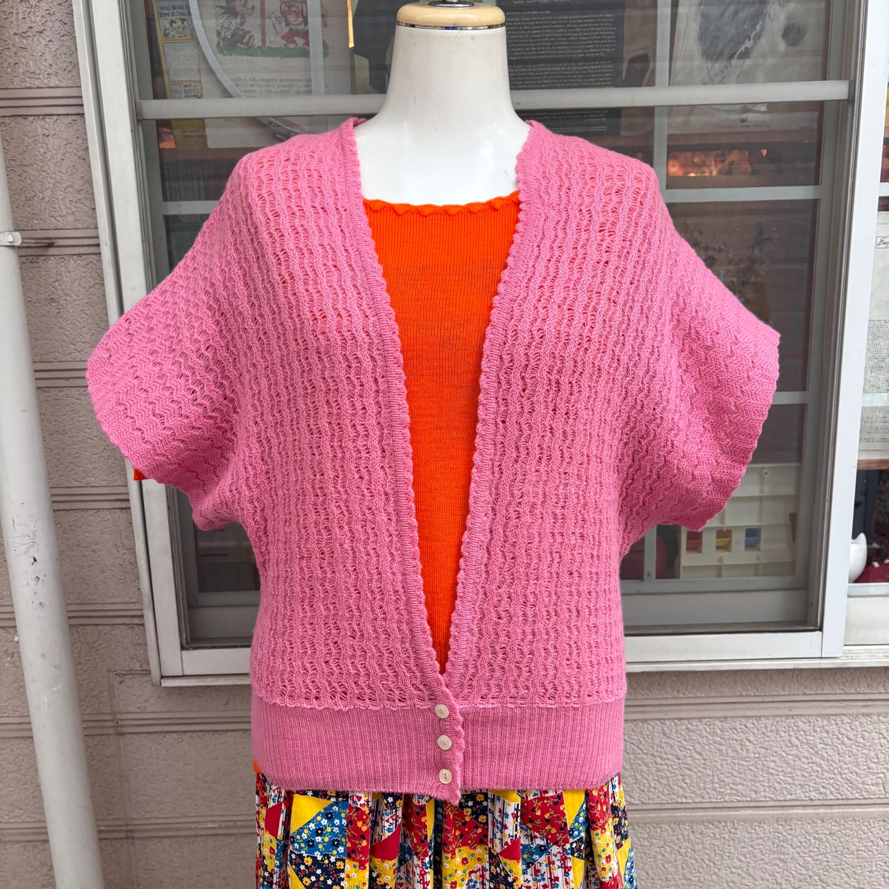 80年代から90年代 ピンク ドルマンカーディガンです。