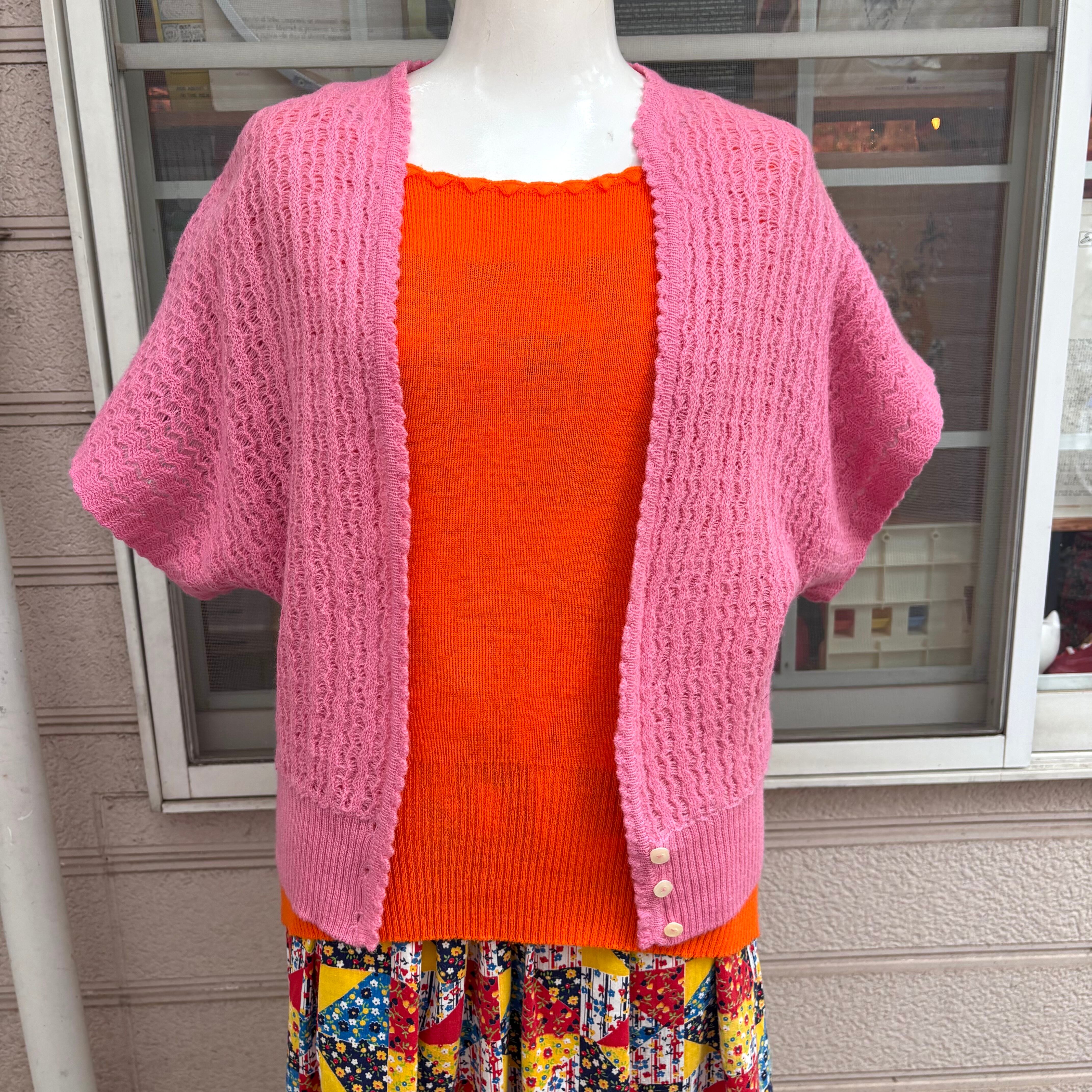 80'S〜90'S USA Vintage pink dolman cardigan。