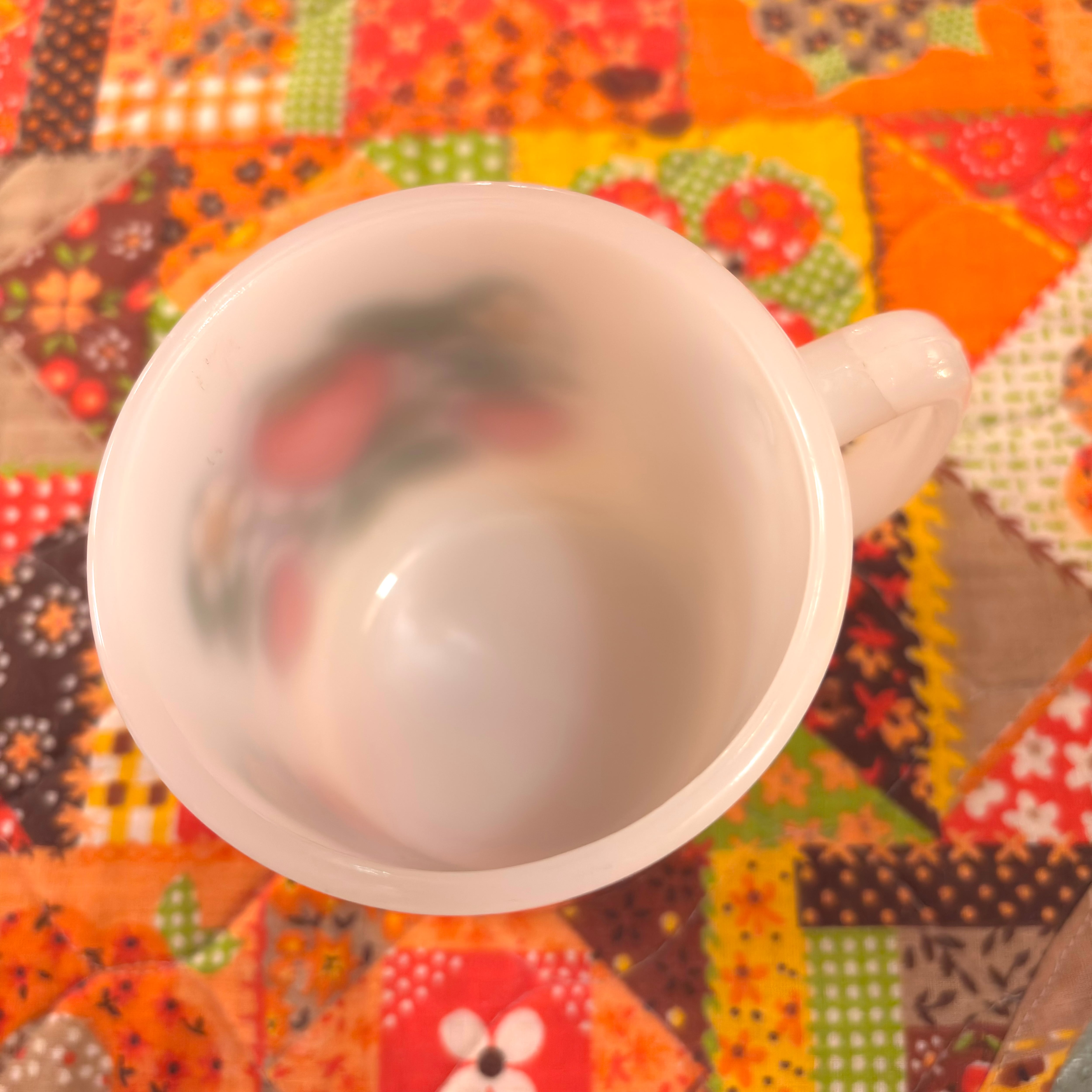 内側に製造時からと思われるミルクガラス特有の練りむら、僅かなざらつきが見られますがリムにざらつきは無く、全体的につやもあり きれいなコンディションかと思います。