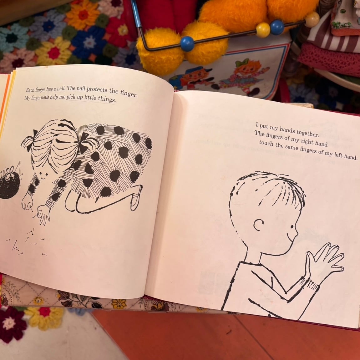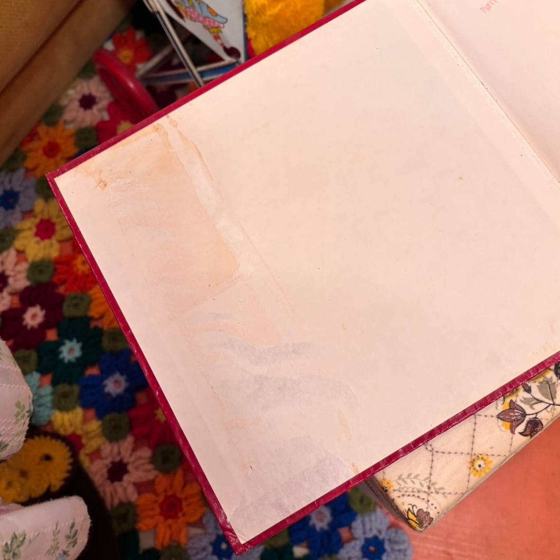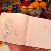 小さなお子様が描いたと思われるイラストや表、裏供に表紙の内側に接着による紙の剥がれ、わずかな破れや折れ、シミや表紙のビニールのよれなど経年感が見られますがヴィンテージならではな個性溢れる、とっても可愛い雰囲気があります。