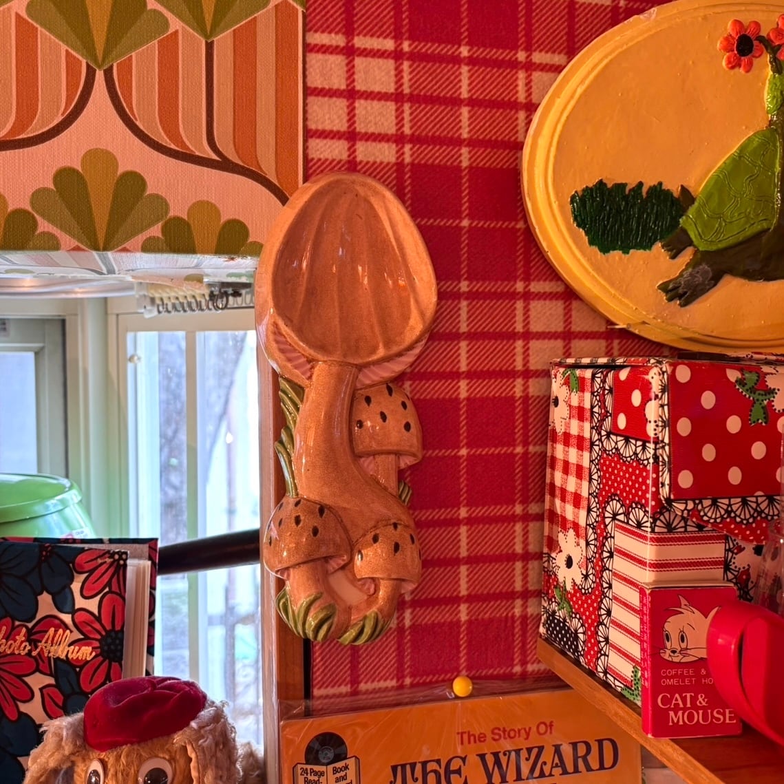70'S USA Vintage mushroom wall hanging tray。