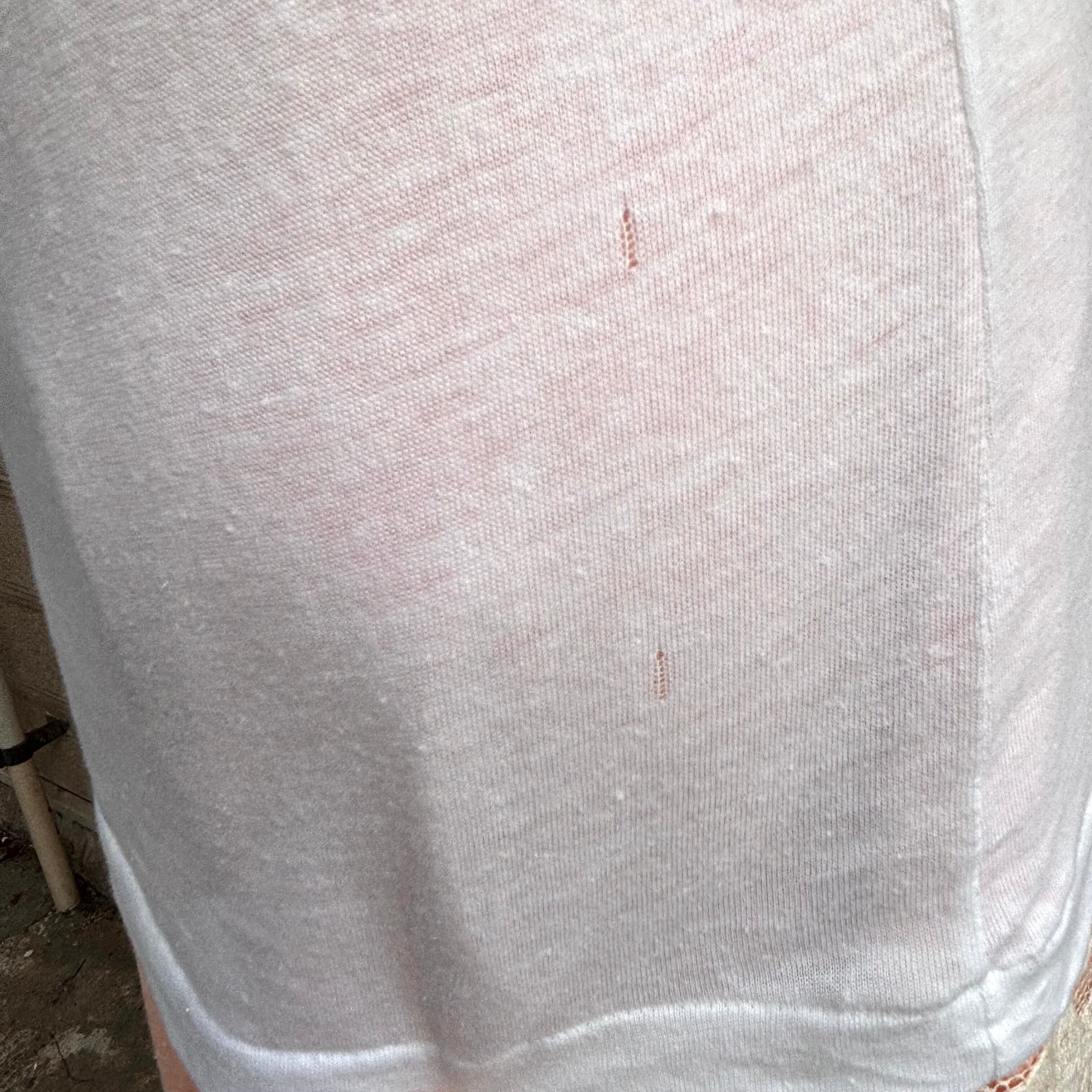 経年による若干の毛羽立ち、若干のシワのクセ、背面側の右端の裾上に2カ所擦れが見られますが、大きく目立つことは無いかと思います。
