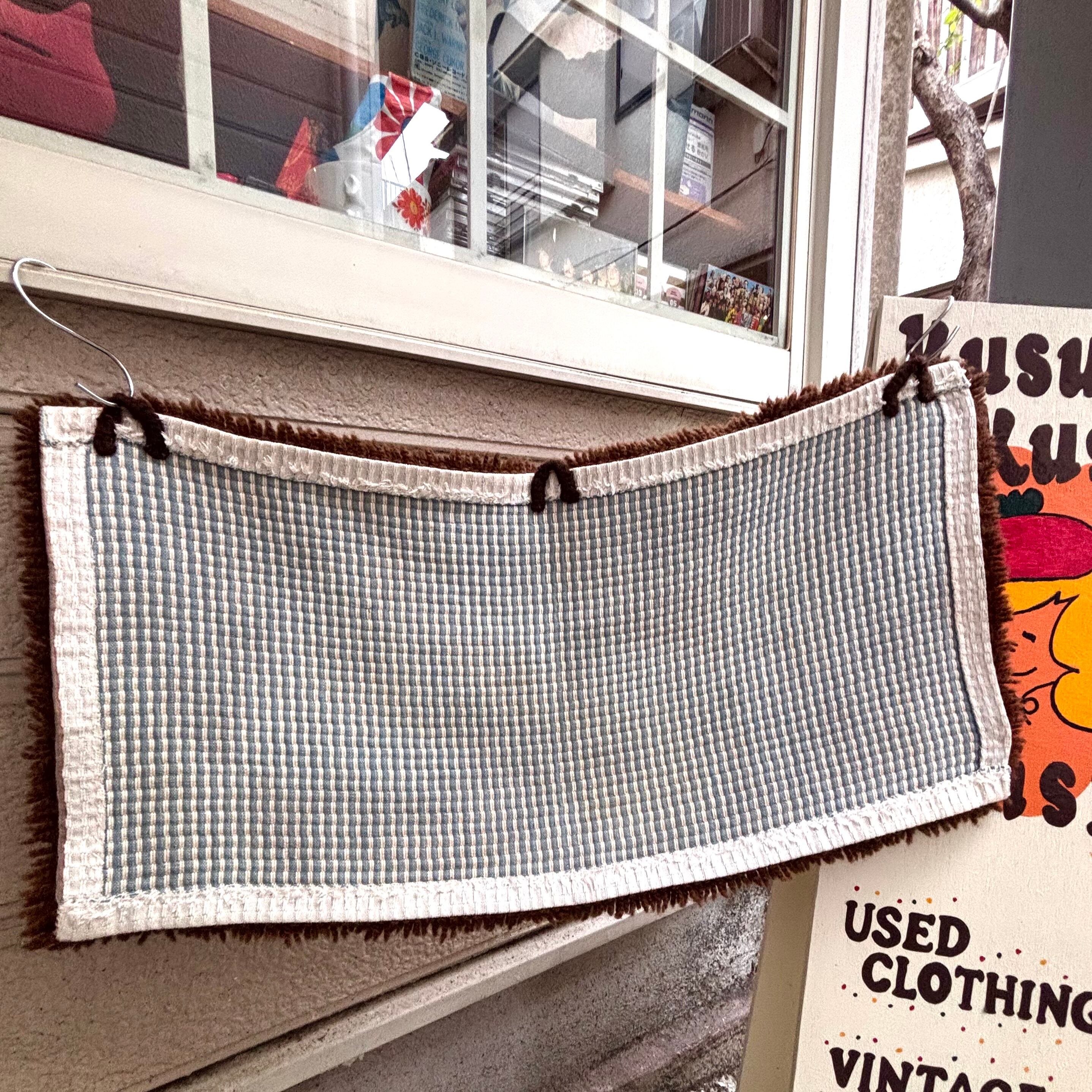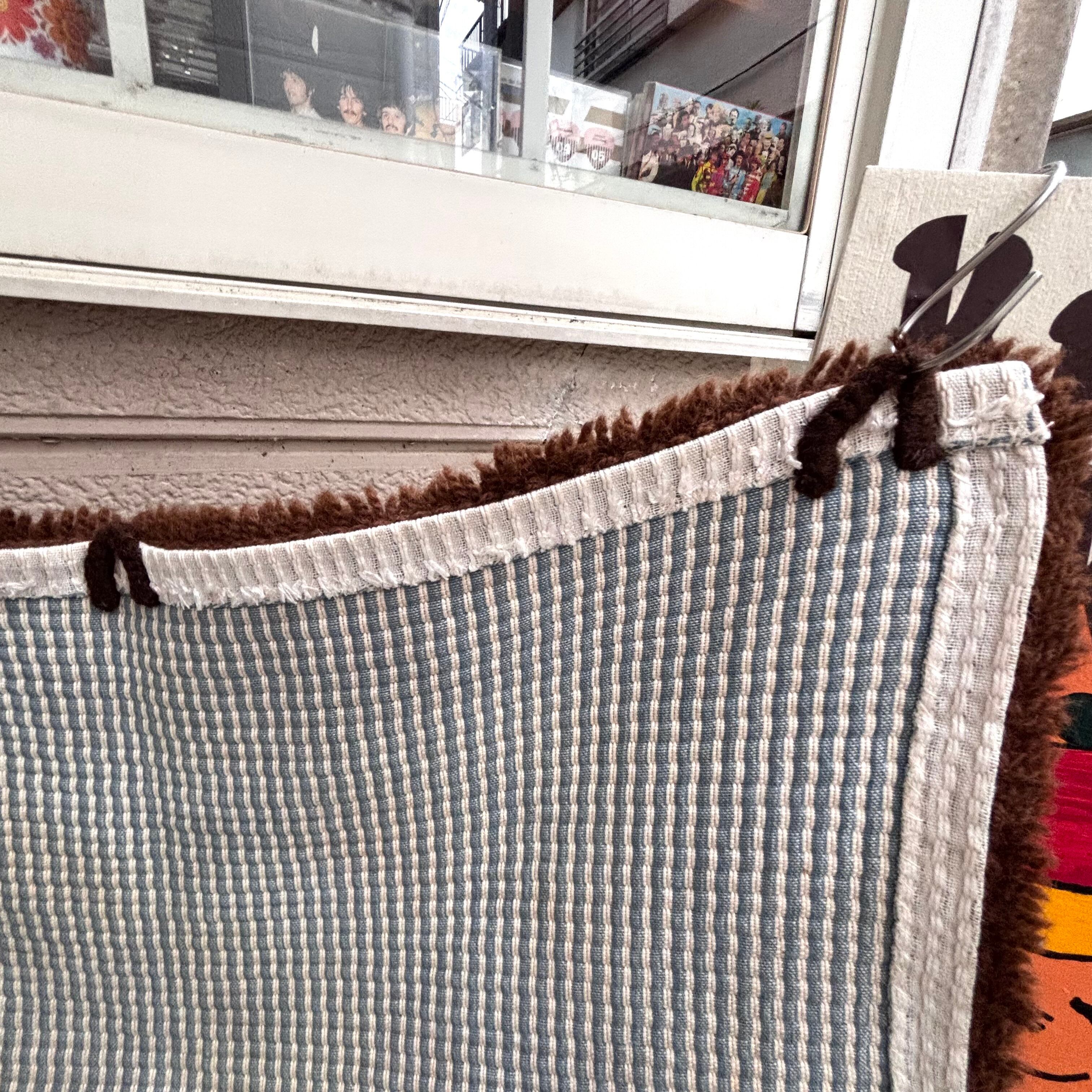 程よいサイズ感で、コーナーマットやラグとしてご使用頂いたり、裏側に3箇所フックを掛ける輪があるのでタペストリーとしてご使用頂いたり、インテリアのポイントに活躍してくれそうなアイテムです。