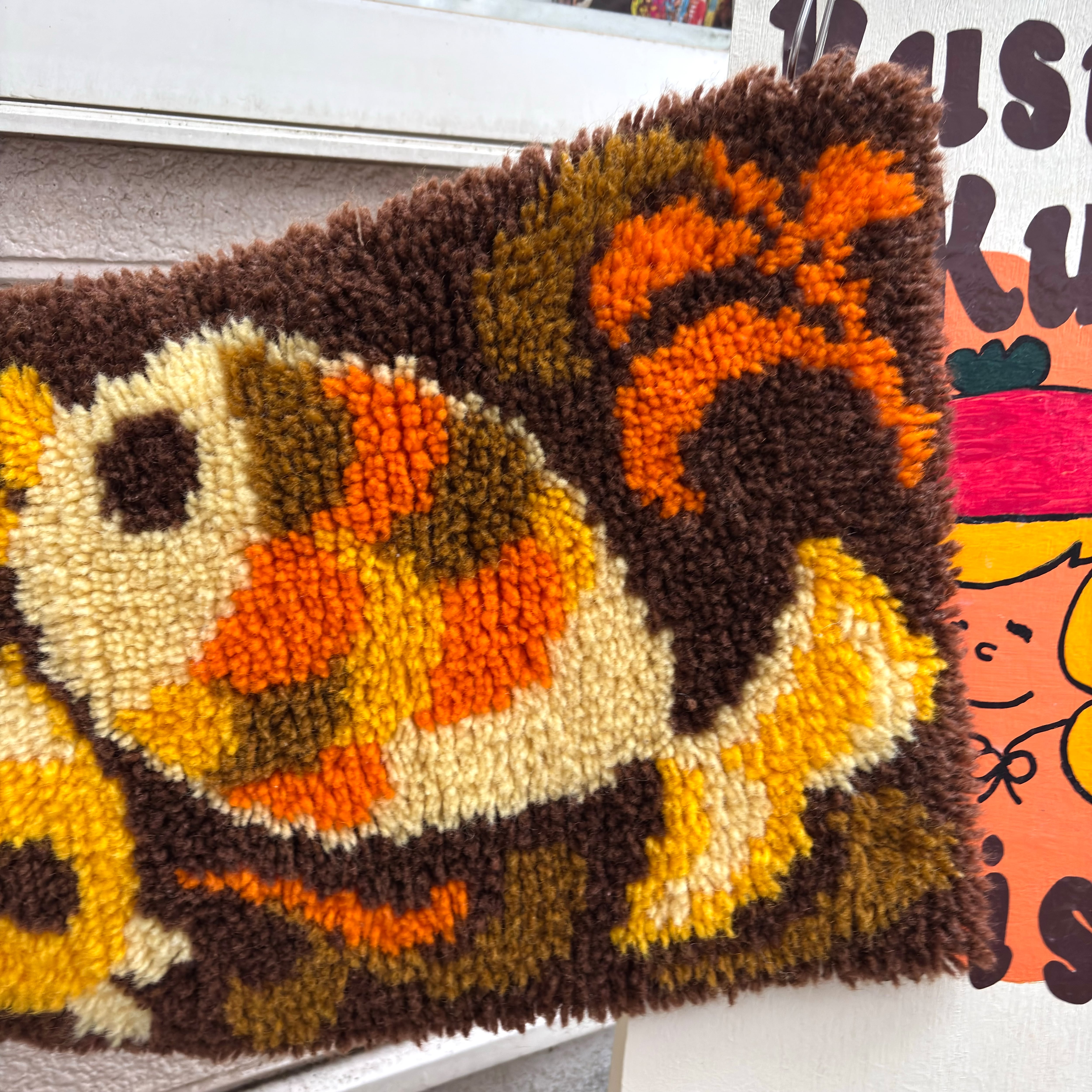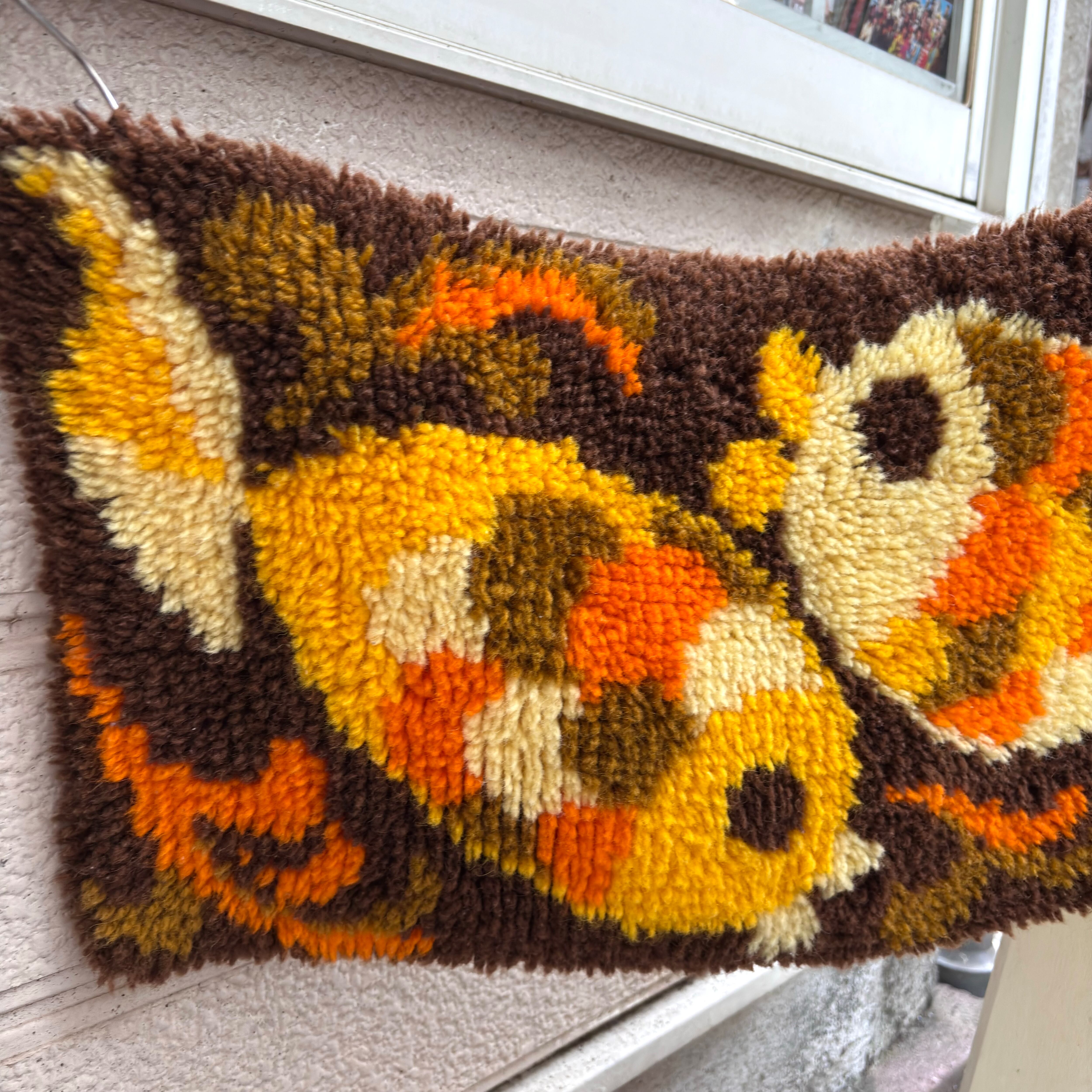 70年代 ヴィンテージ 当時のハンドワークによる、お魚柄のラグ・タペストリーです。