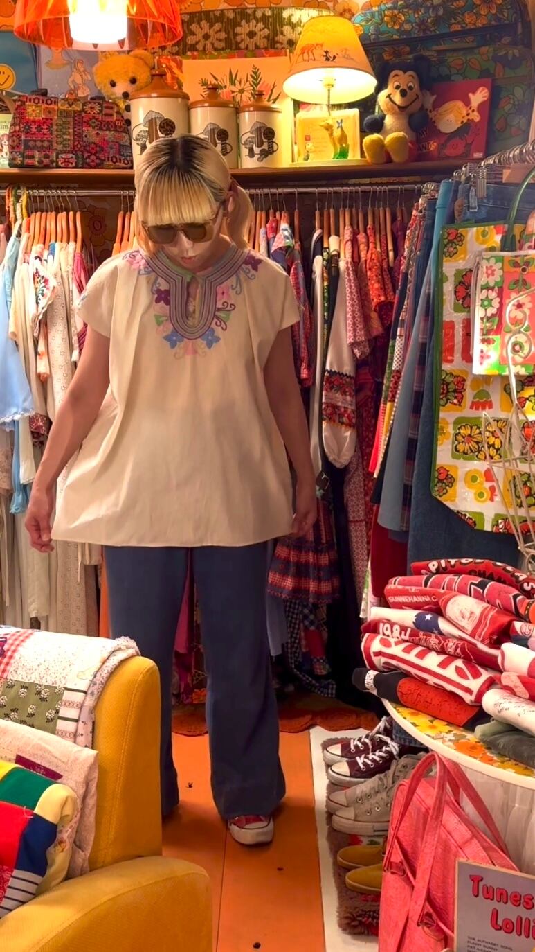 70'S Vintage flower embroidery mexican top。