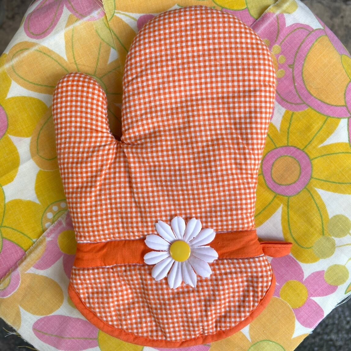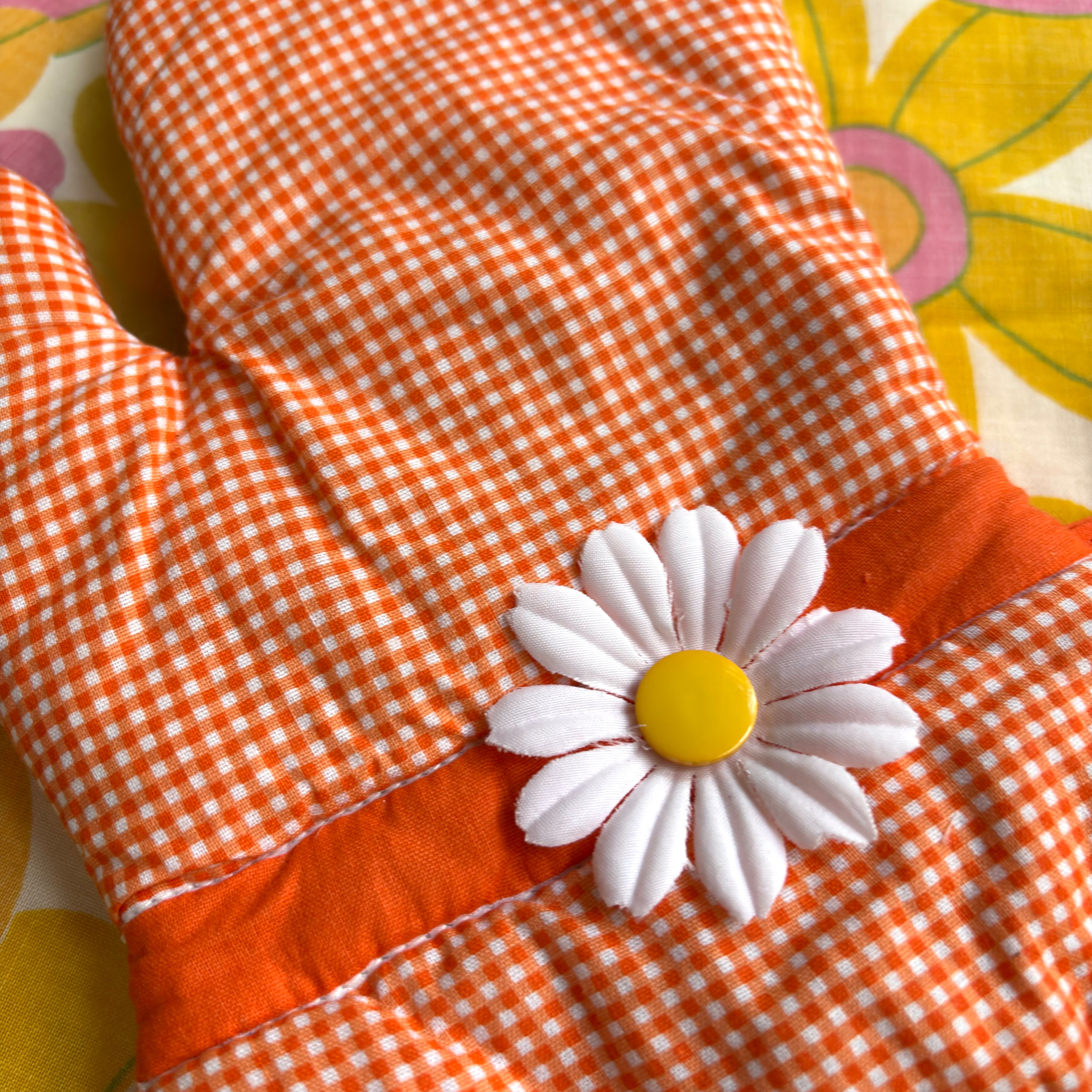 Vintage orange checkered flower decoration mitten&trivets