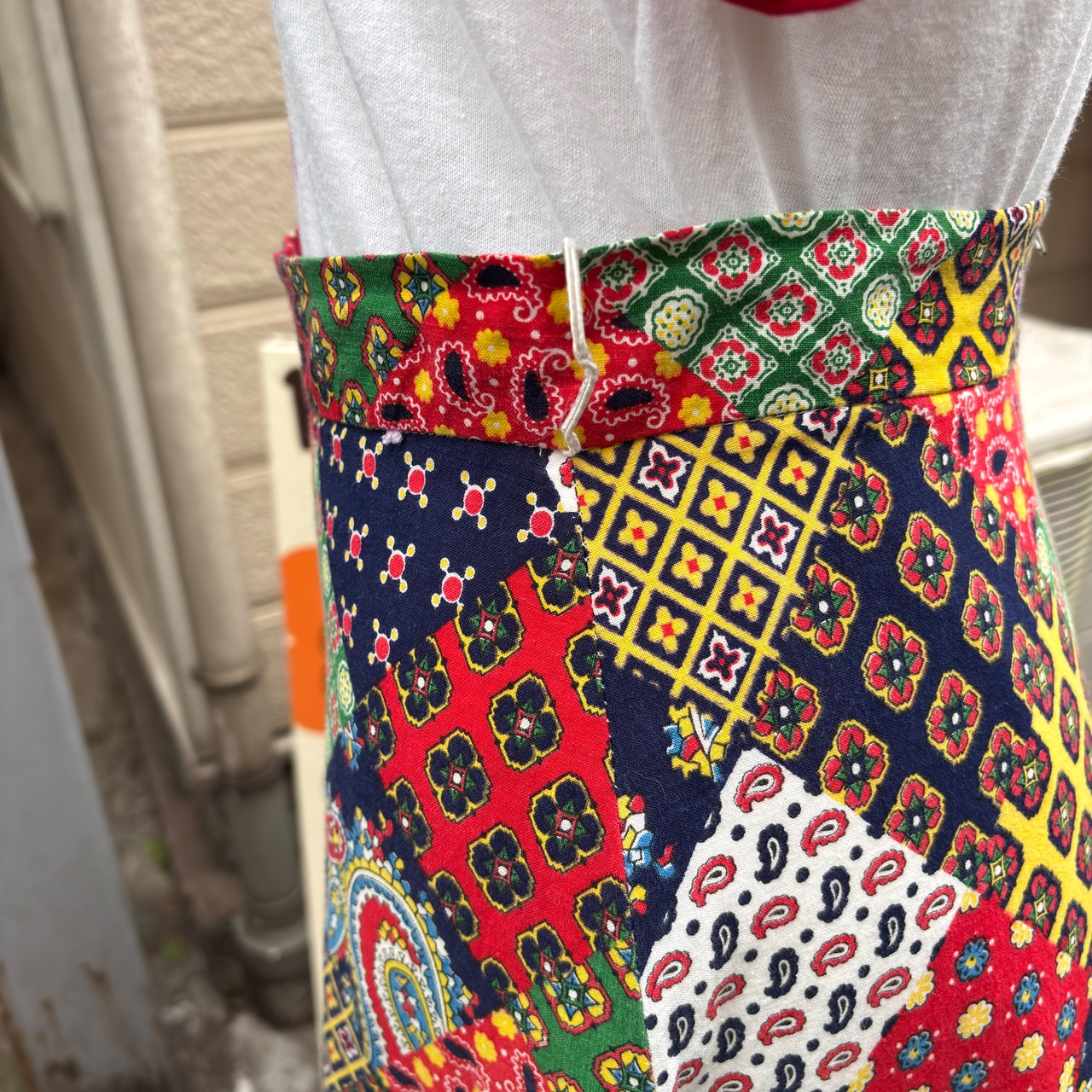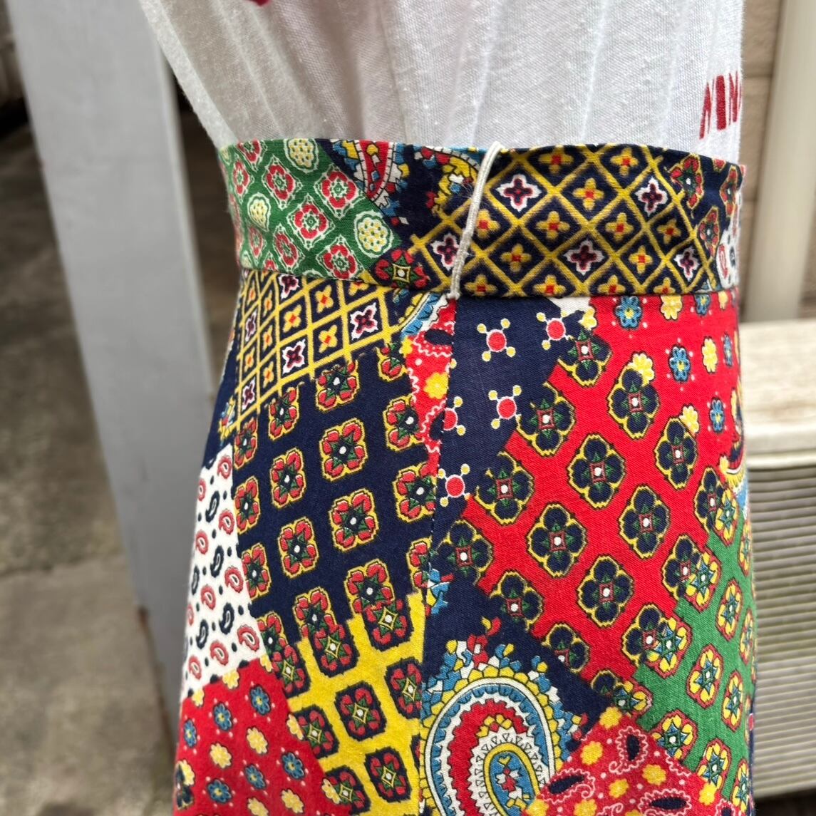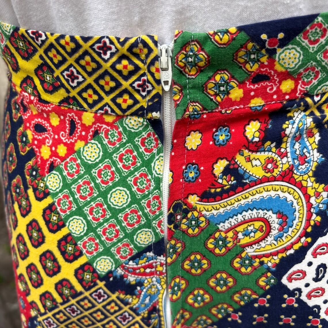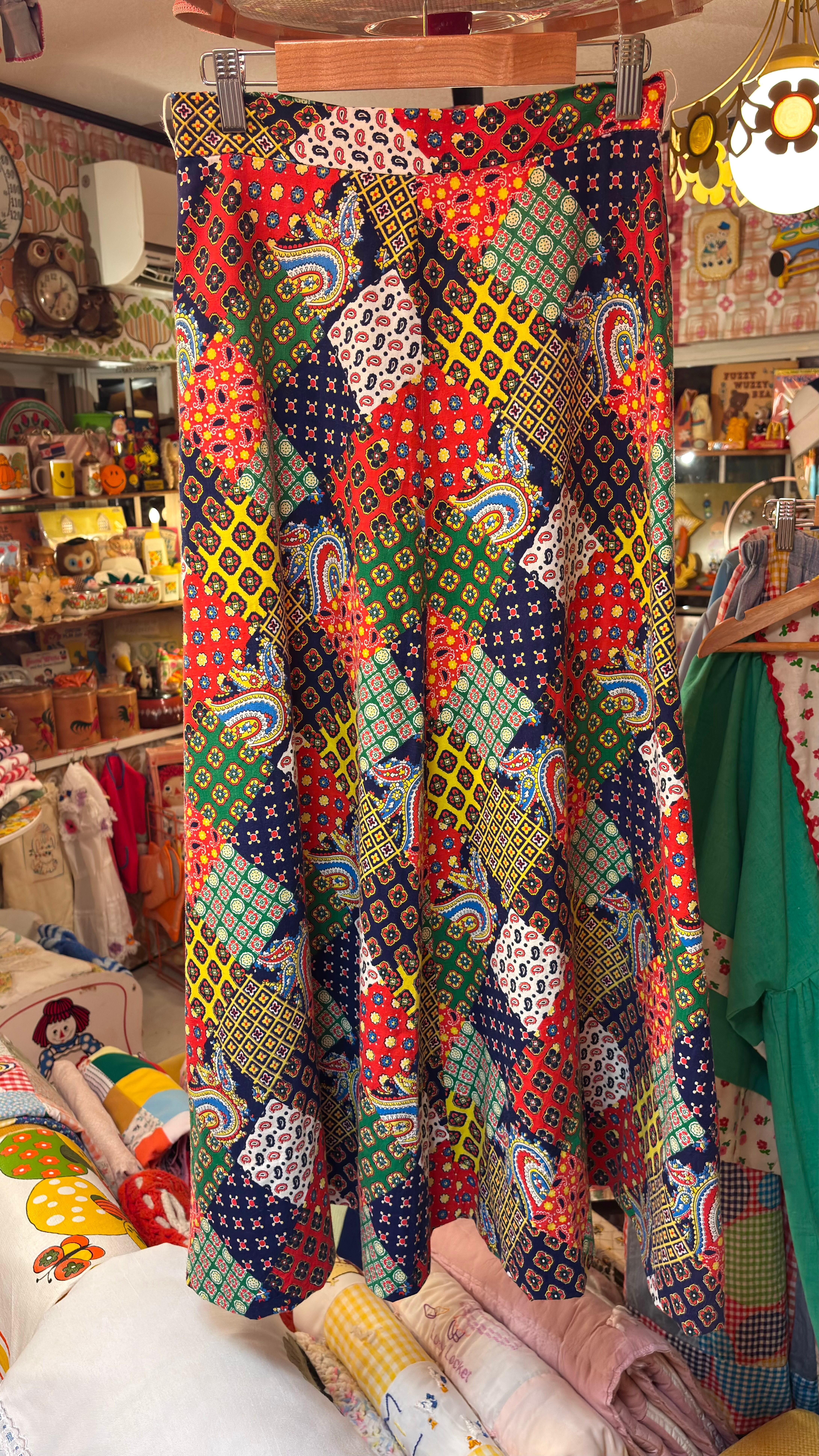 70'S USA Vintage patchwork printed long skirt。