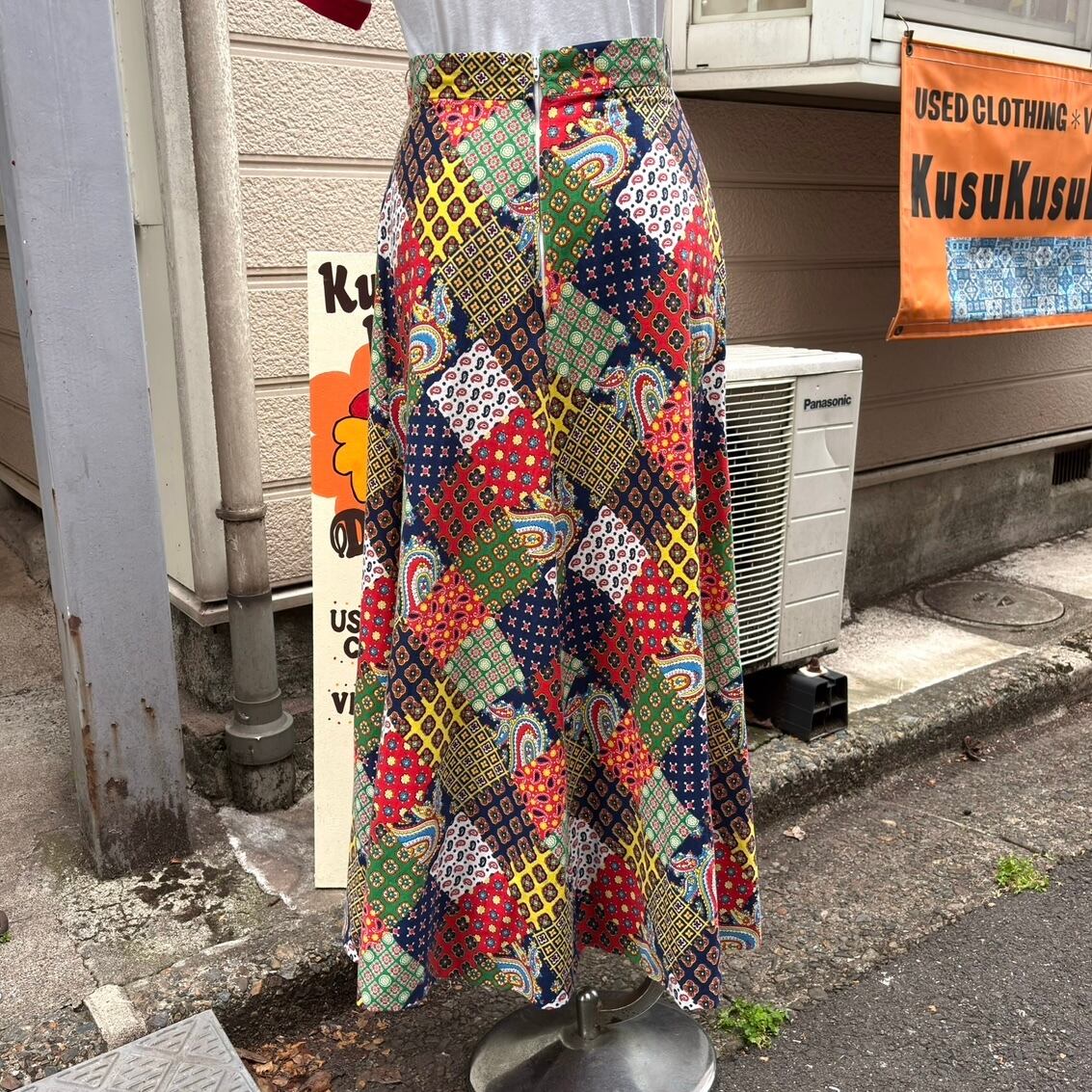 70年代 ヴィンテージ パッチワークプリント ロングスカートです。