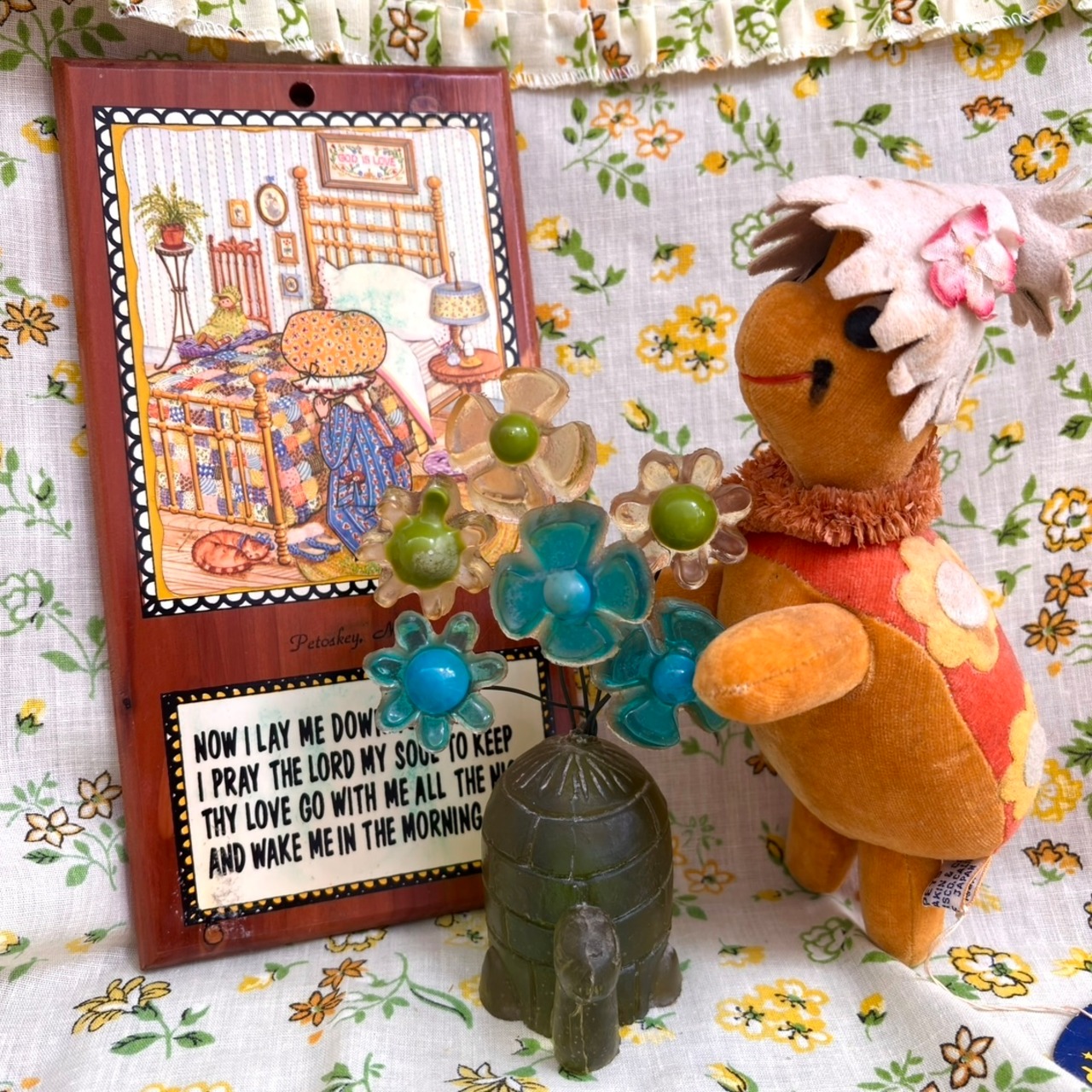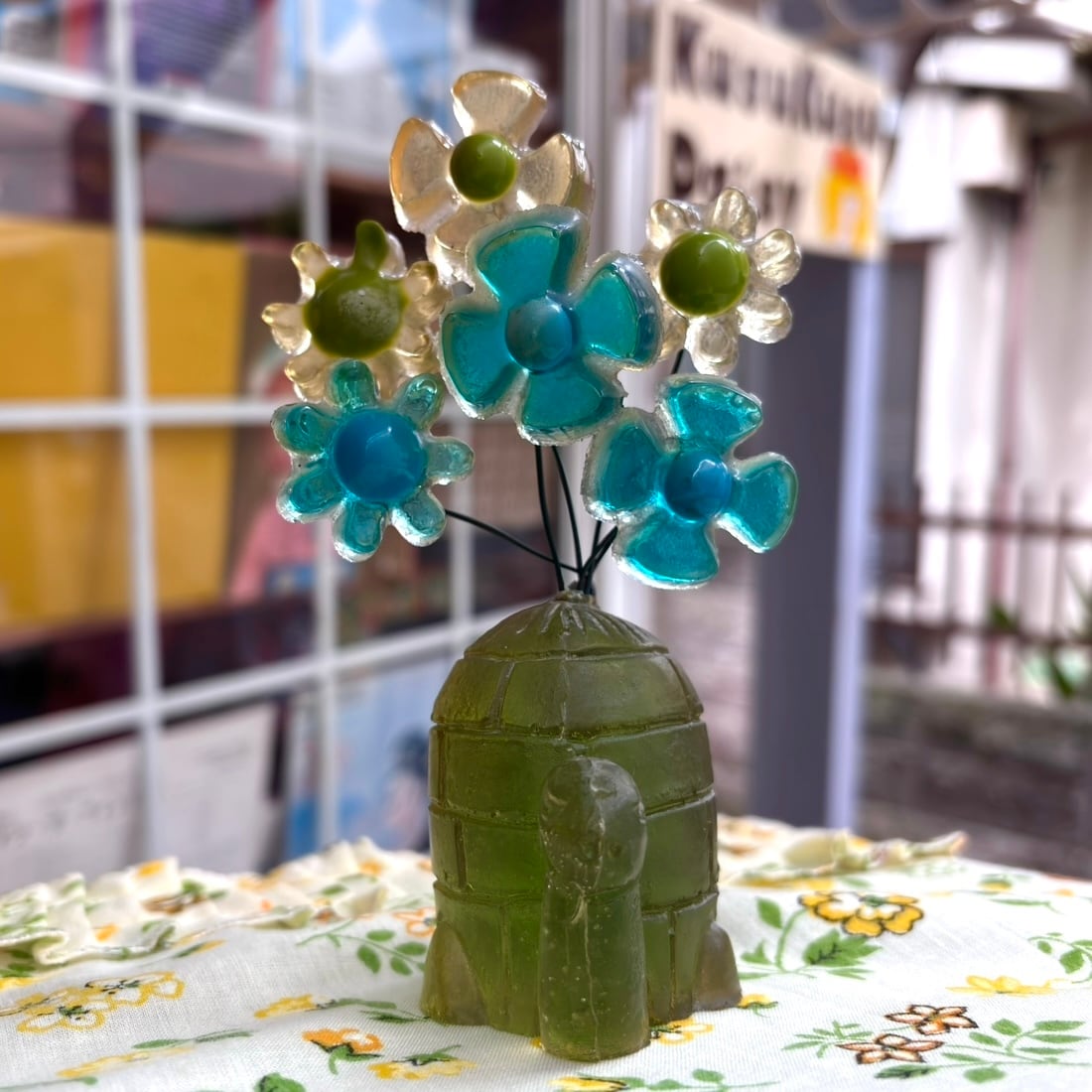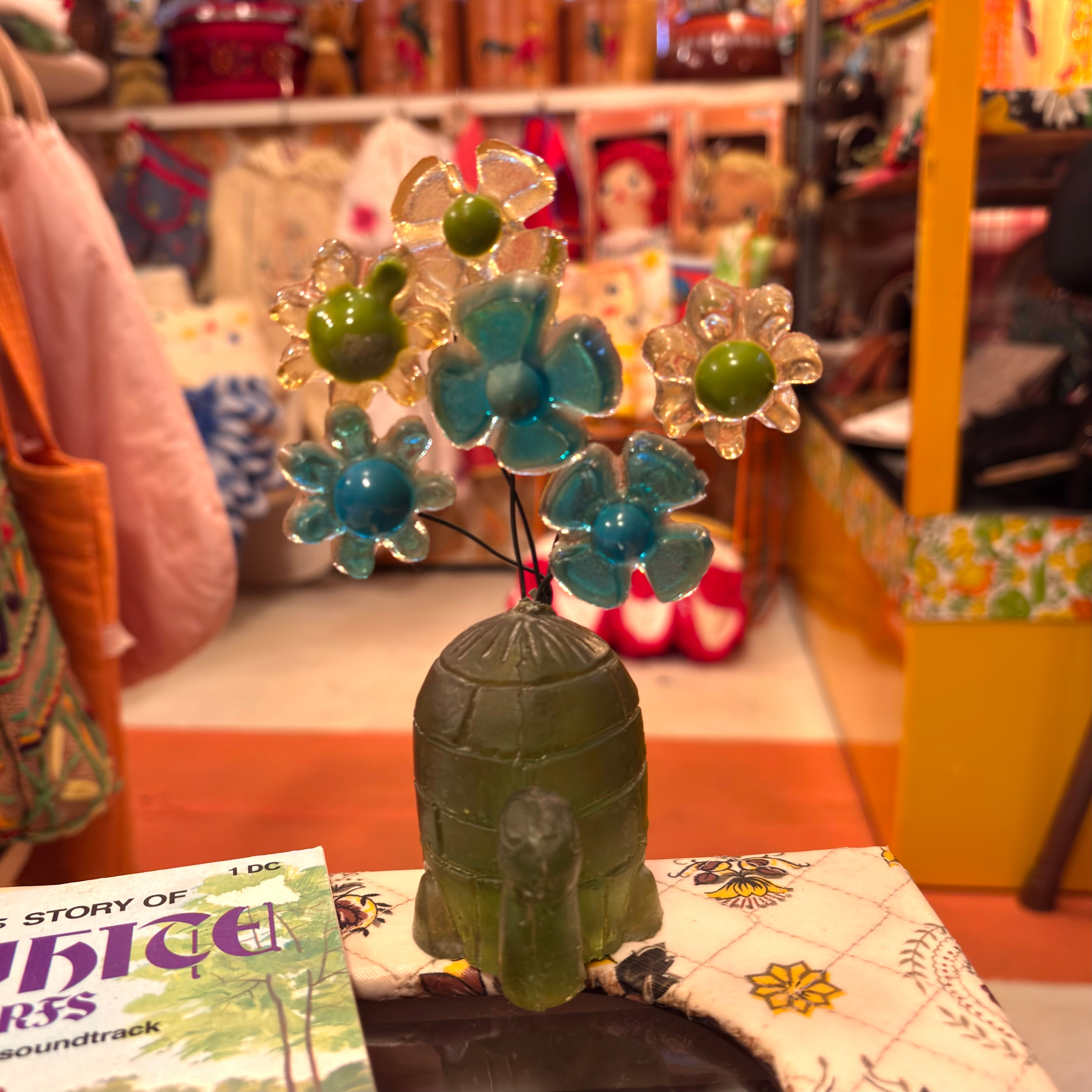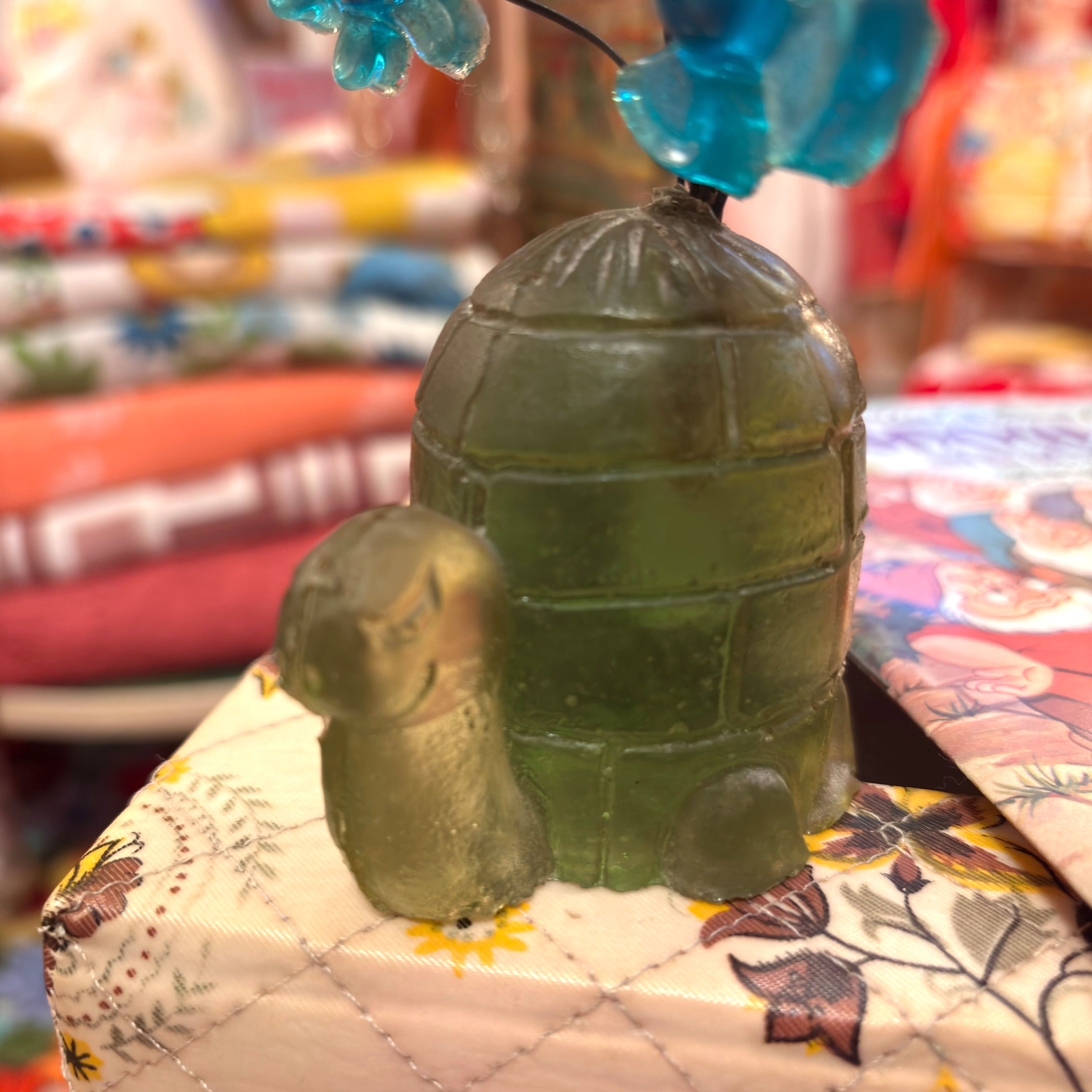 60年代 ヴィンテージ 亀さんとお花のルーサイトの置物です。