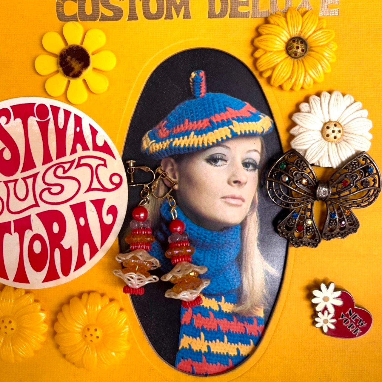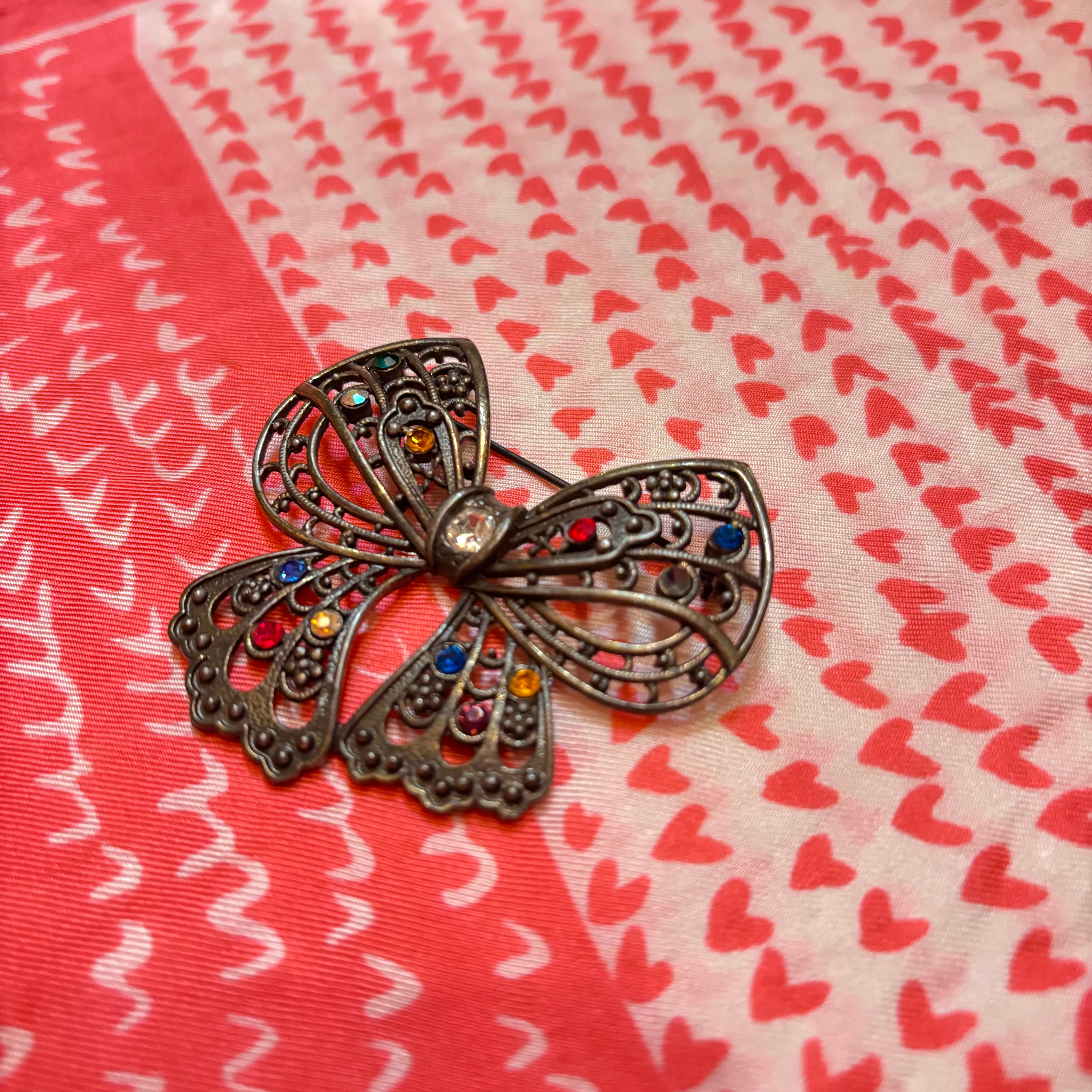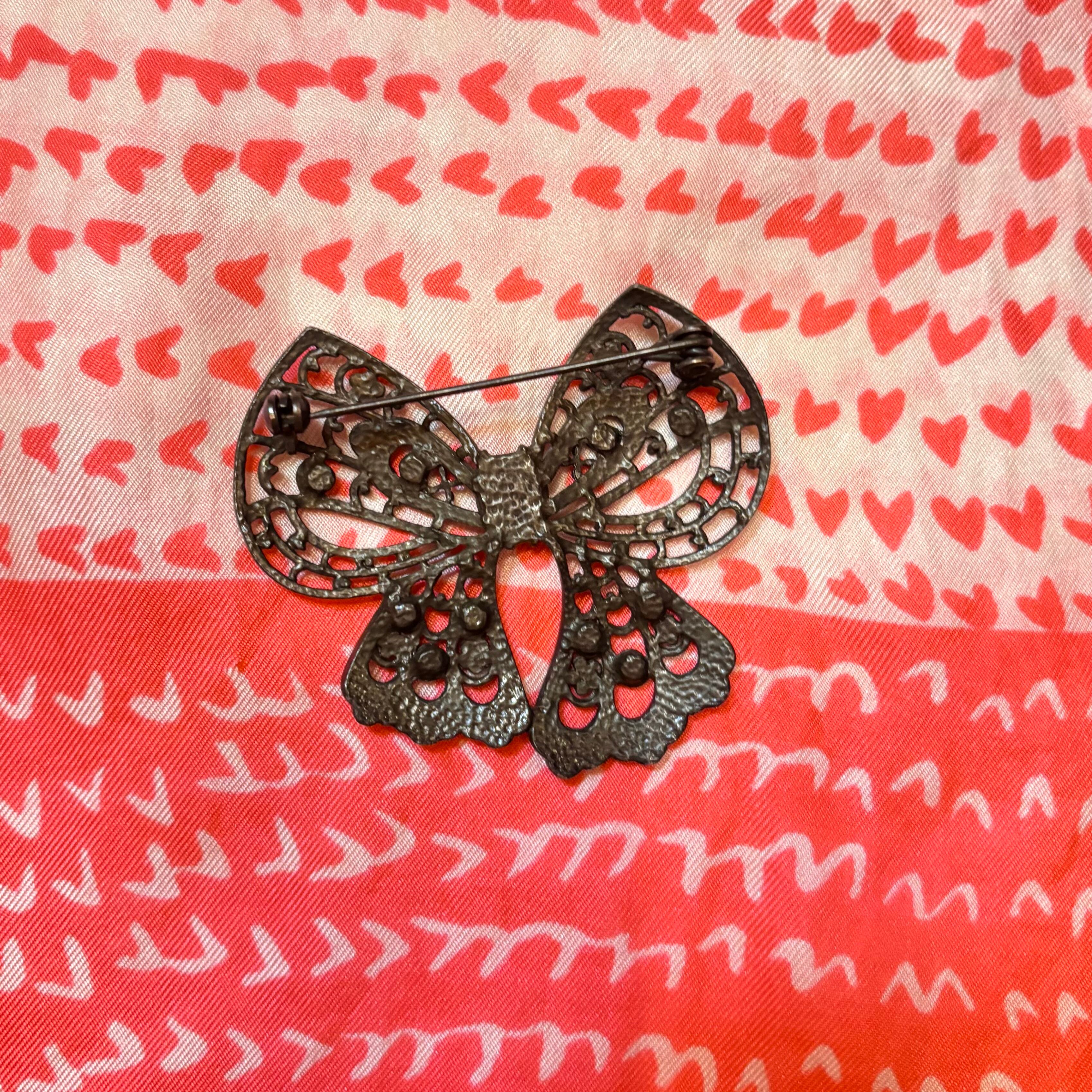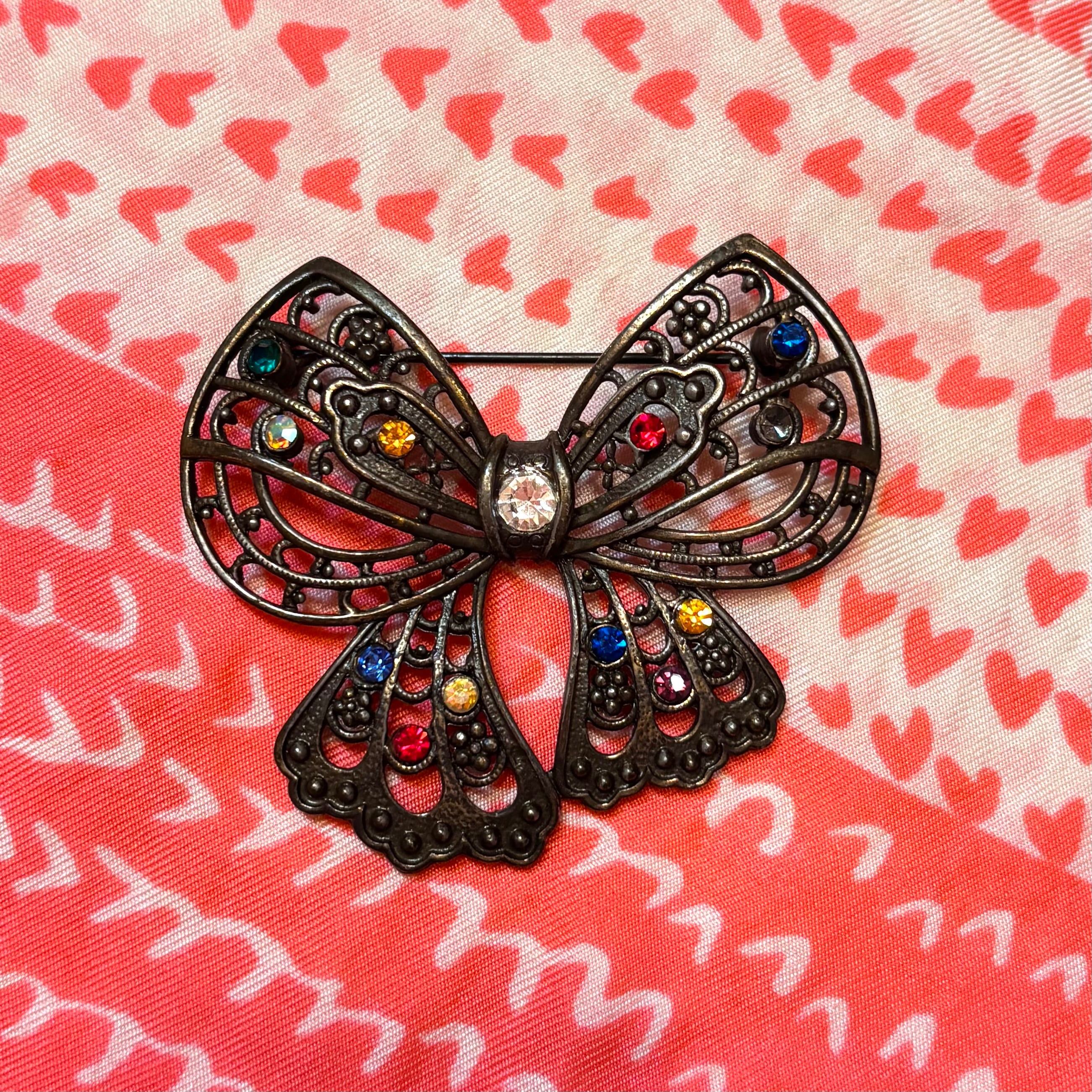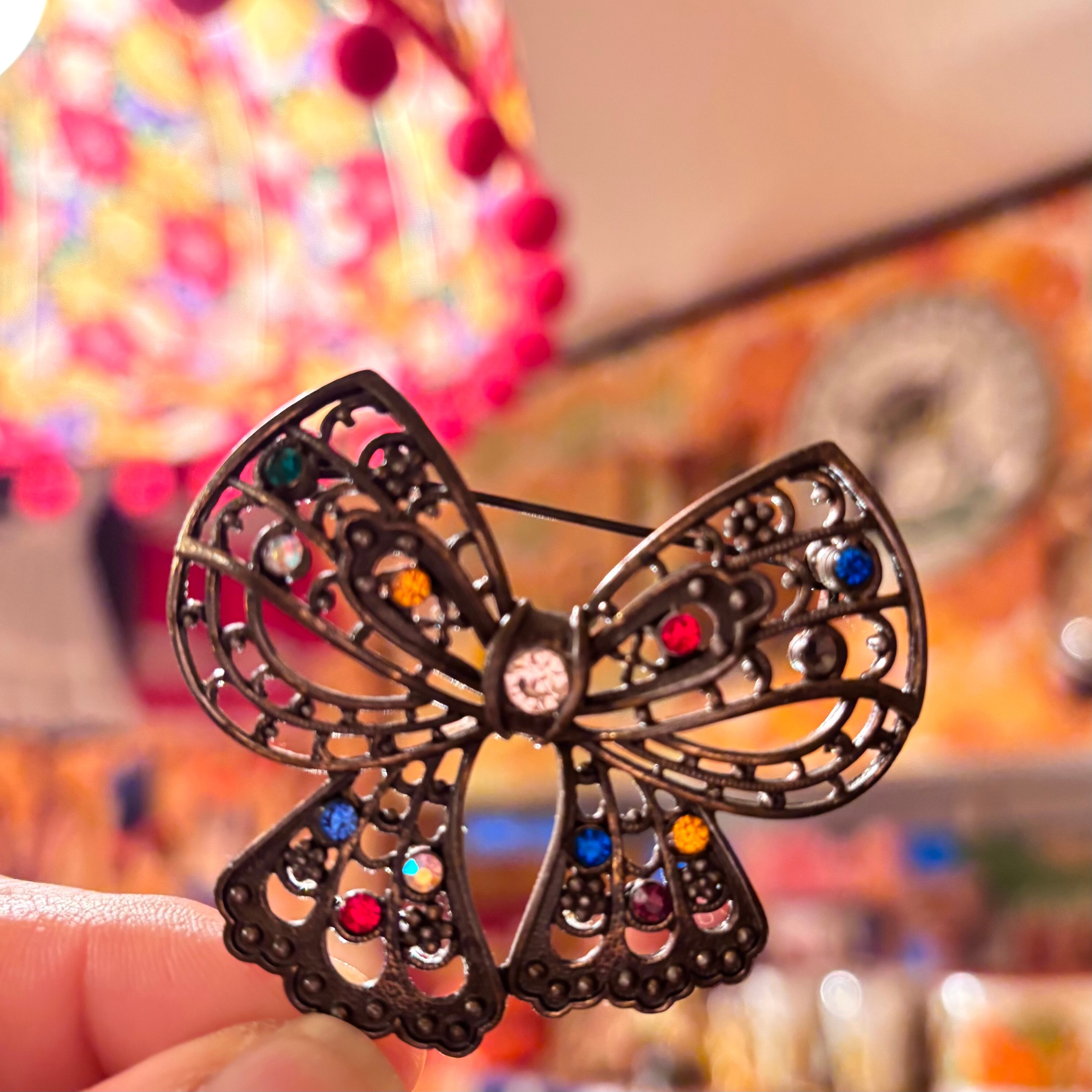 60年代 ヴィンテージ カラフル ラインストーン リボン ブローチです。