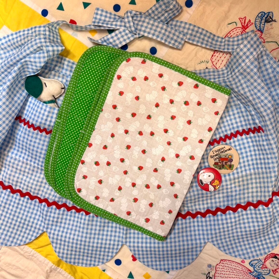Vintage light blue checkered apron