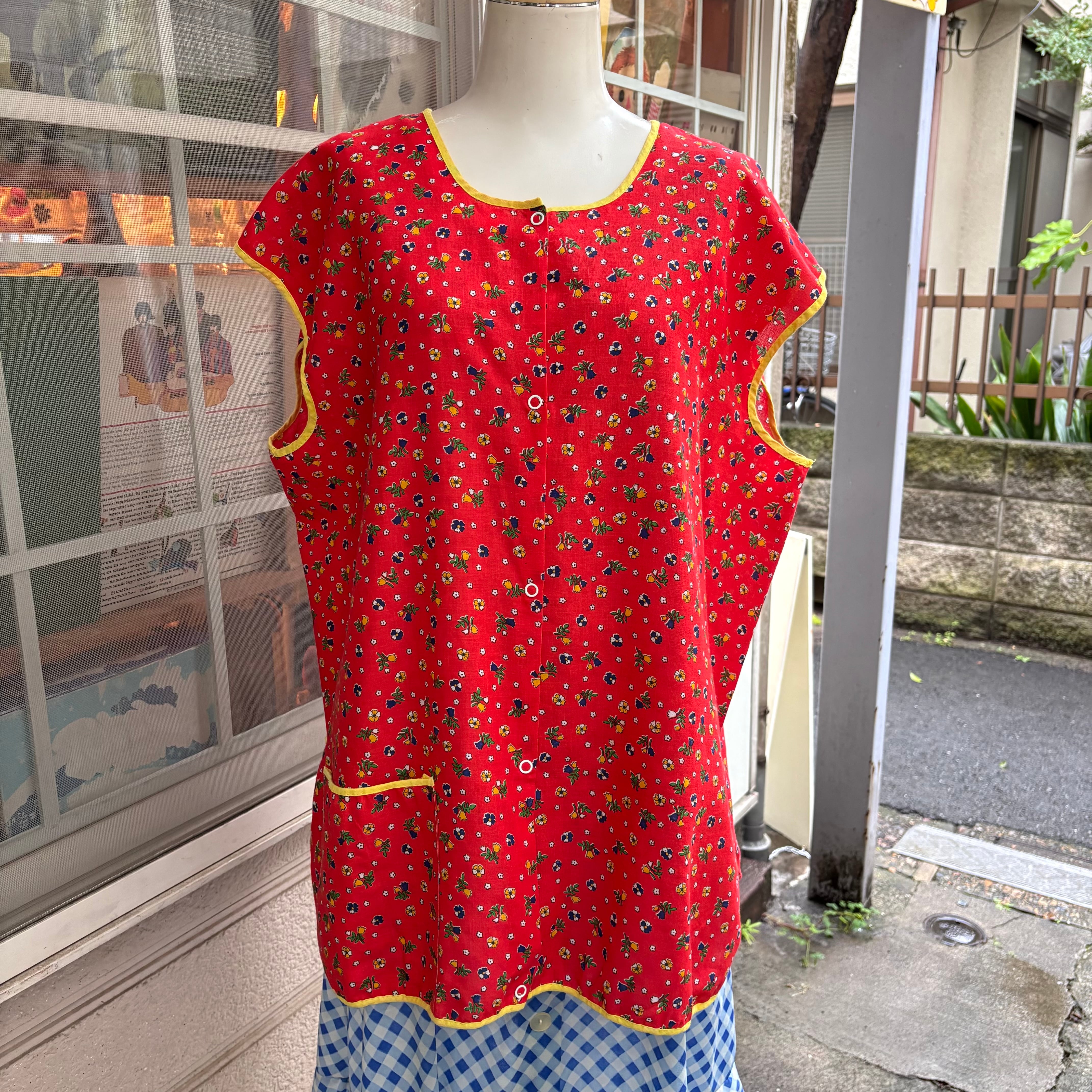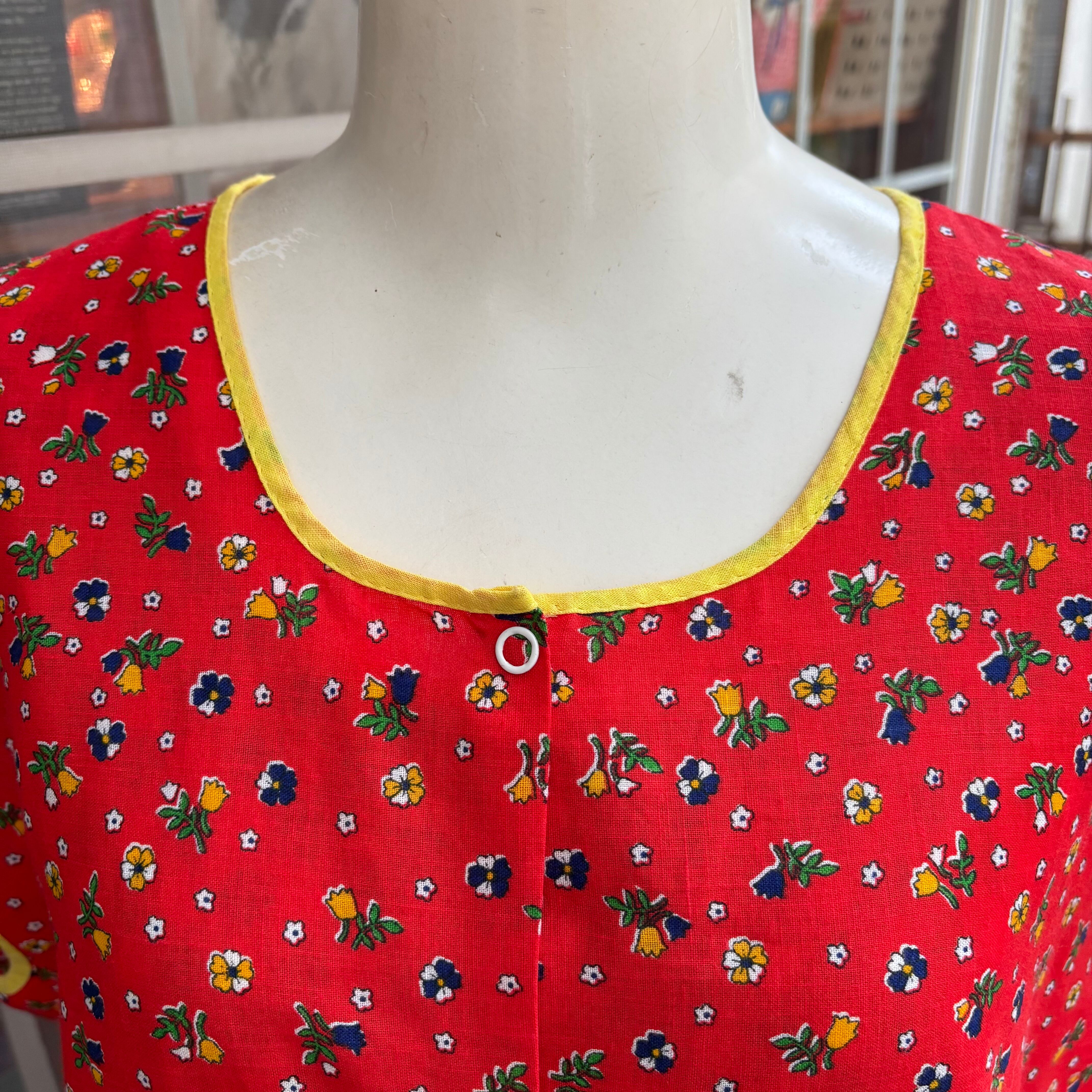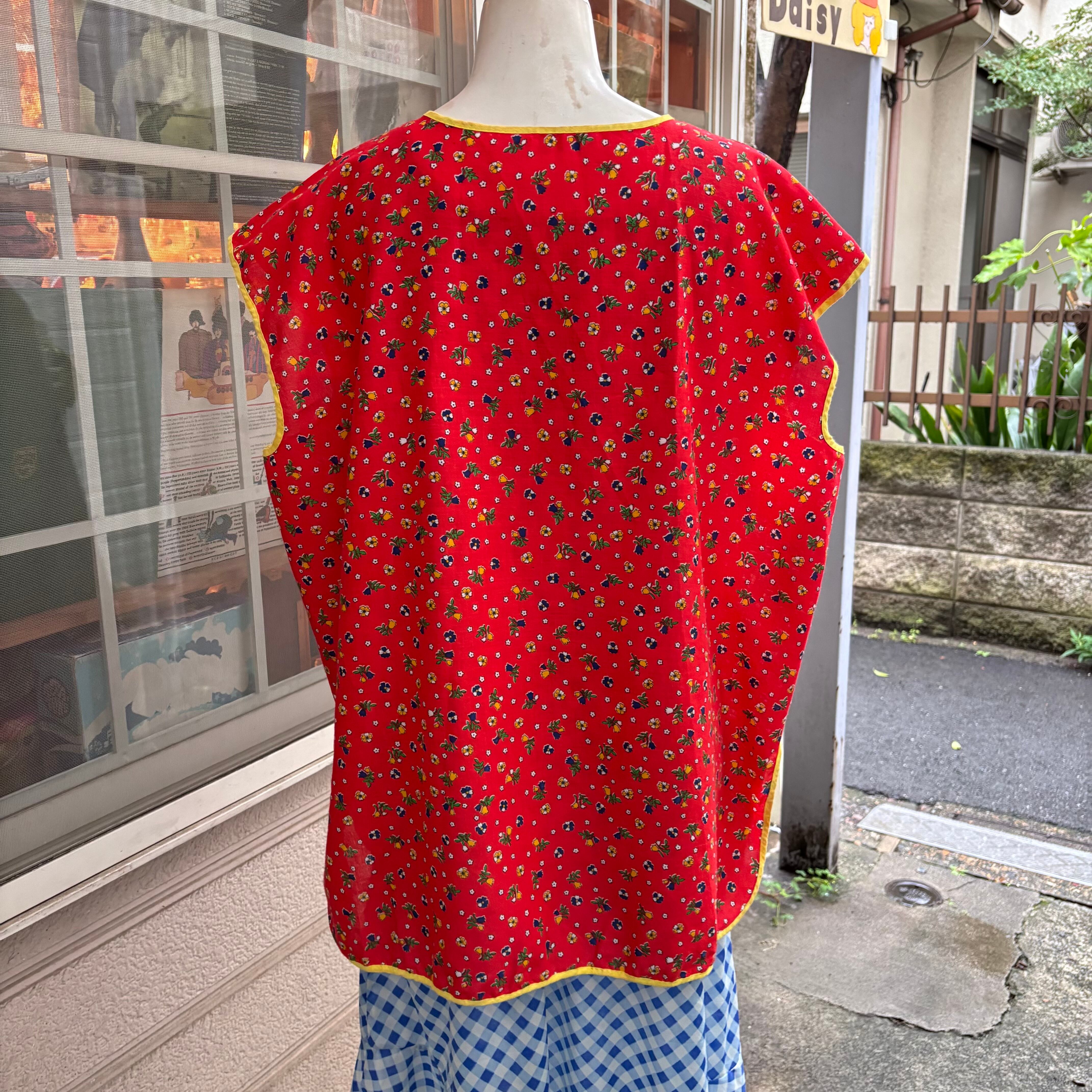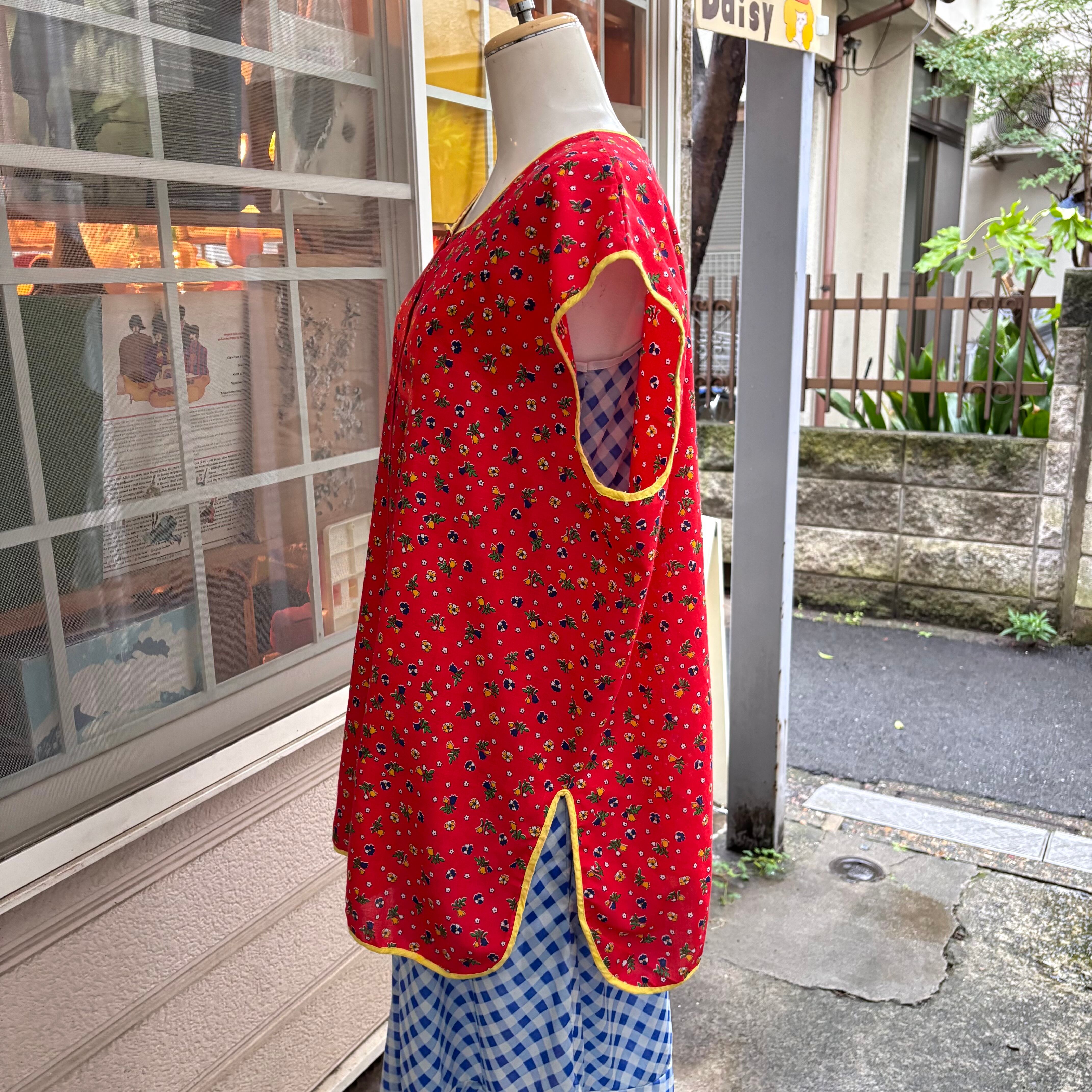 70年代 当時のハンドメイド1点もの ヴィンテージ フラワープリント コットントップスです。