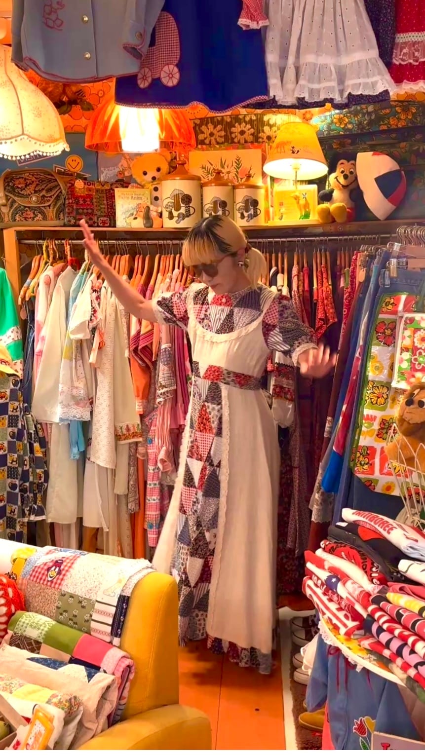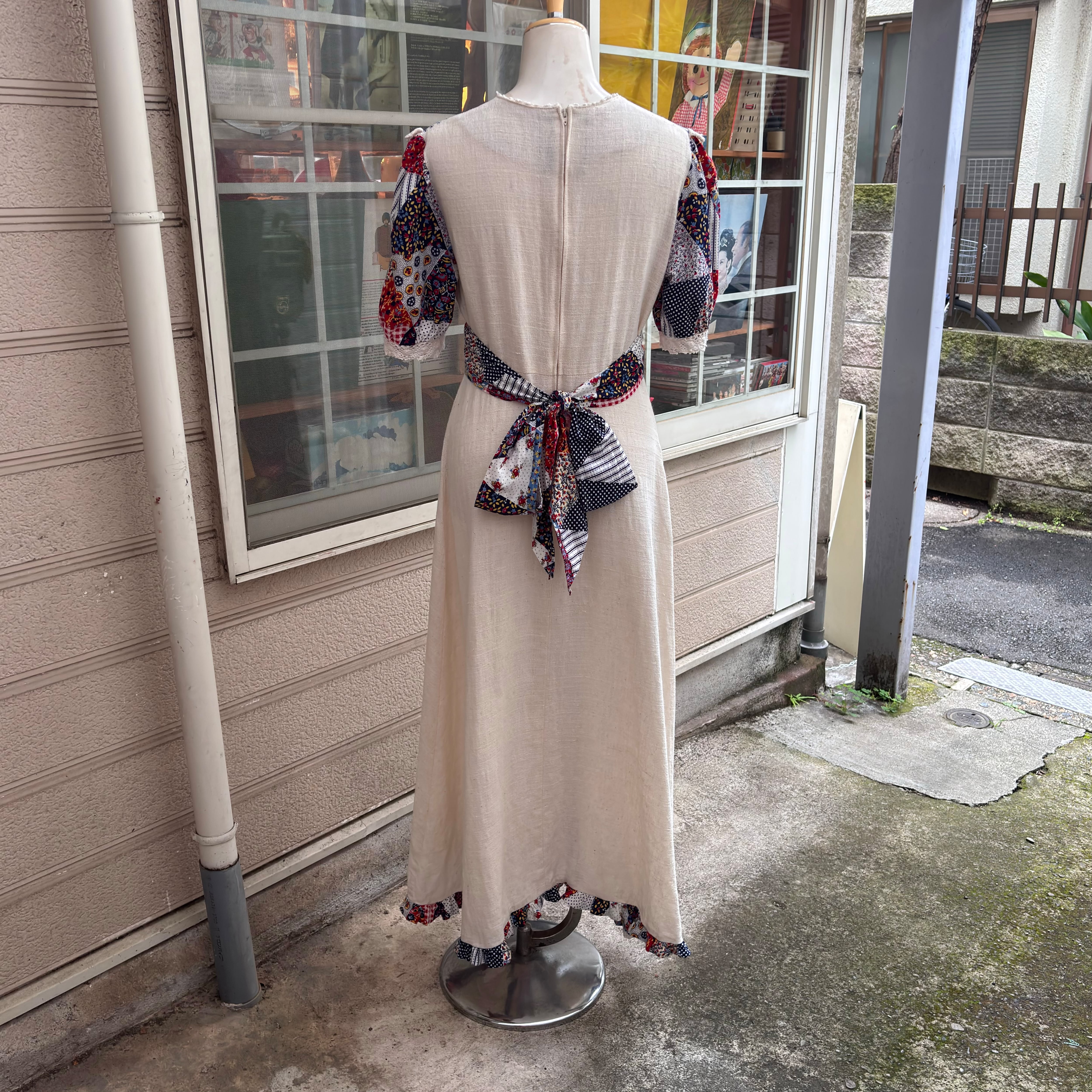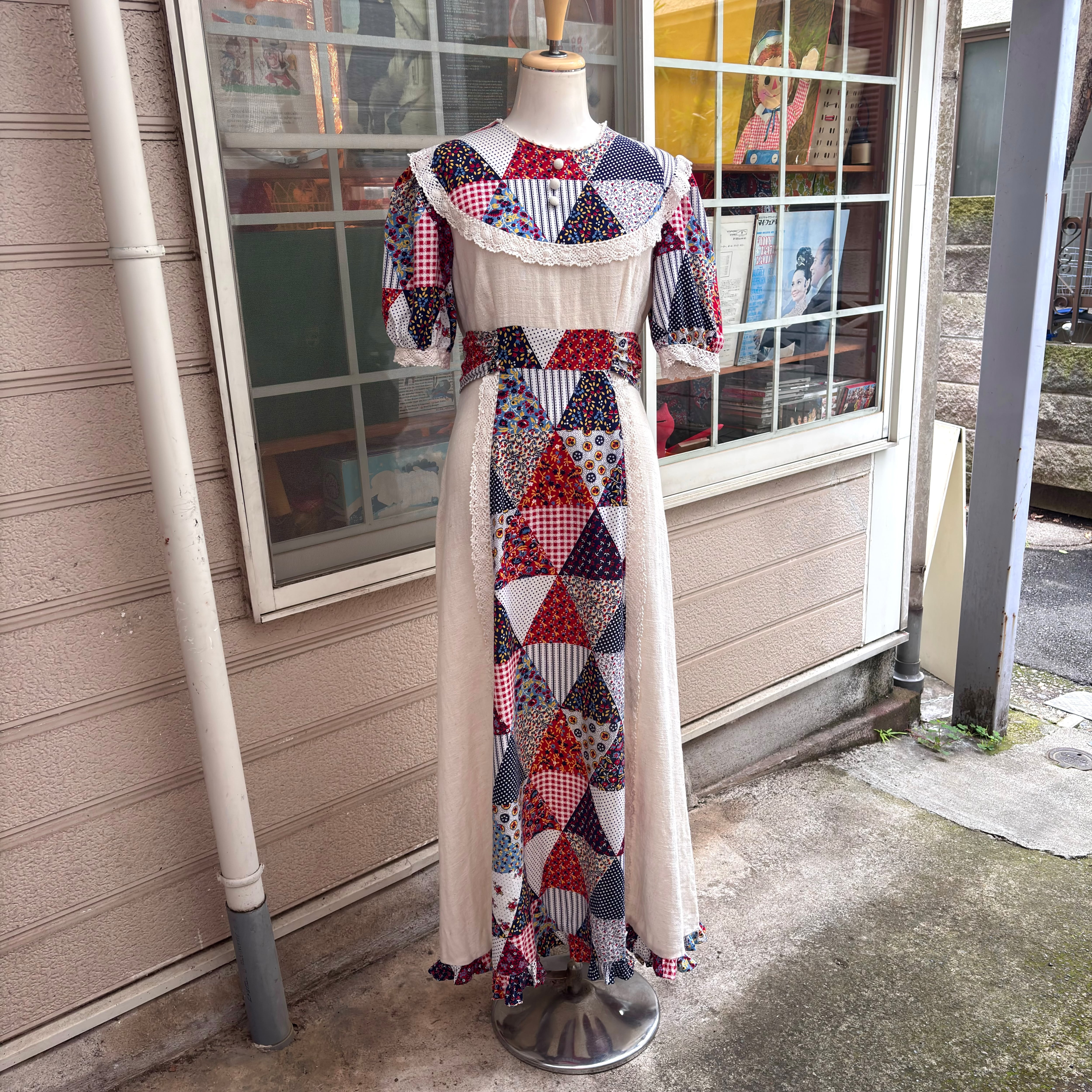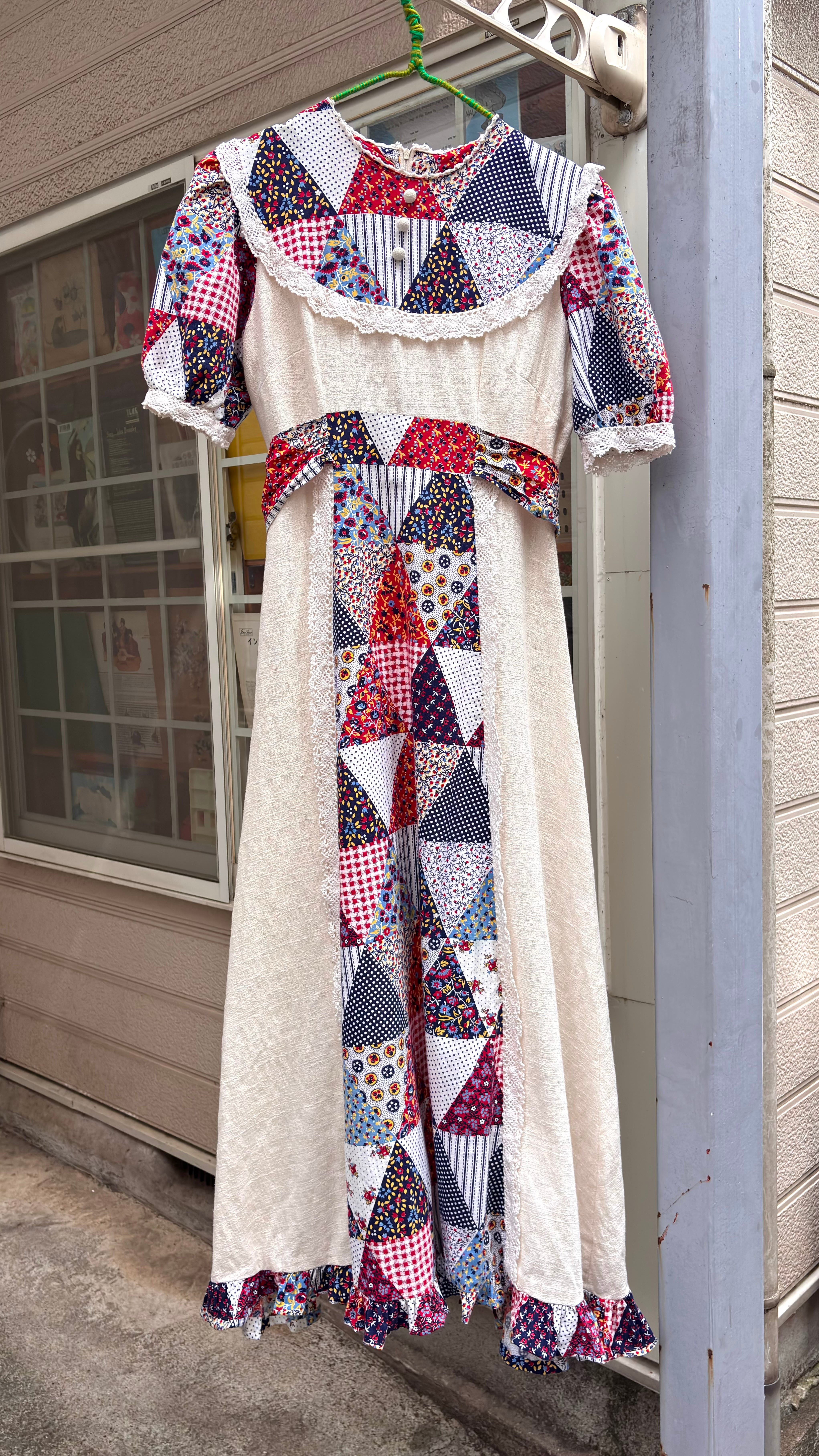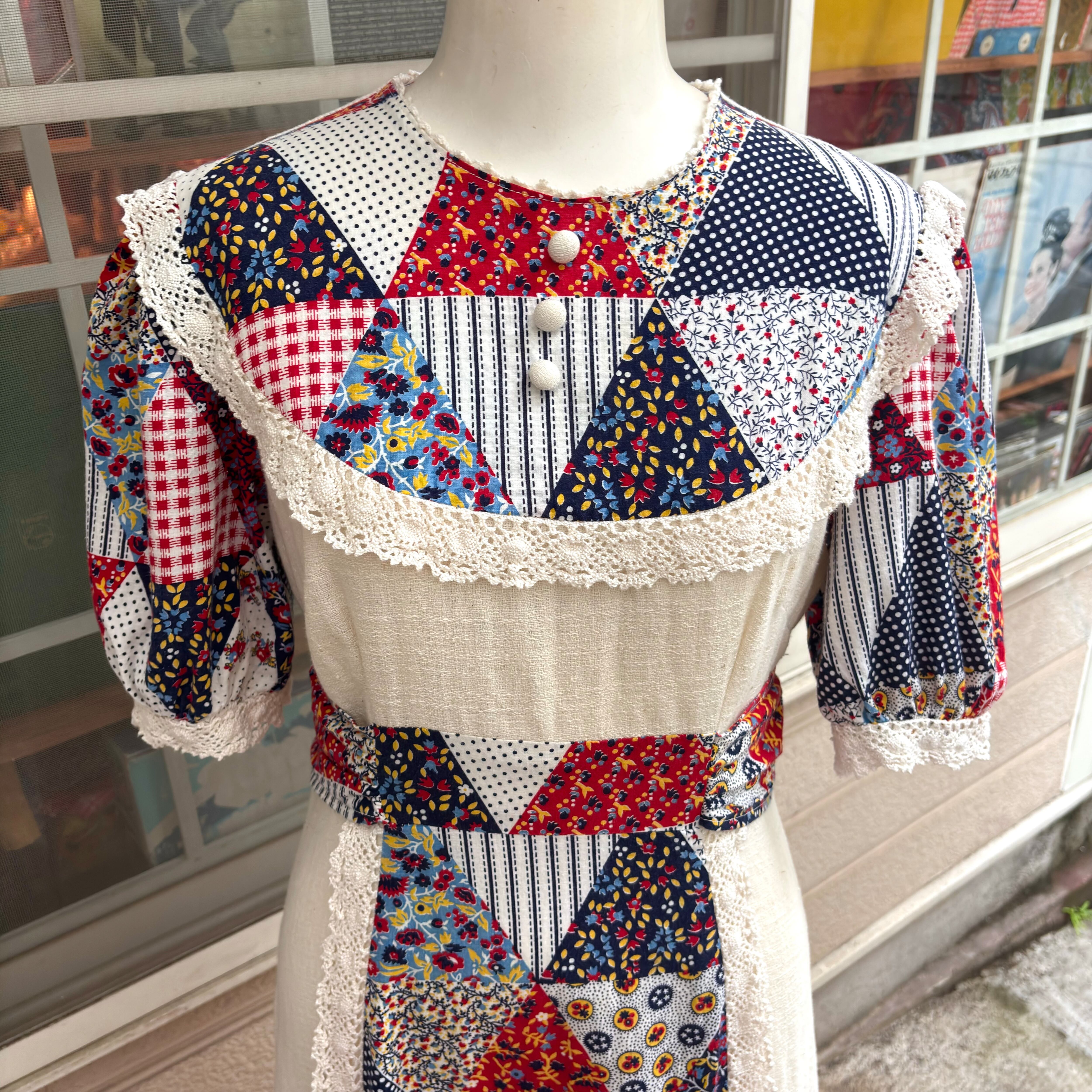 70年代 ヴィンテージ パッチワーク柄 ロングドレスです。