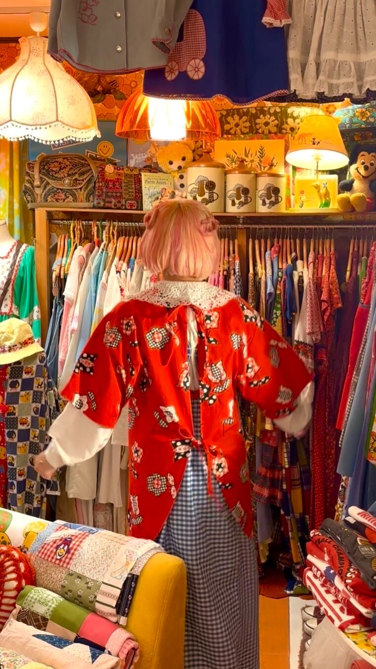 エプロンとしてはもちろん、デニムやワンピースにレイヤードして頂いたり、襟をだしたスタイリングなど古着ならではなコーデがお楽しみ頂けるかと思います。