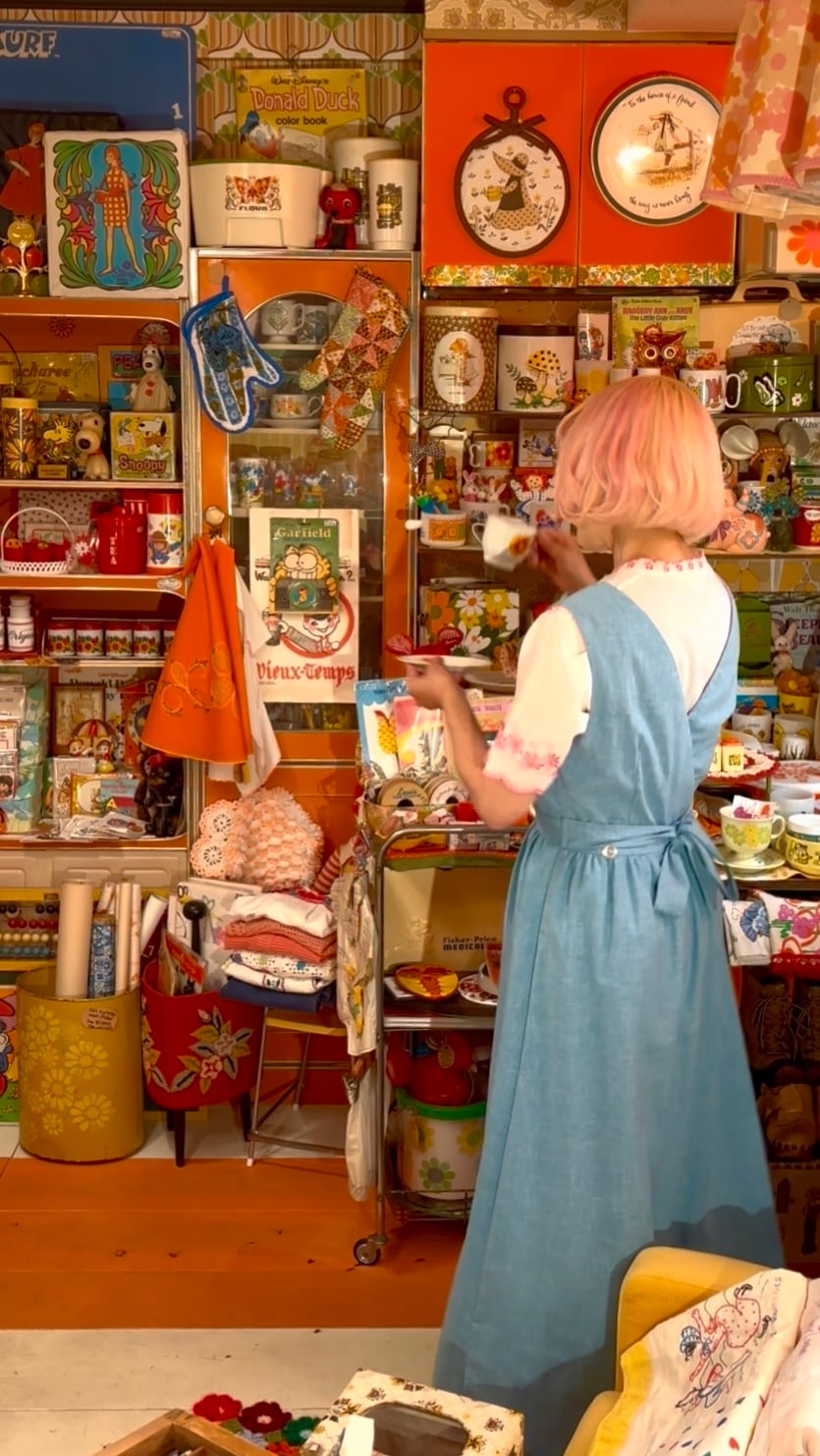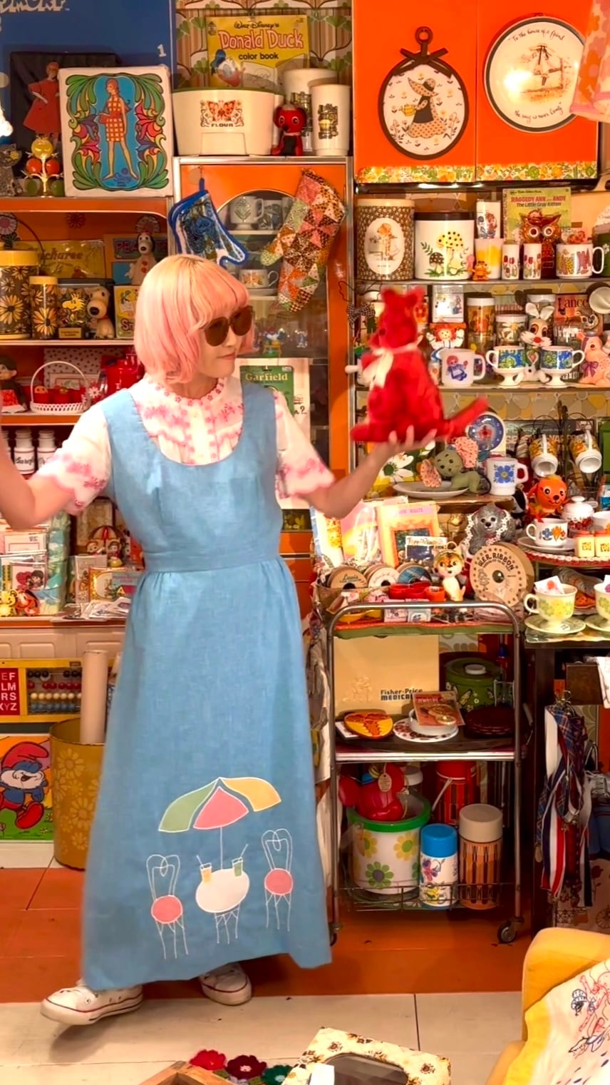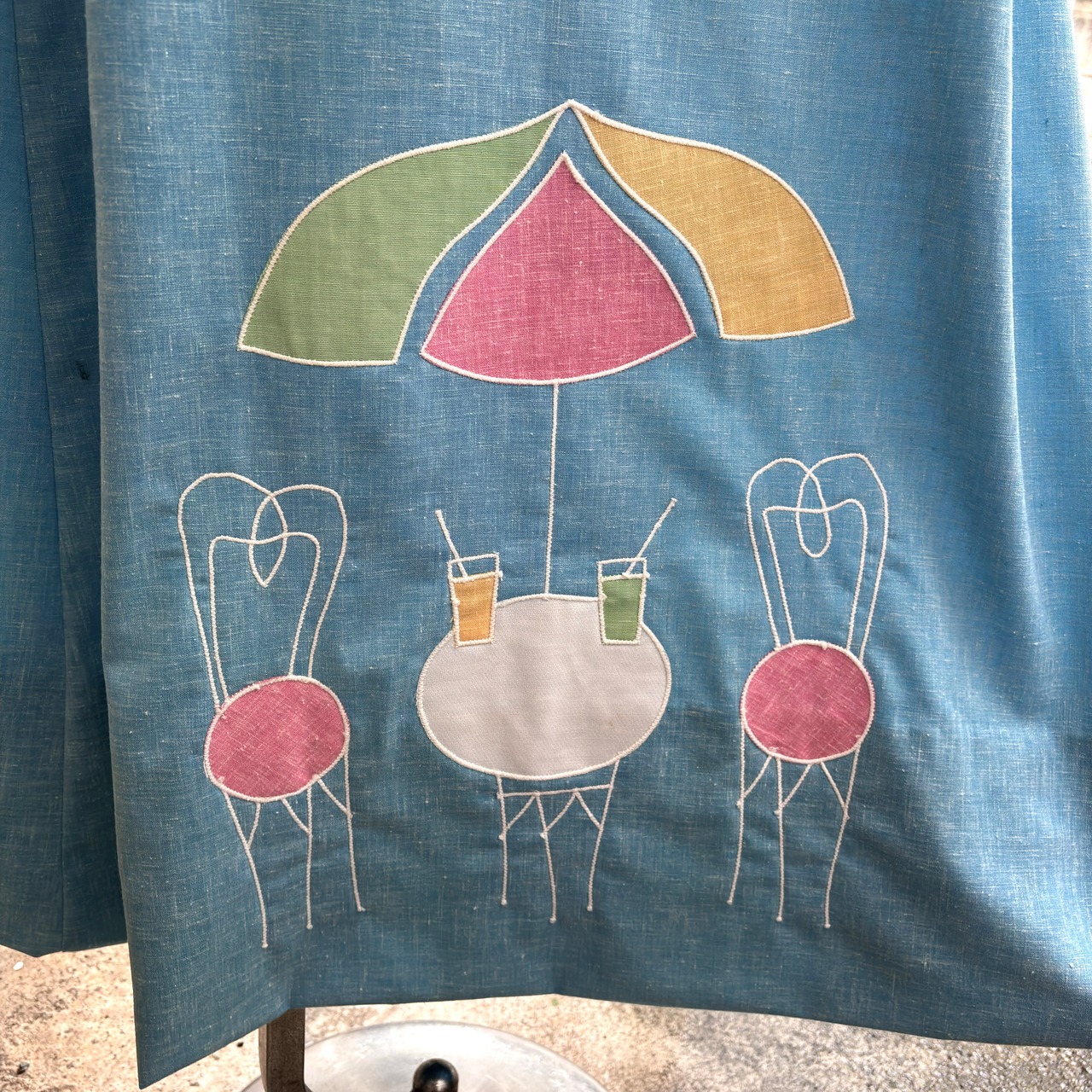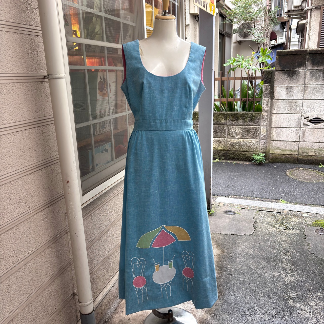 70年代 ヴィンテージ パラソル テーブル&チェアー パッチ デザイン ドレスです。