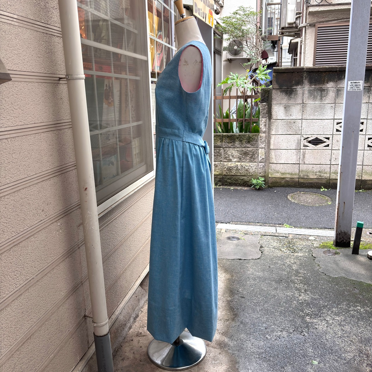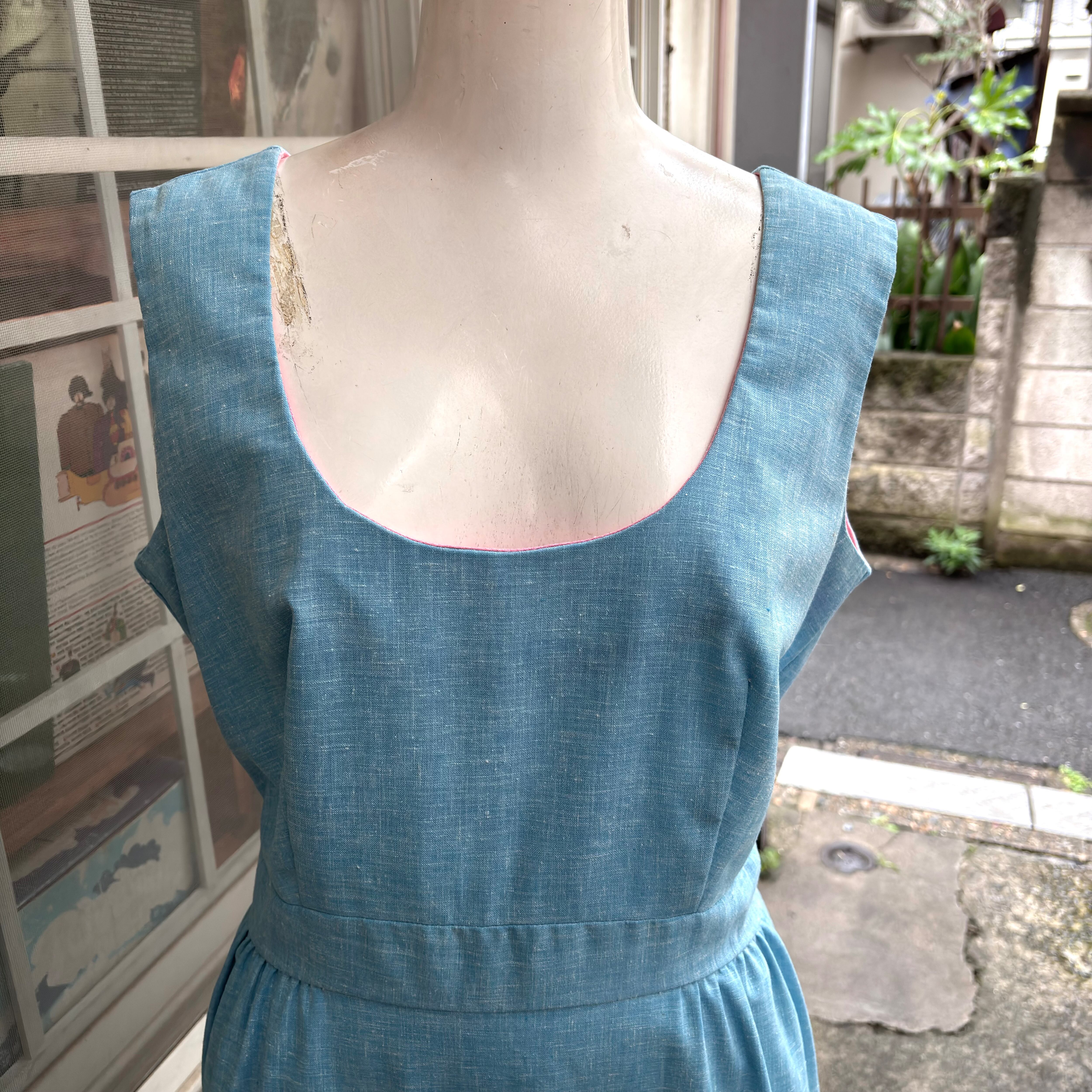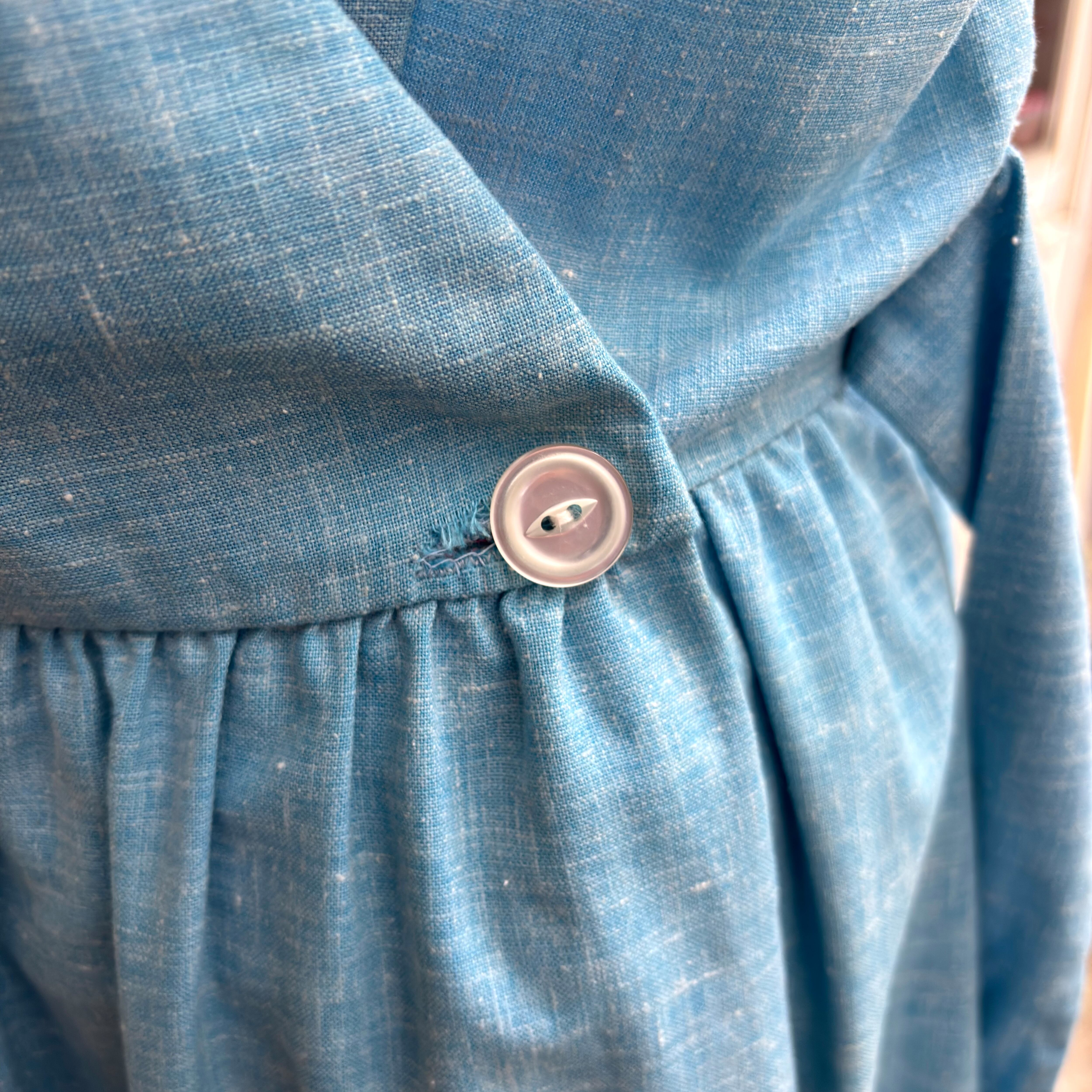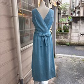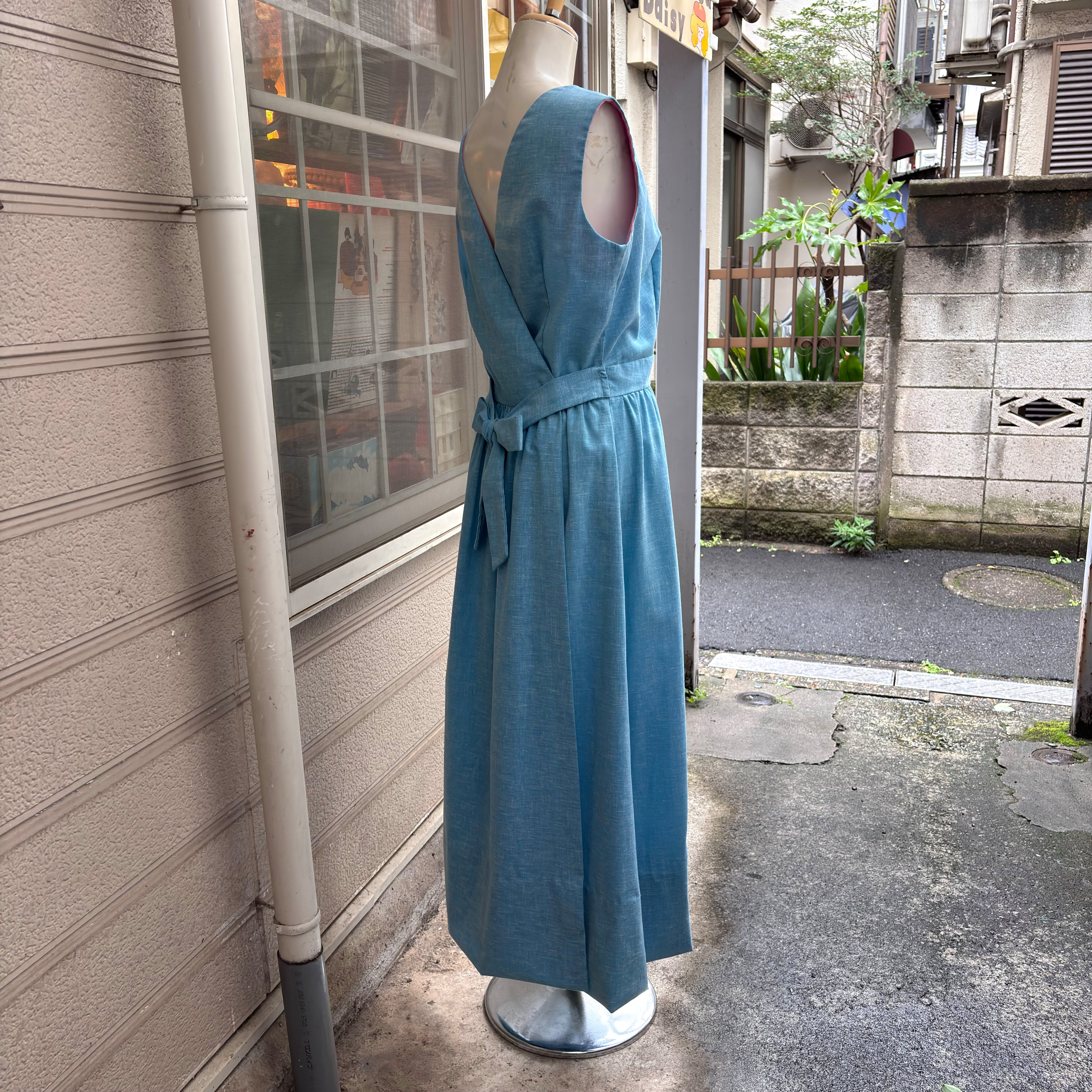 背面側のウエスト部分にボタンが2つあり、カシュクールタイプのデザインやキュッと結ぶおリボンスタイルも古着ならではな可愛いデザインです。