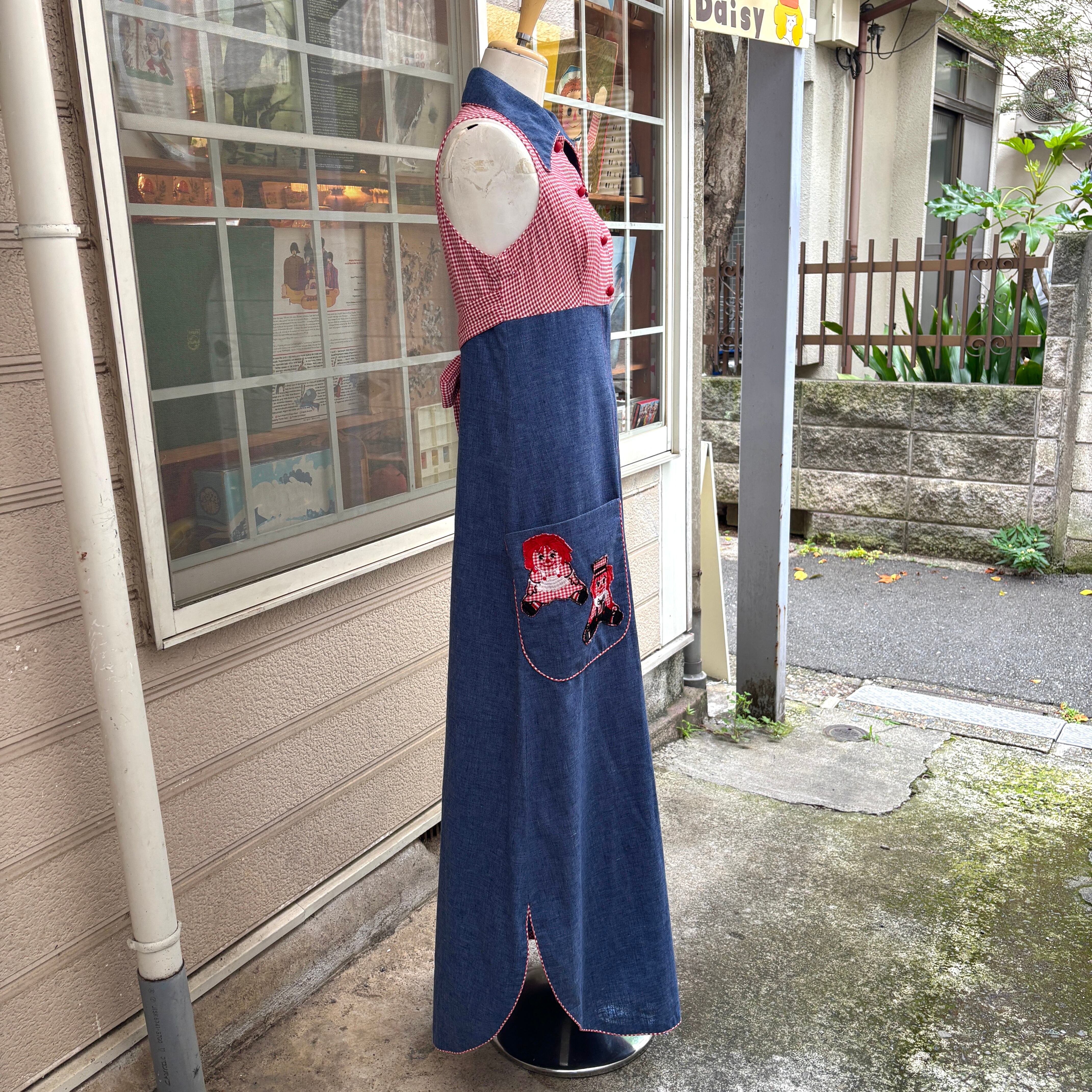 70年代 ヴィンテージ ギンガムチェック ラガディ アン&アンディ ワッペン ロングドレスです。