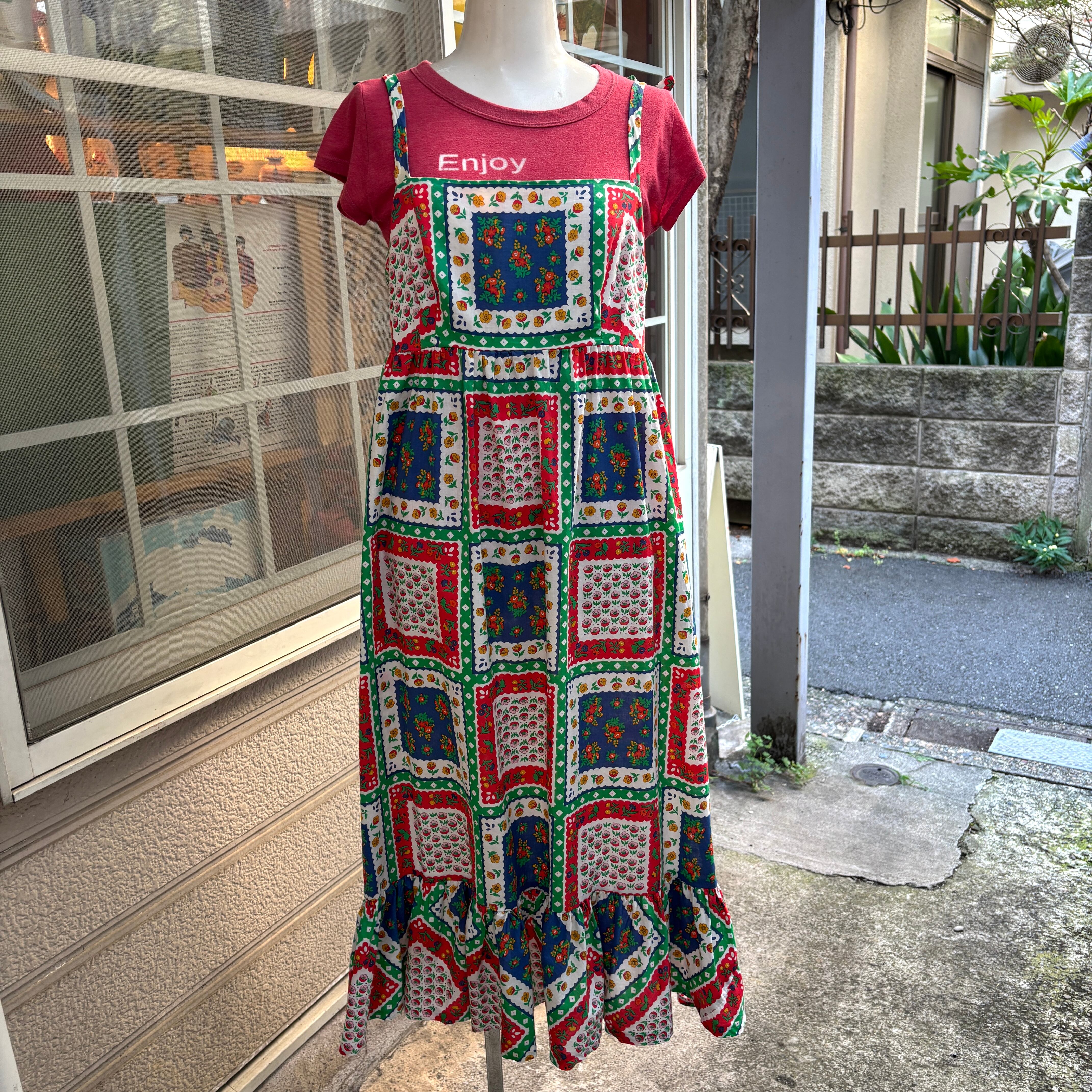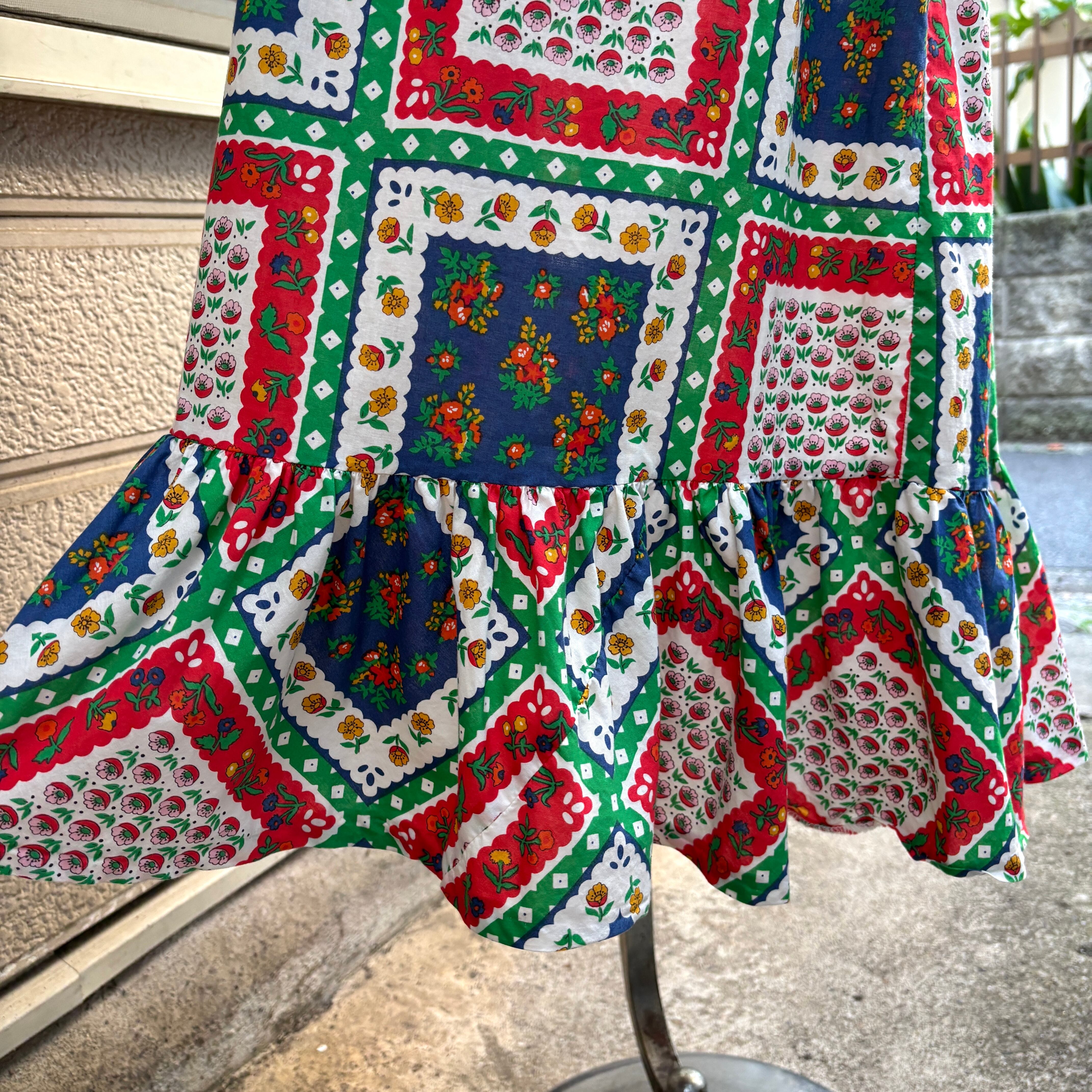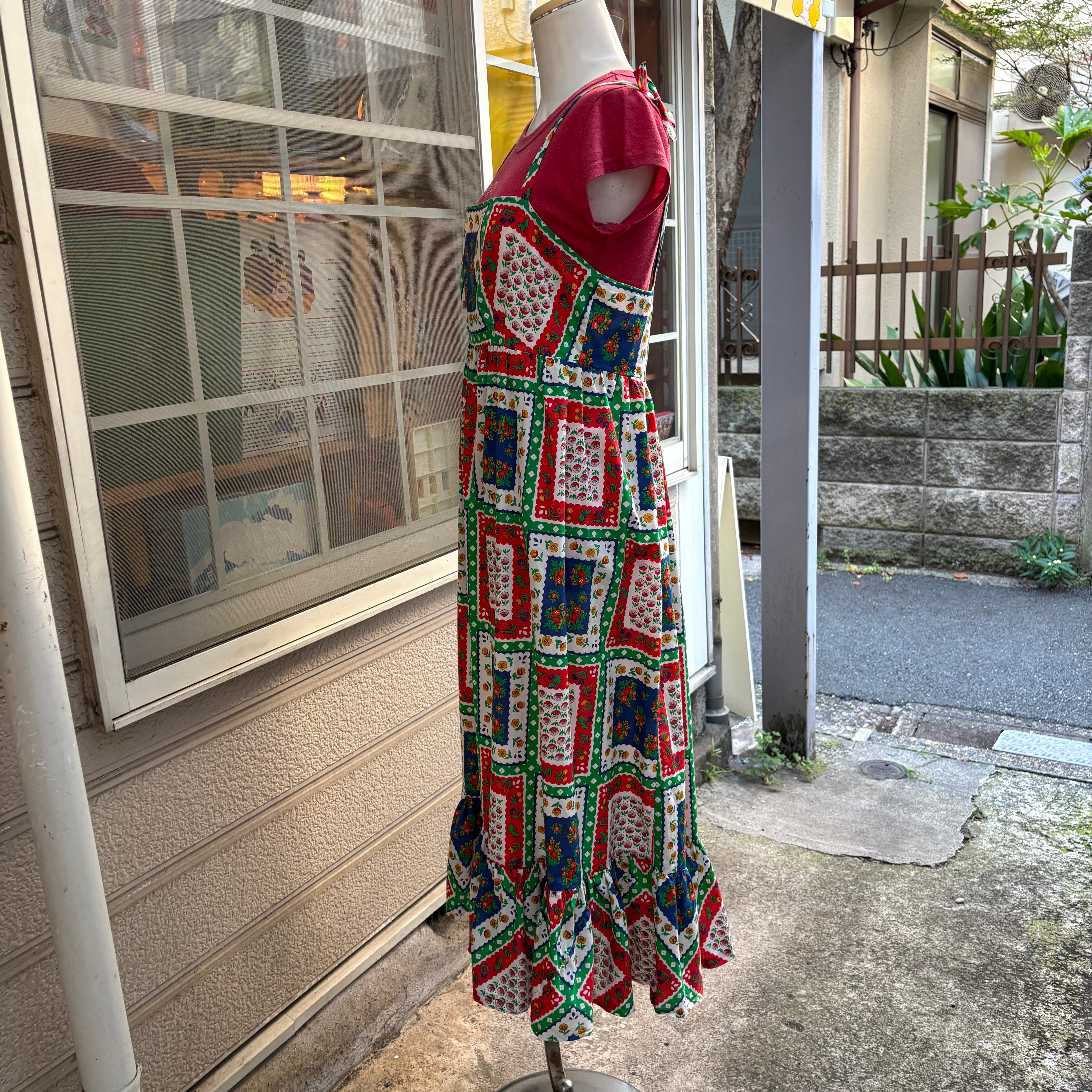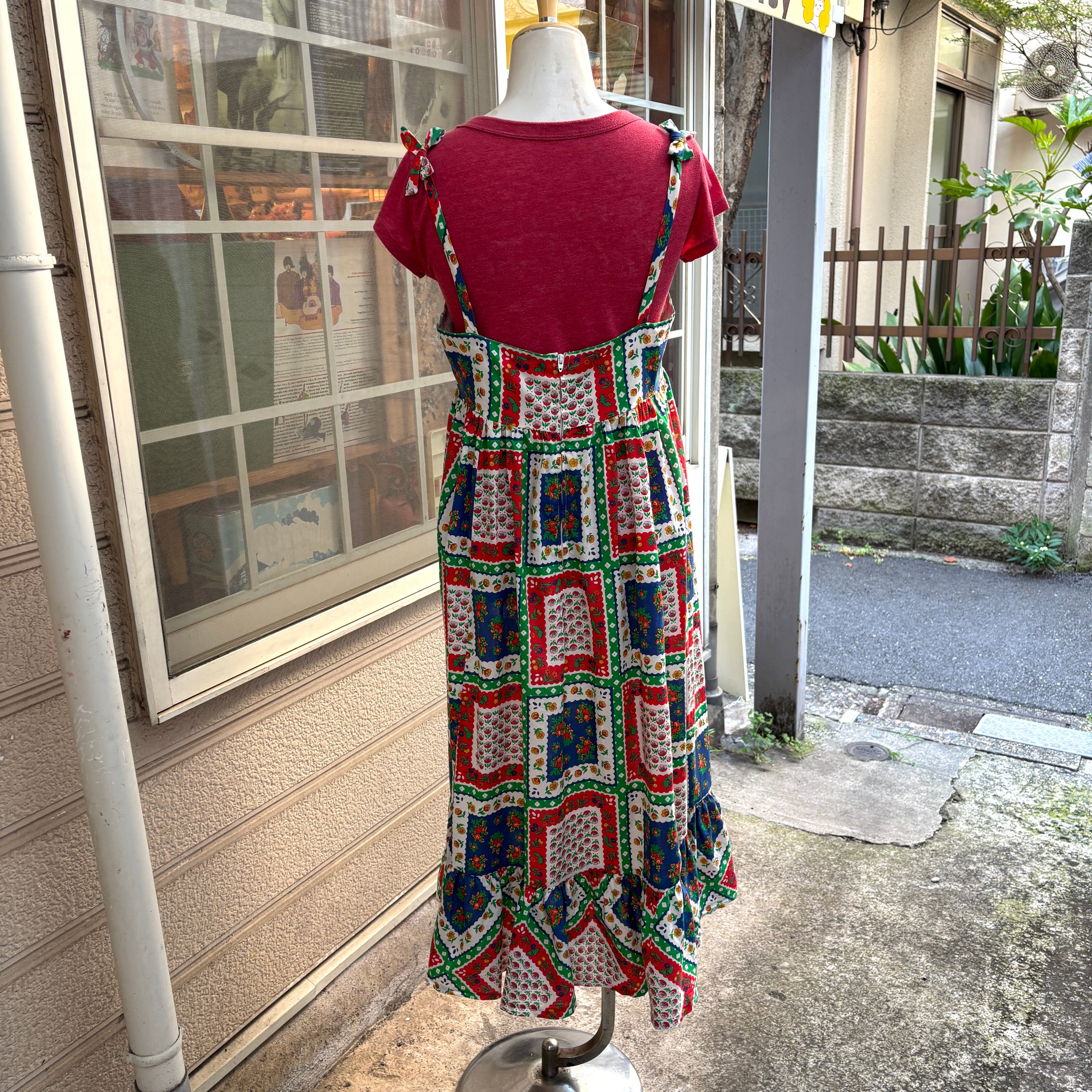 70'S USA Vintage flower patchwork pattern camisole dress 。