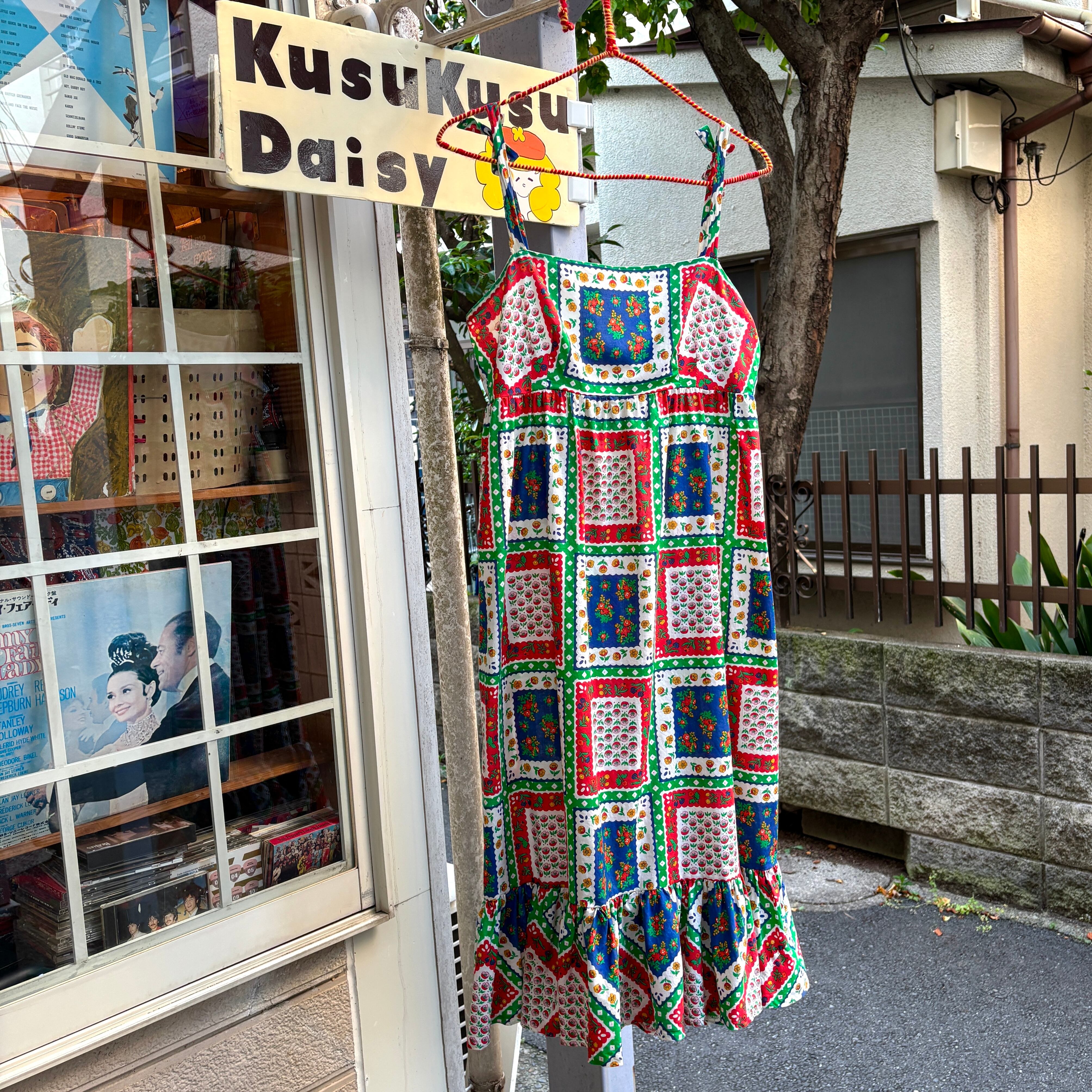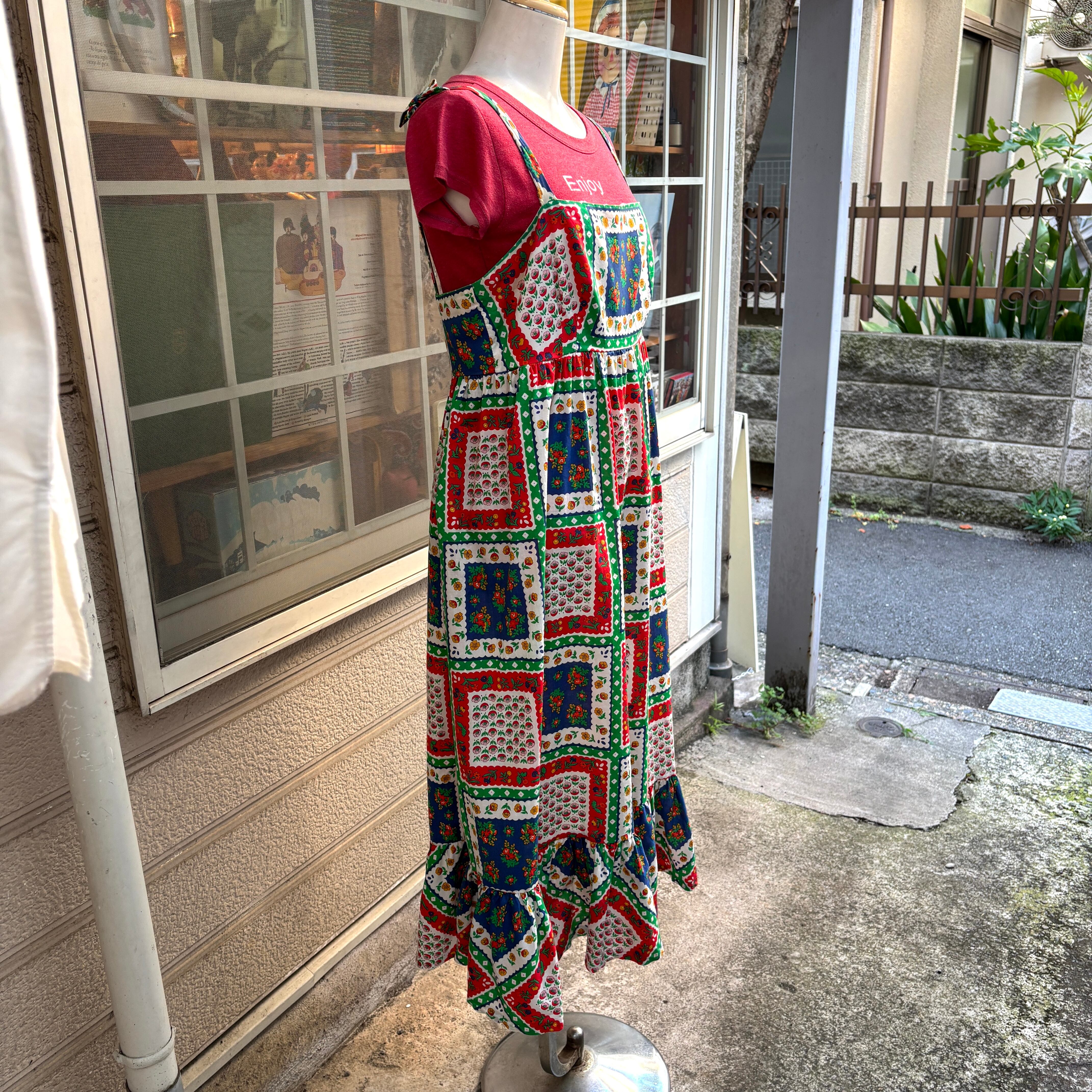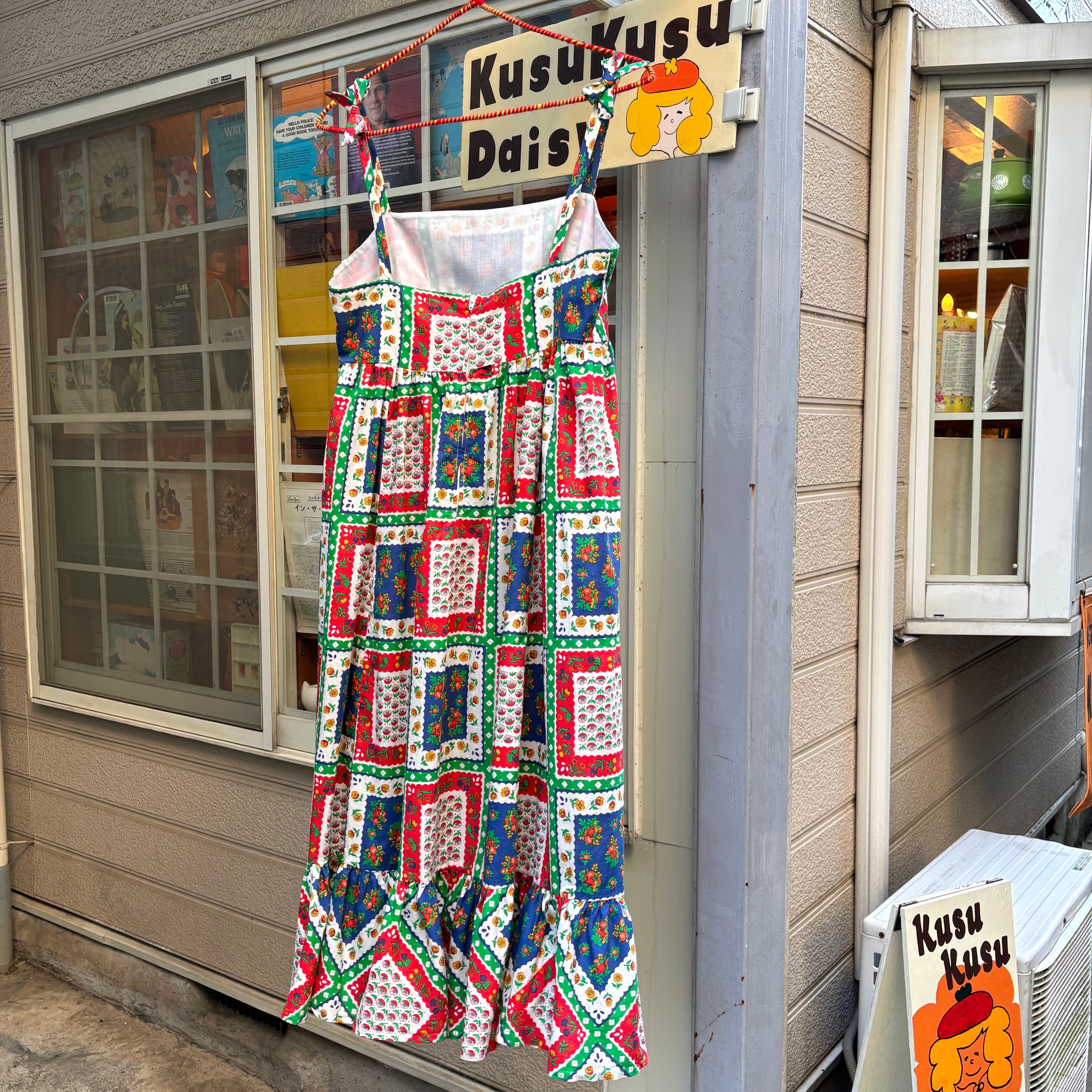 70'S USA Vintage flower patchwork pattern camisole dress 。