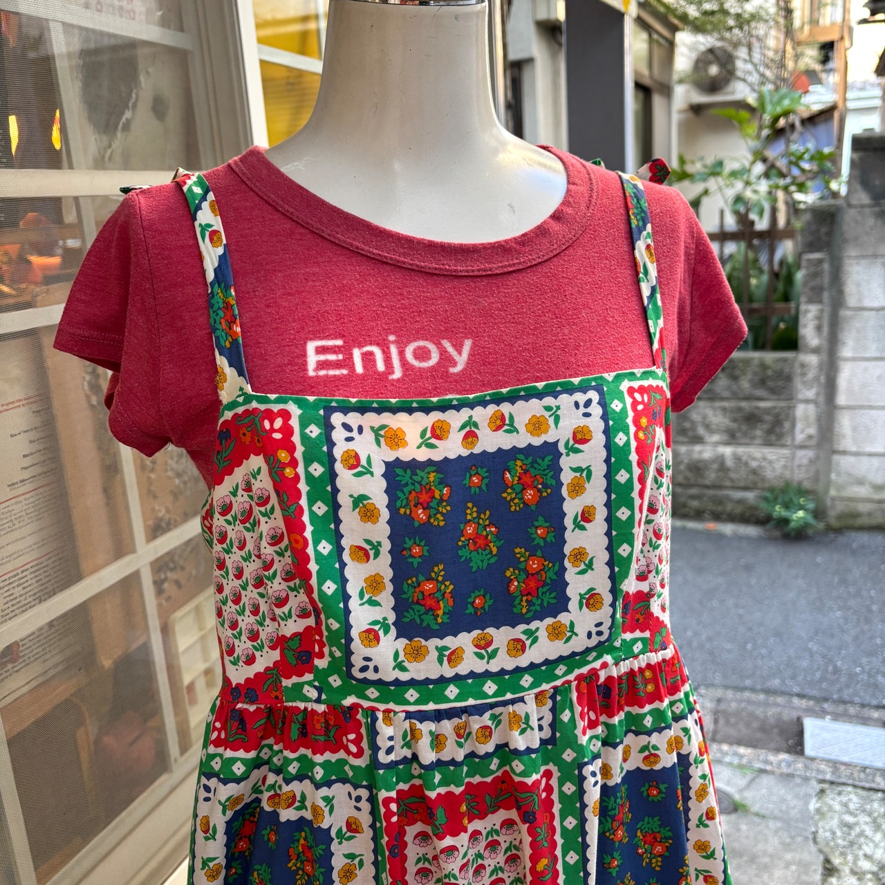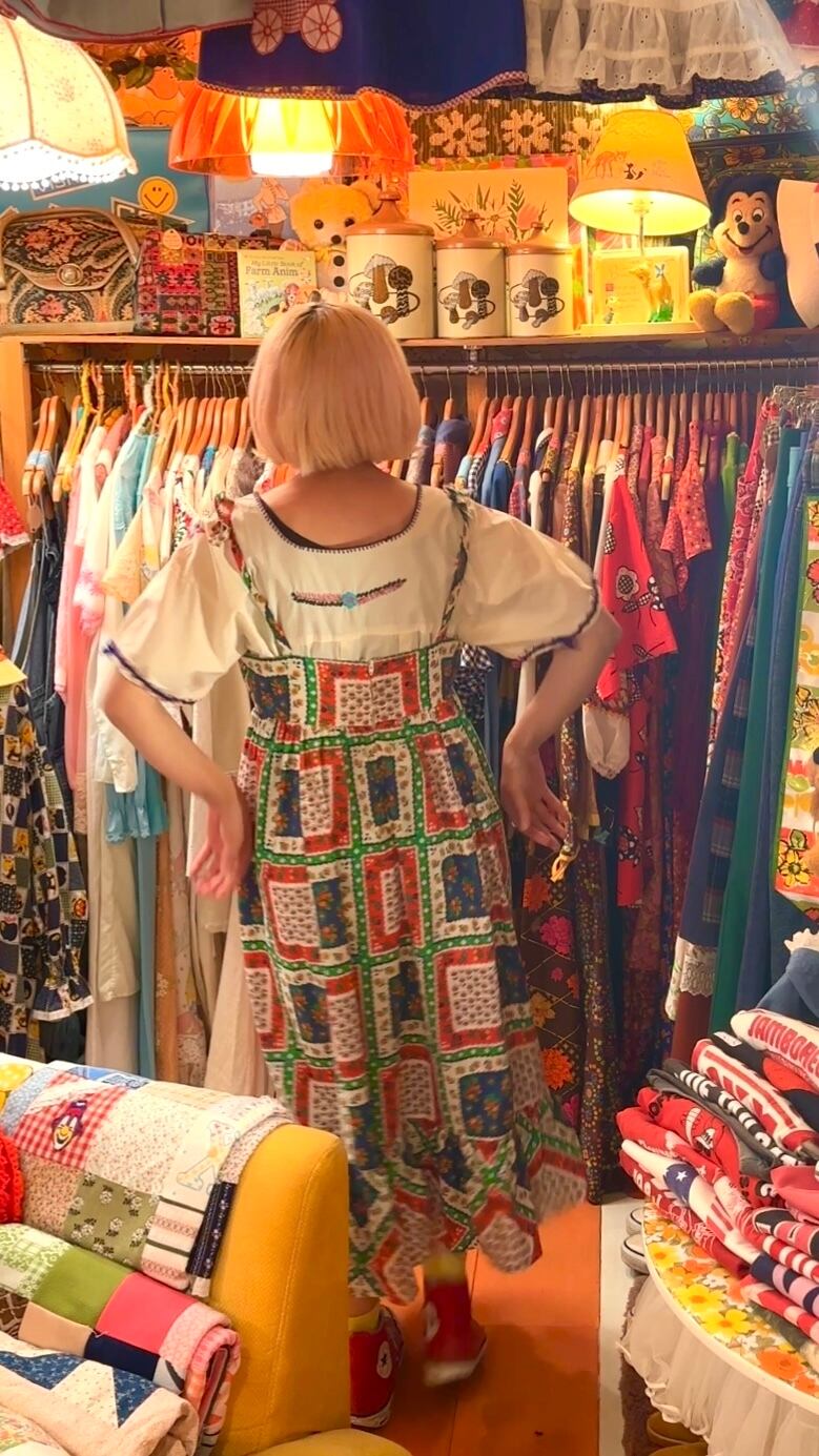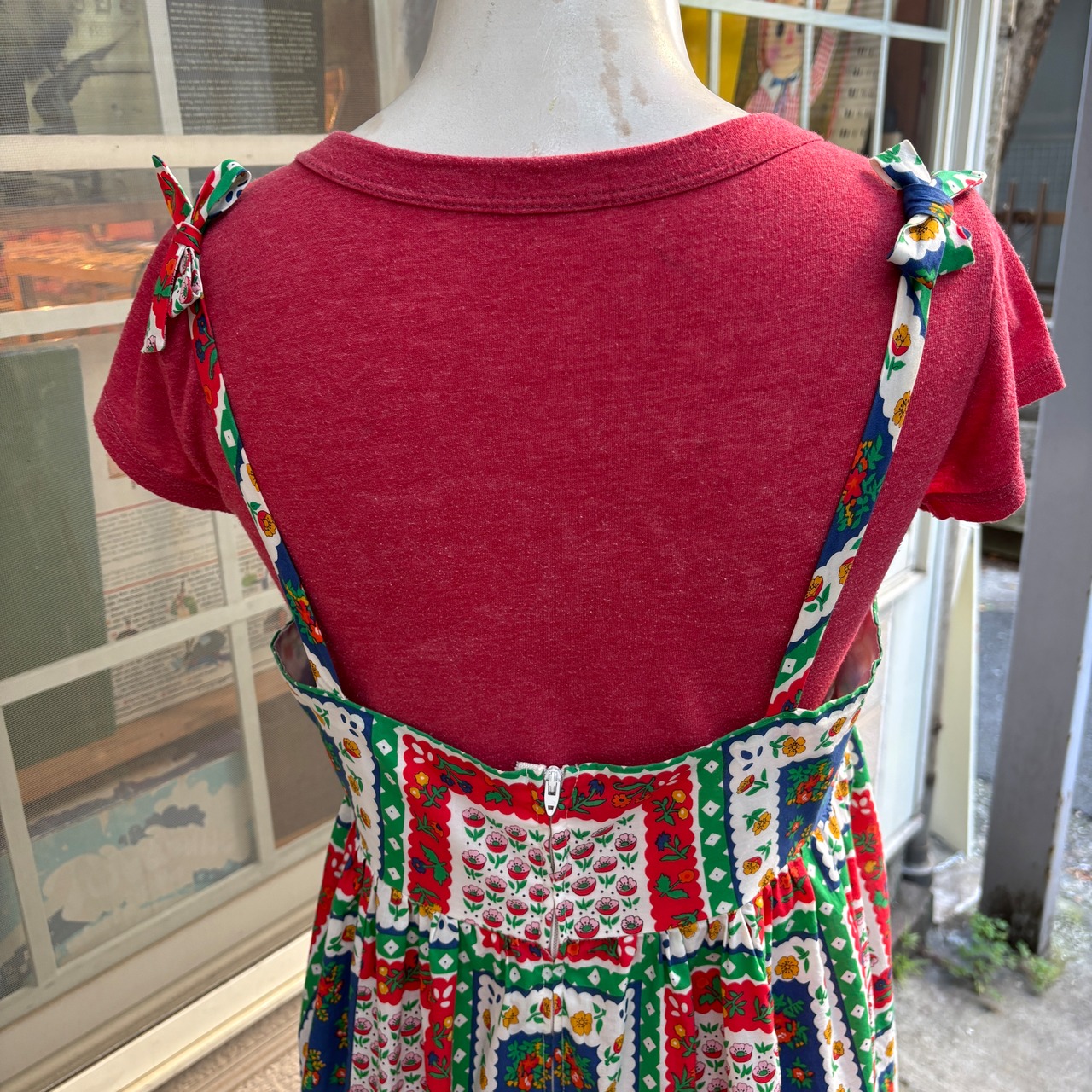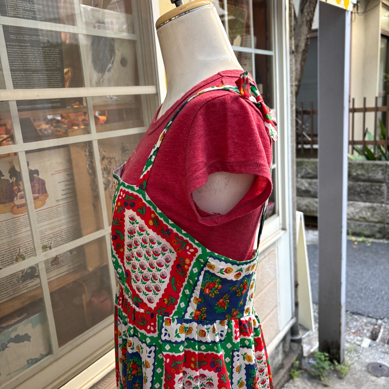 70'S USA Vintage flower patchwork pattern camisole dress 。
