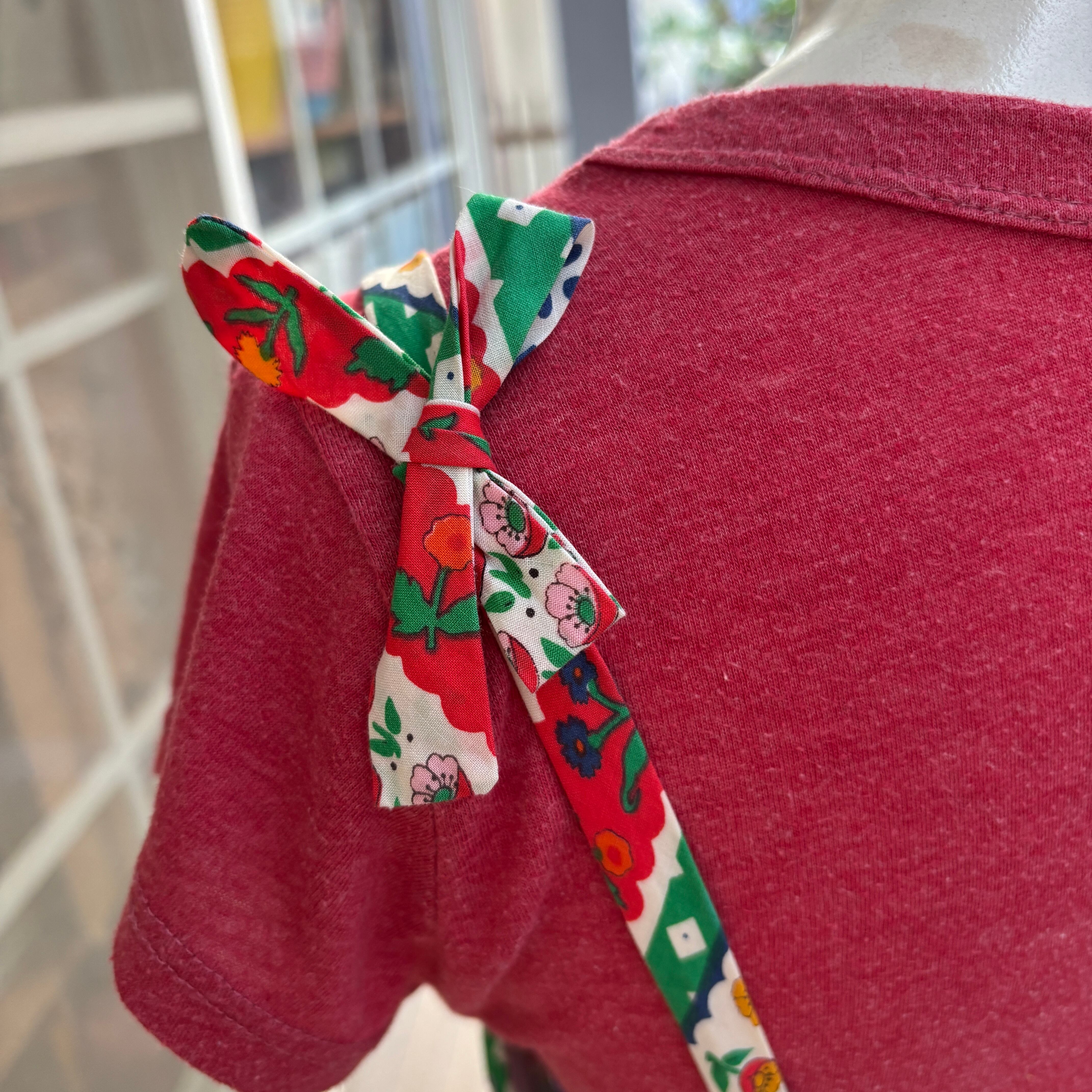 肩紐のリボンはリボン紐が縫われている作りで、肩紐の長さは変えられないタイプです。
