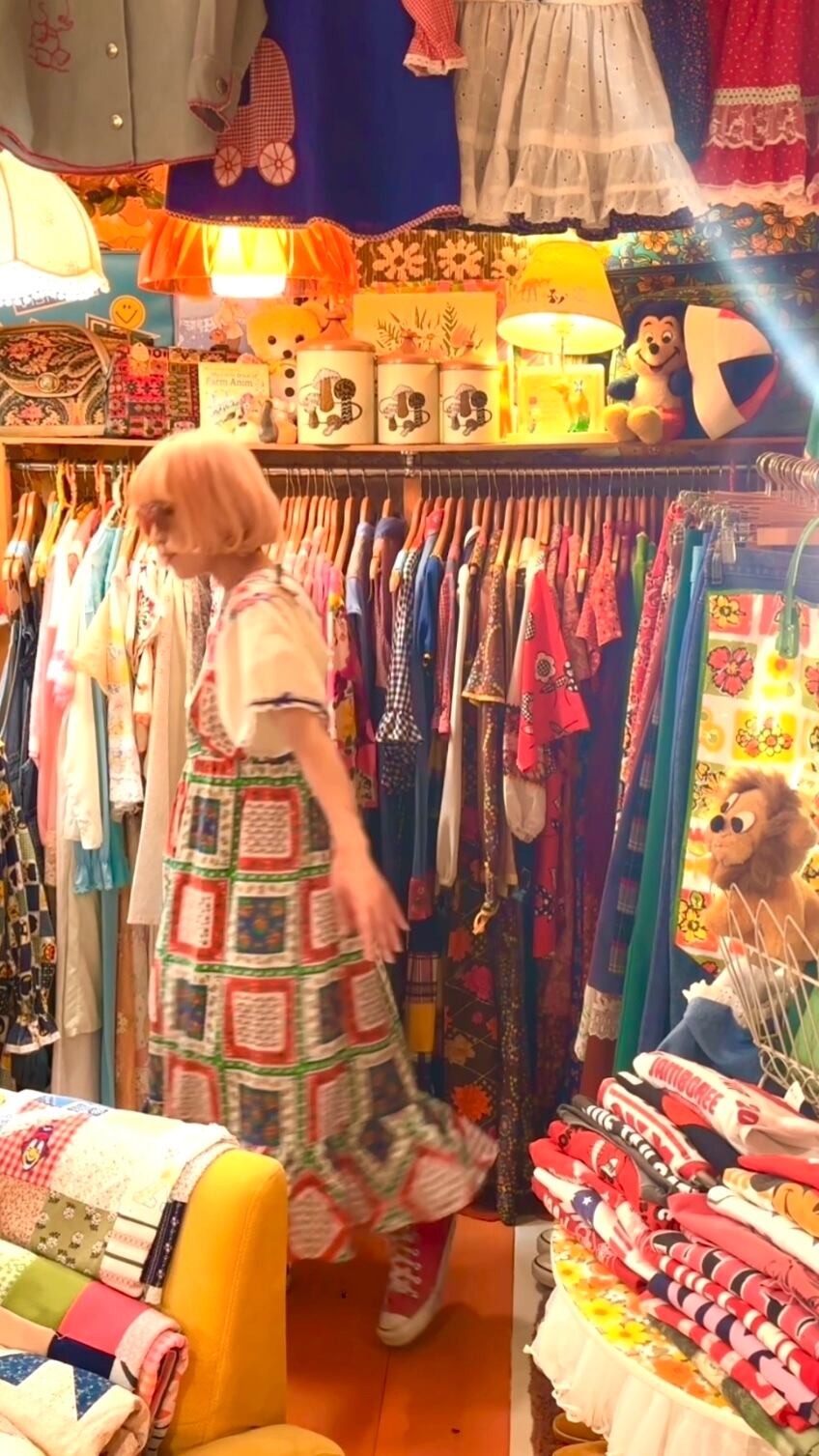 70年代 ヴィンテージ フラワーパッチワーク柄 キャミソールドレスです。