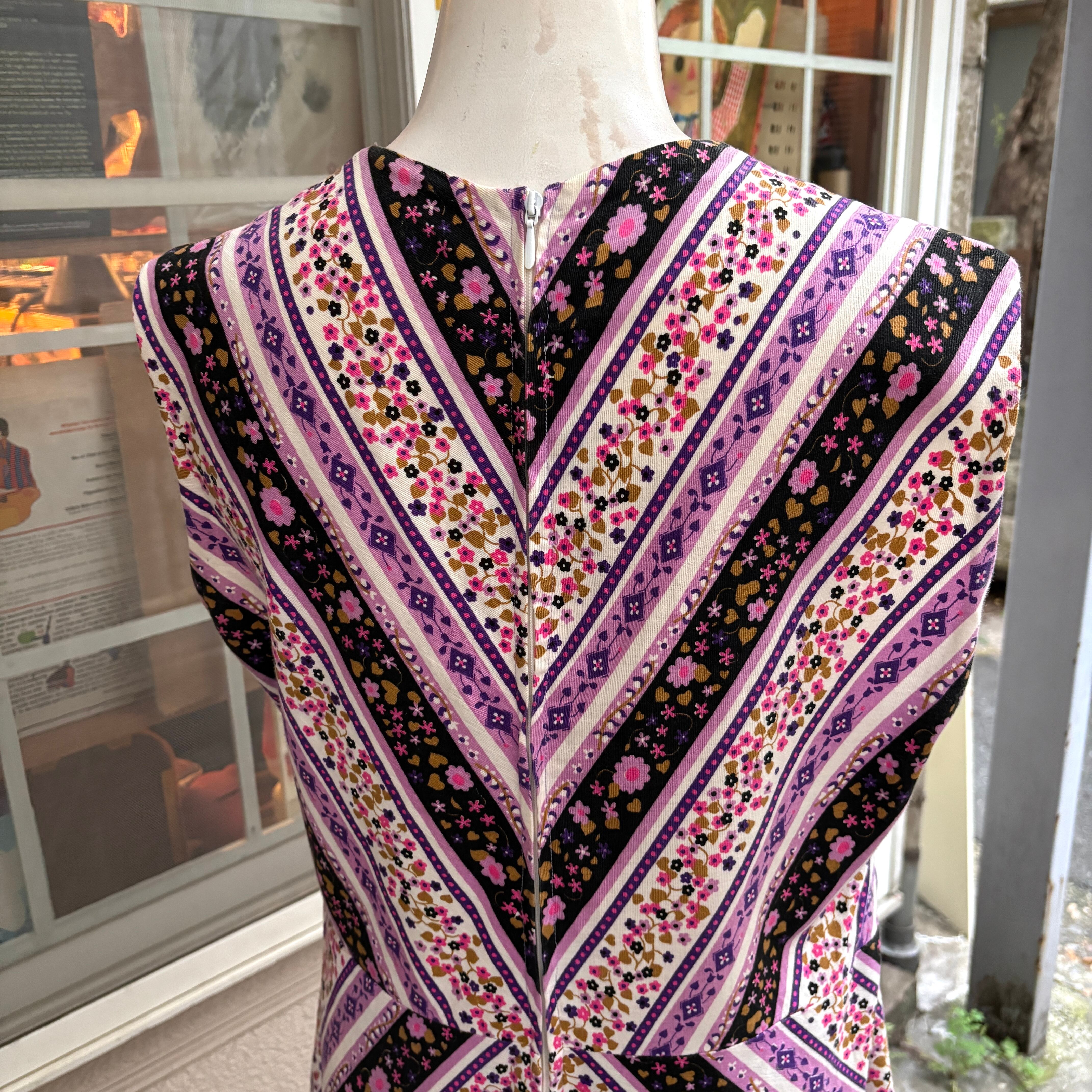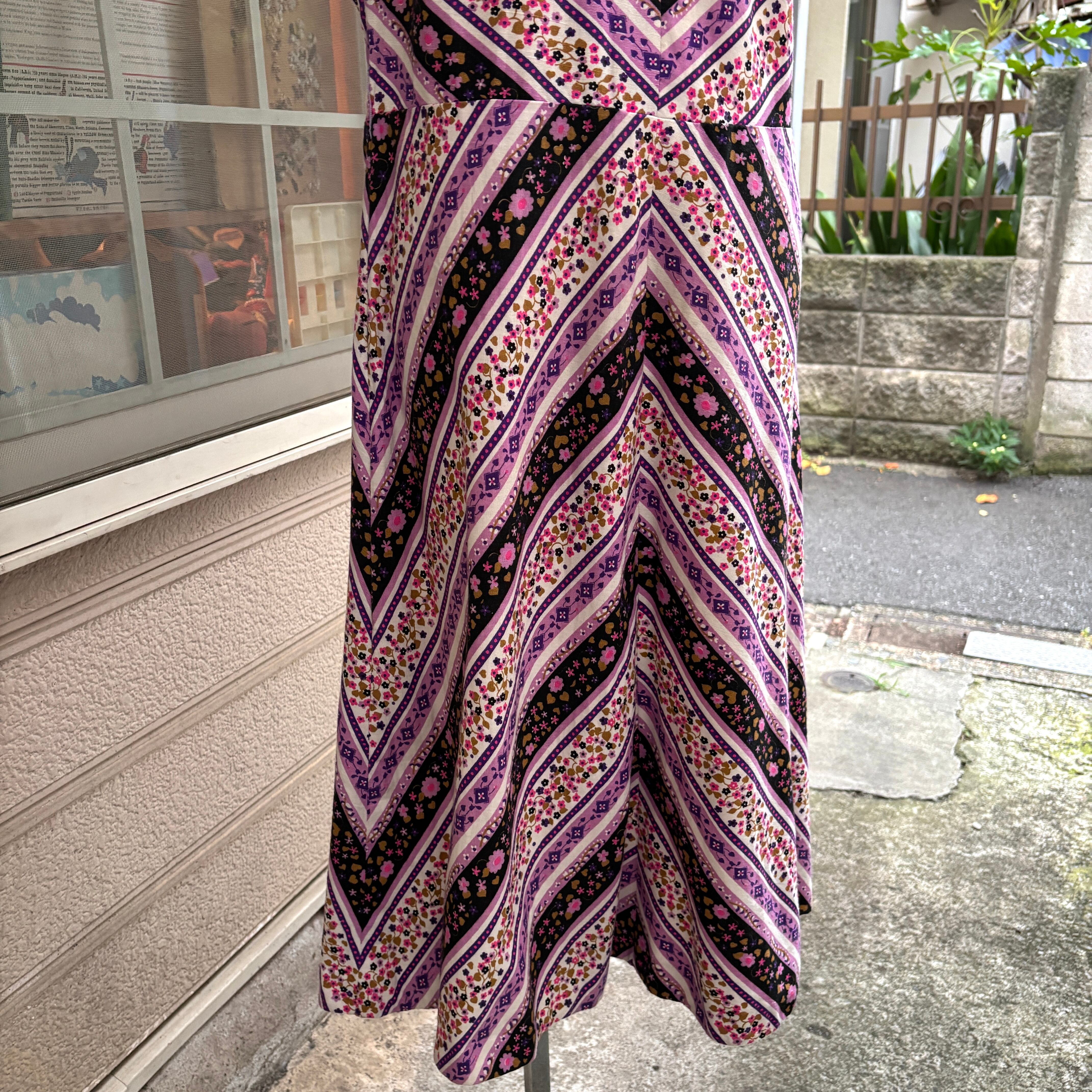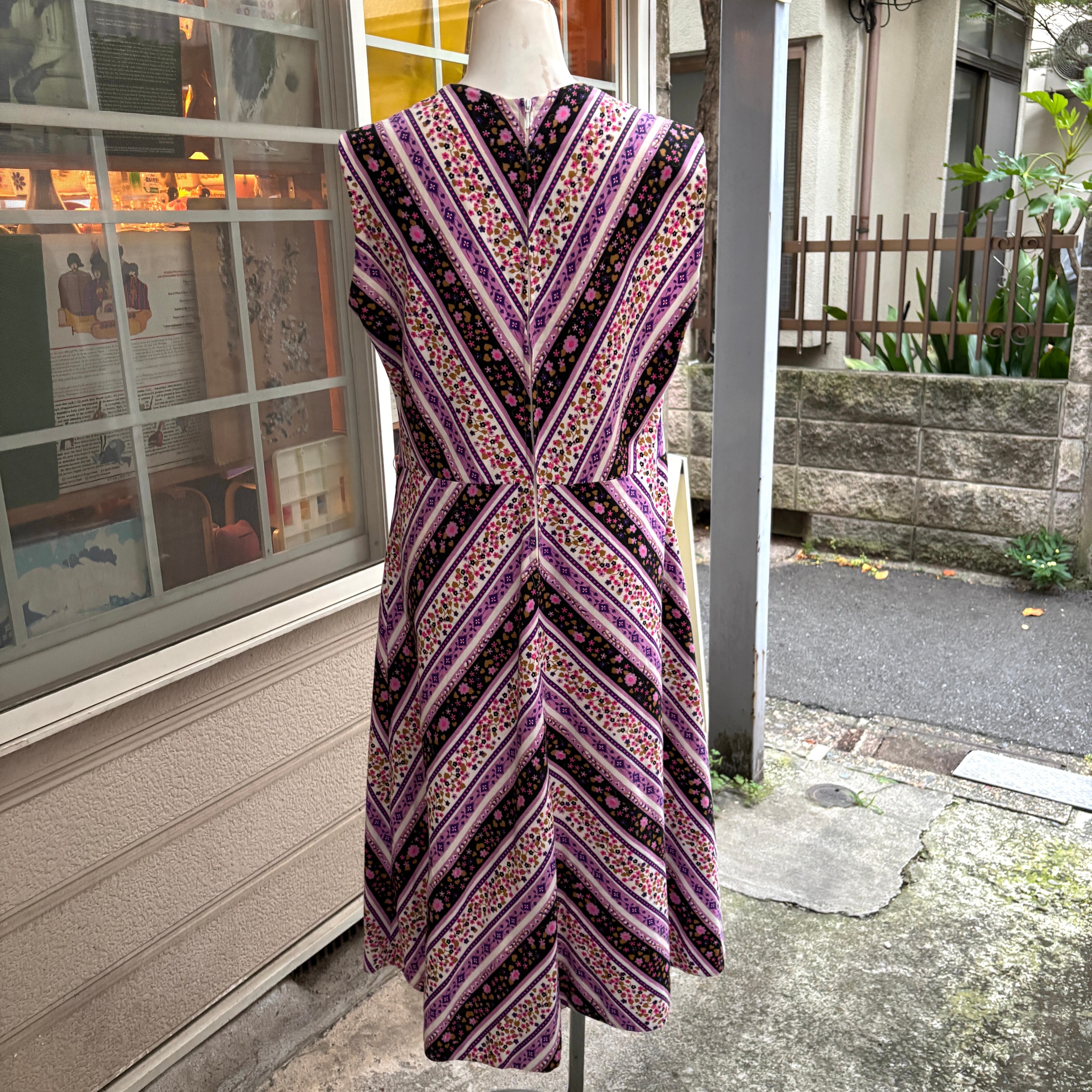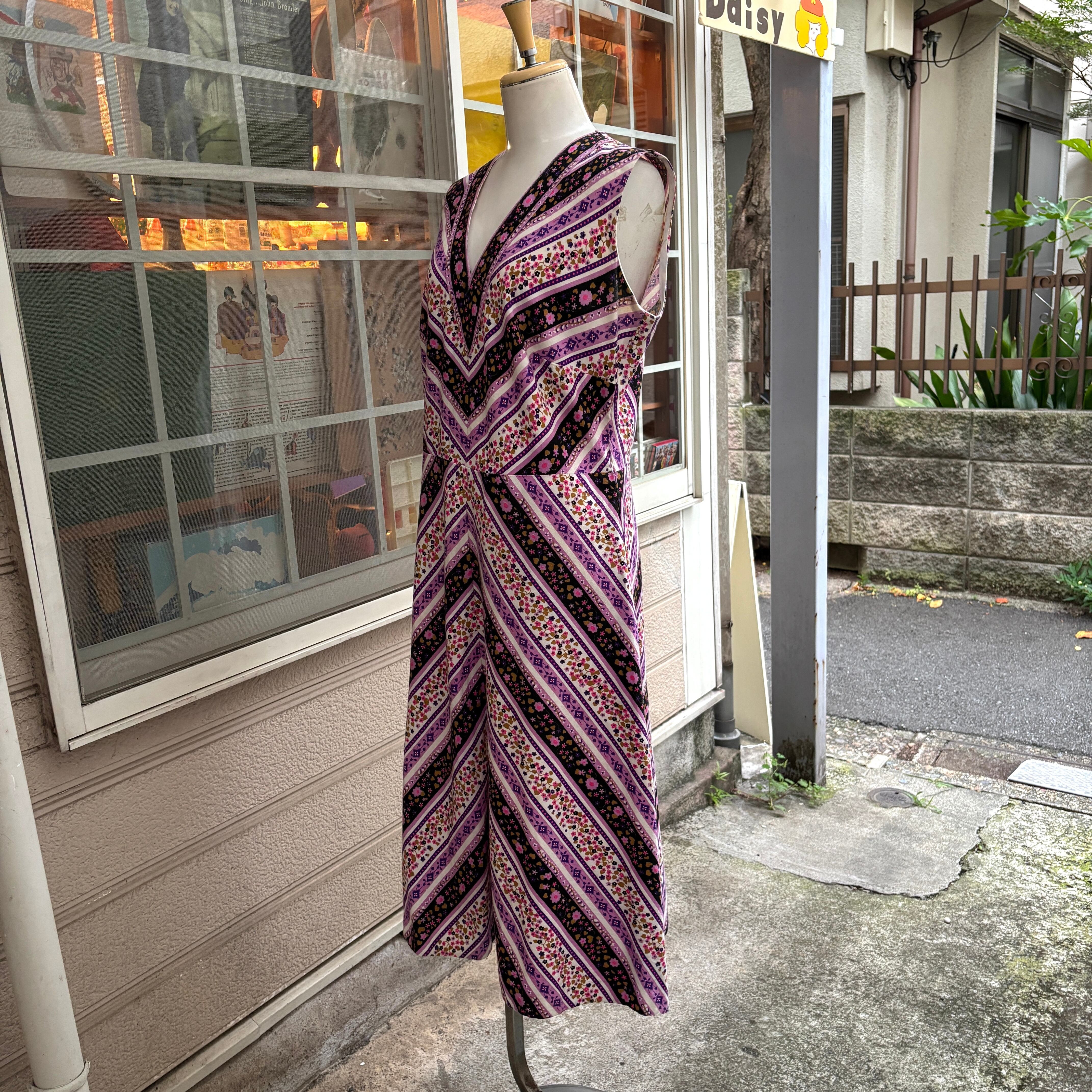 70年代 ヴィンテージ 当時のハンドメイド1点もの フラワー柄 ノースリーブドレスです。