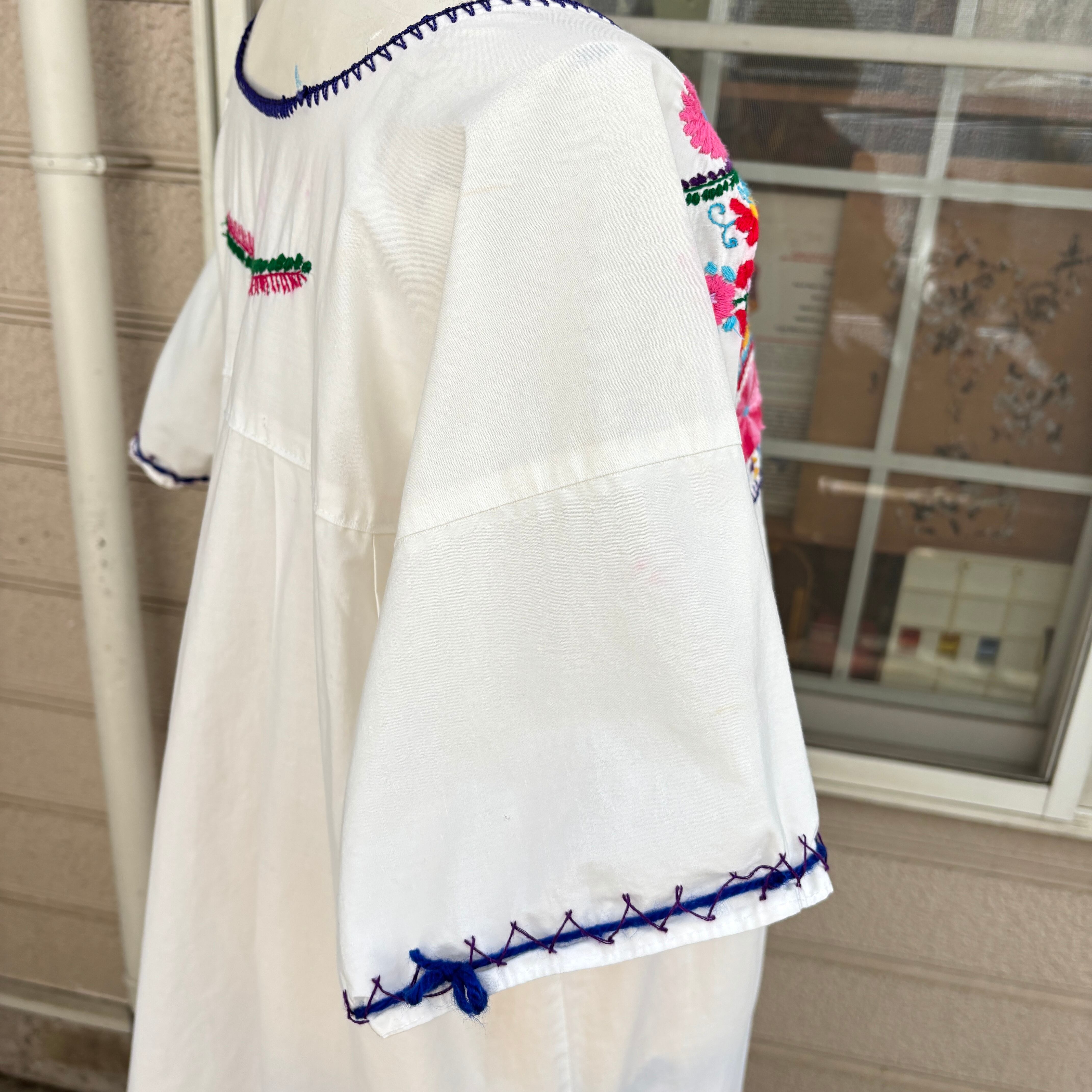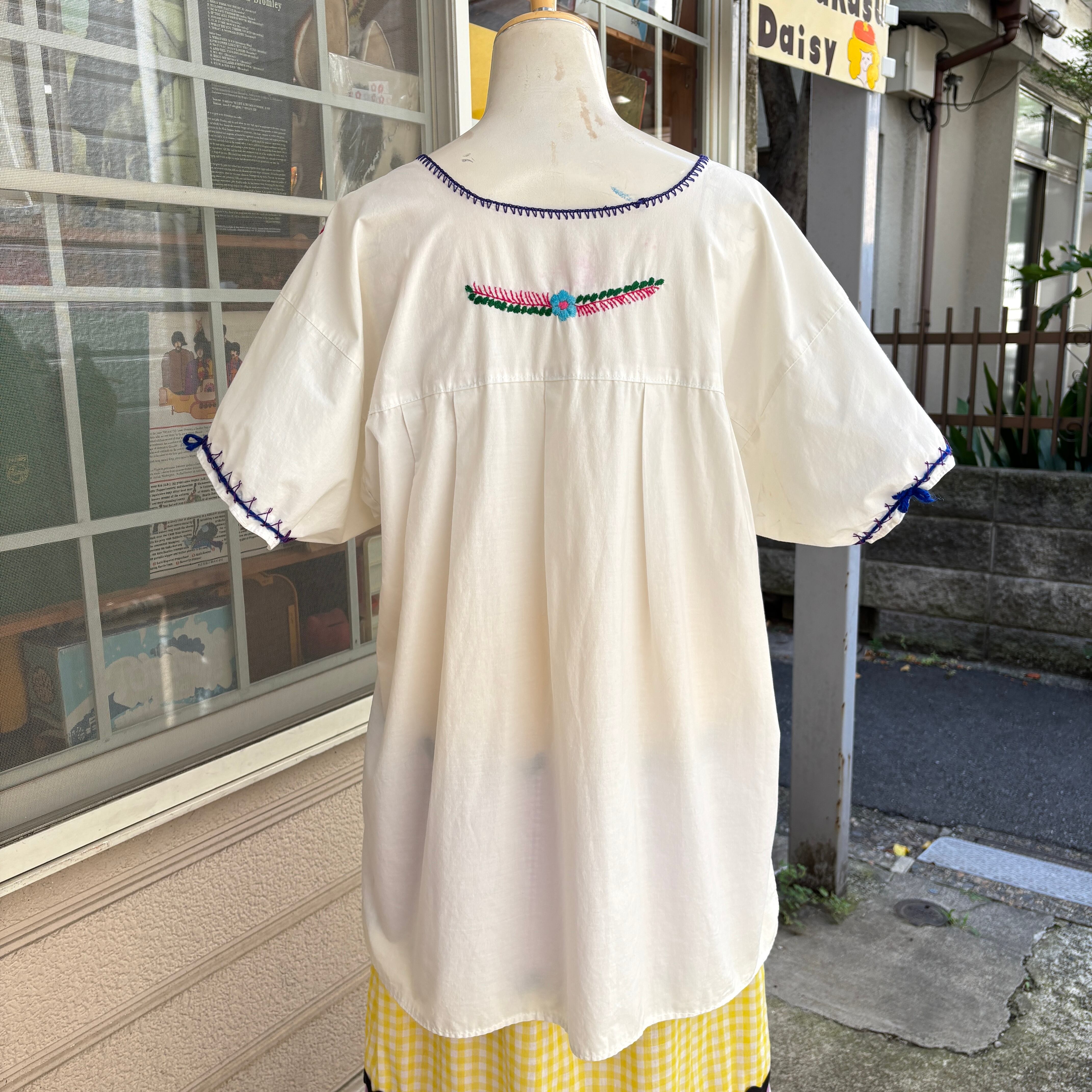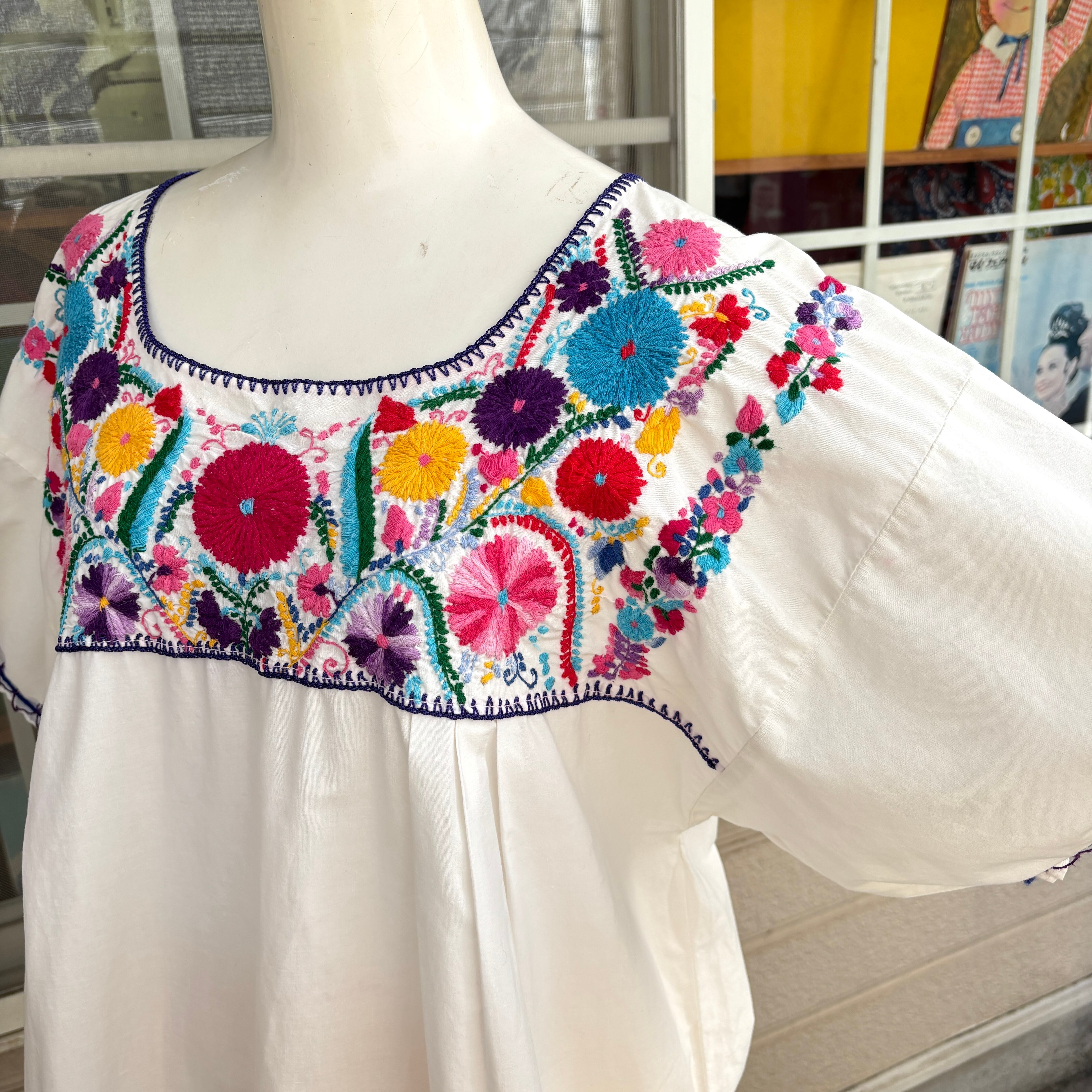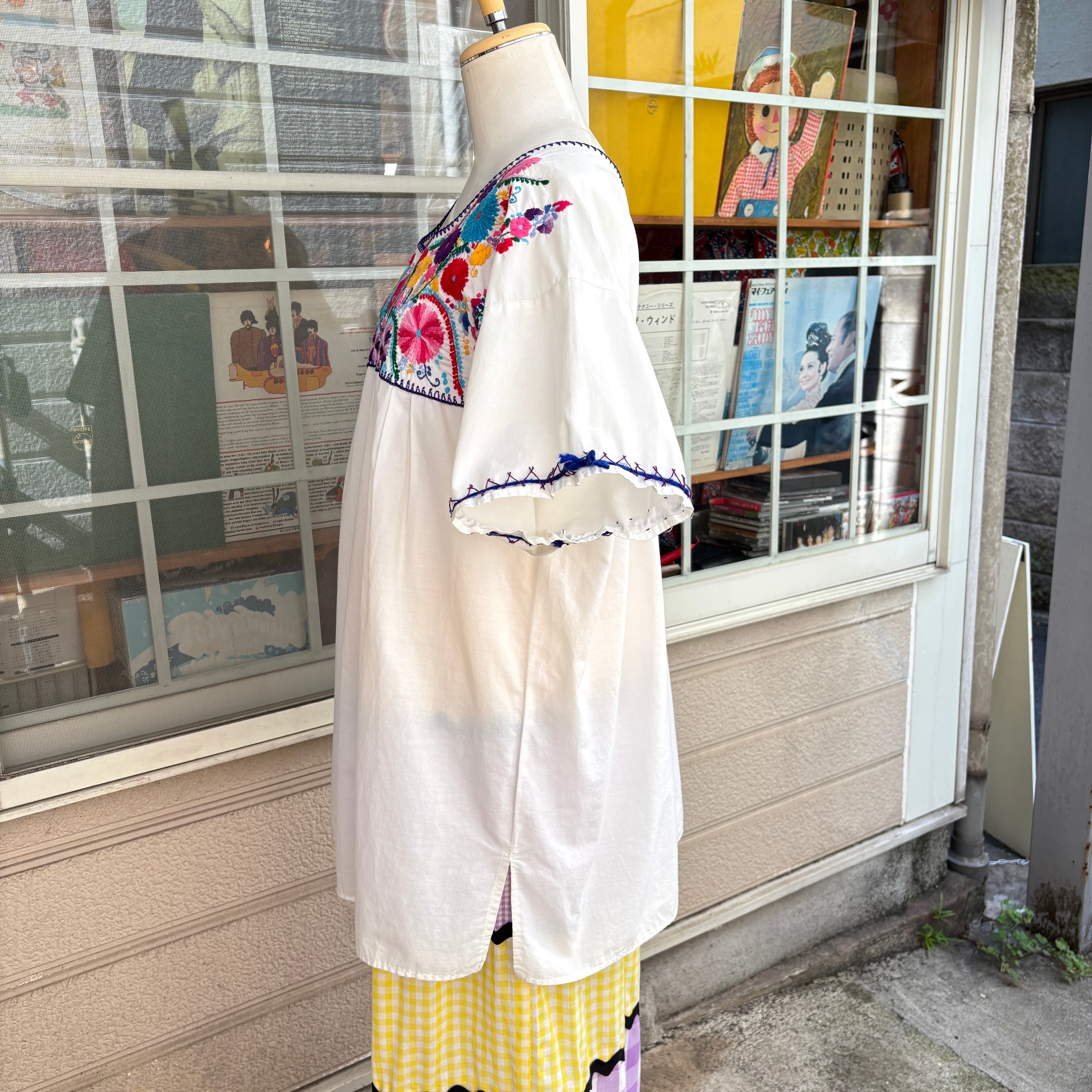 70'S Vintage flower embroidery mexican top。