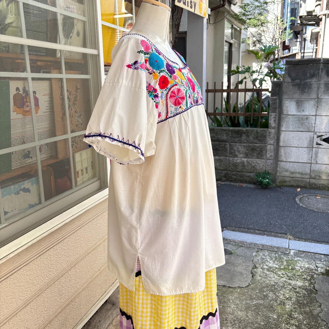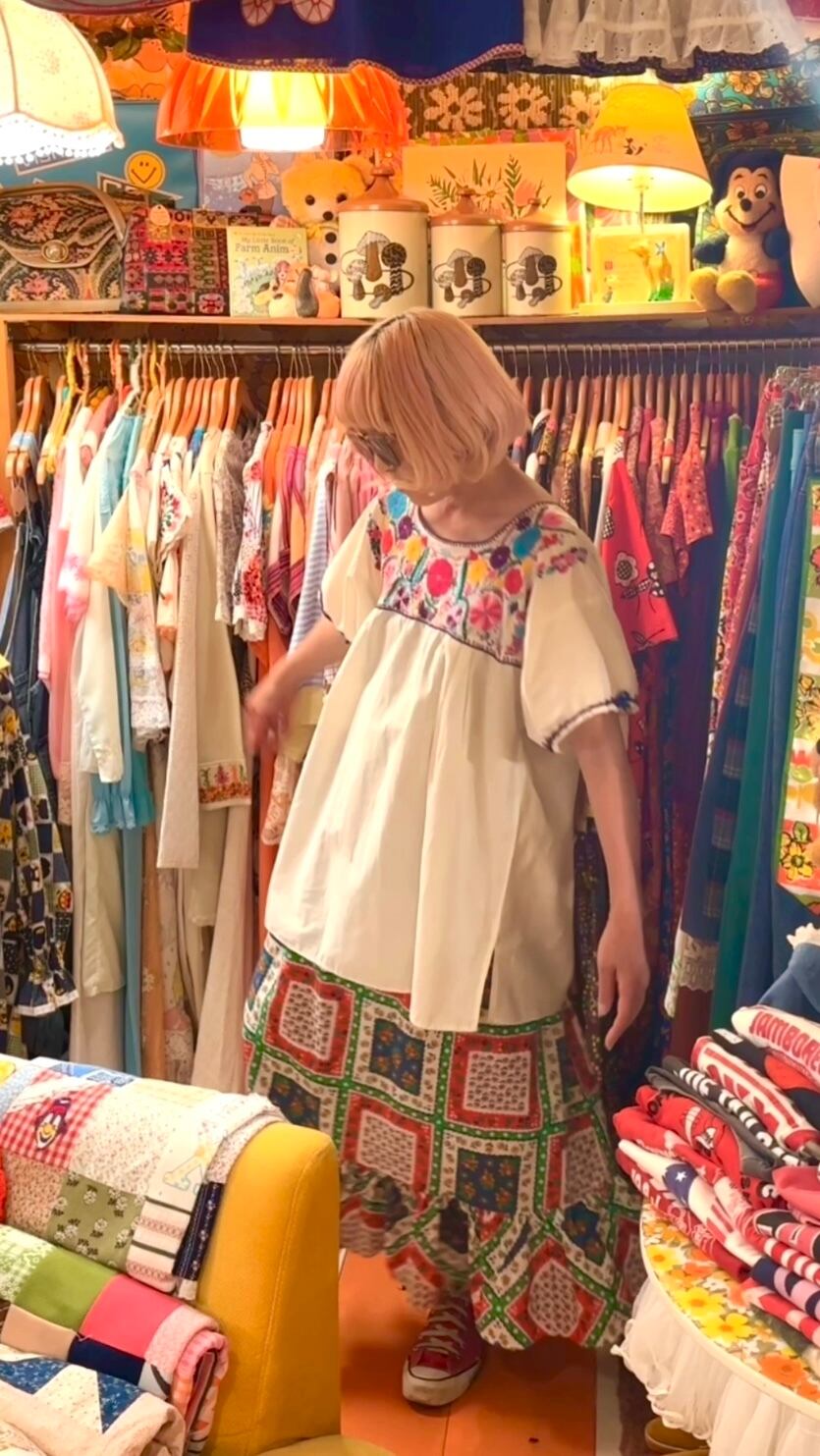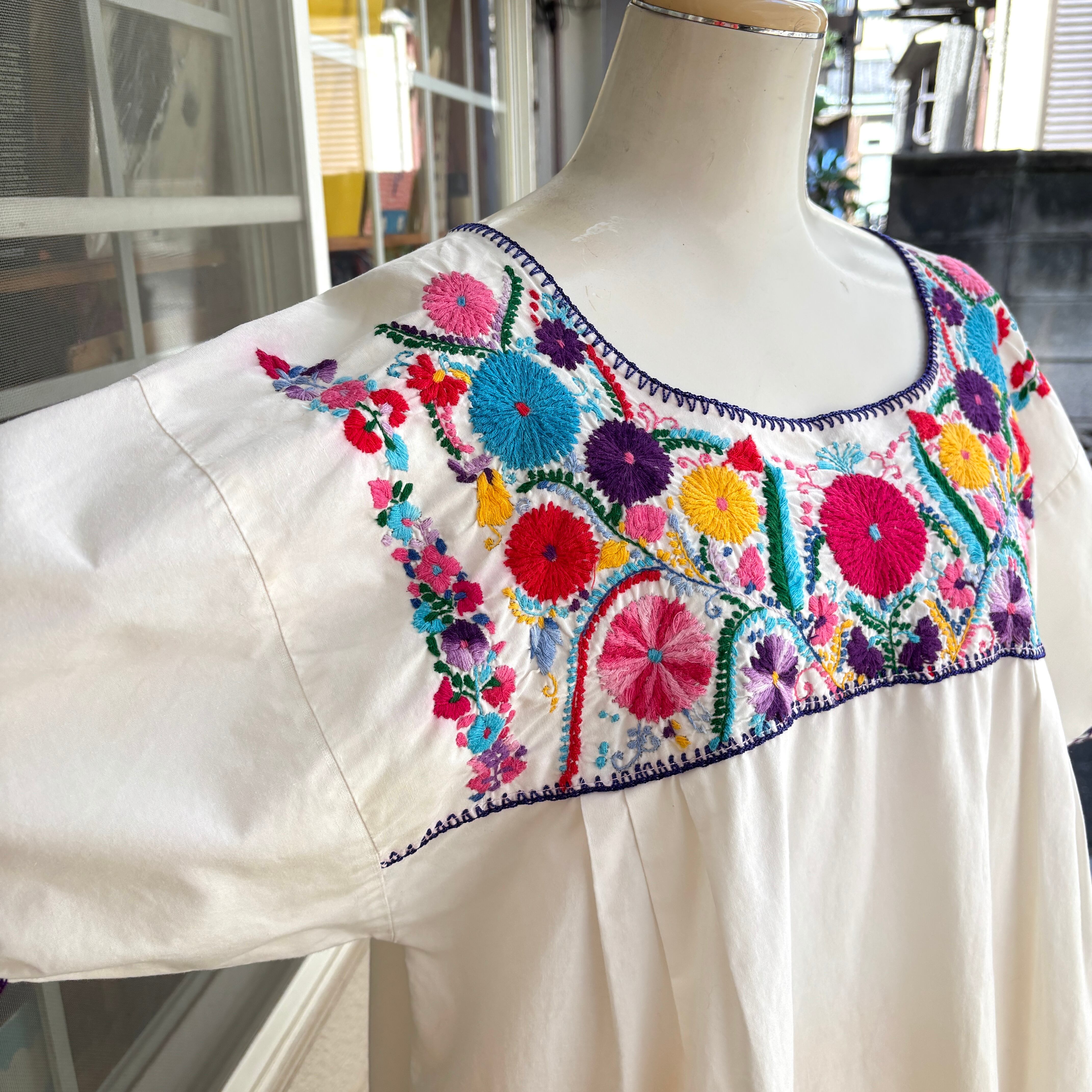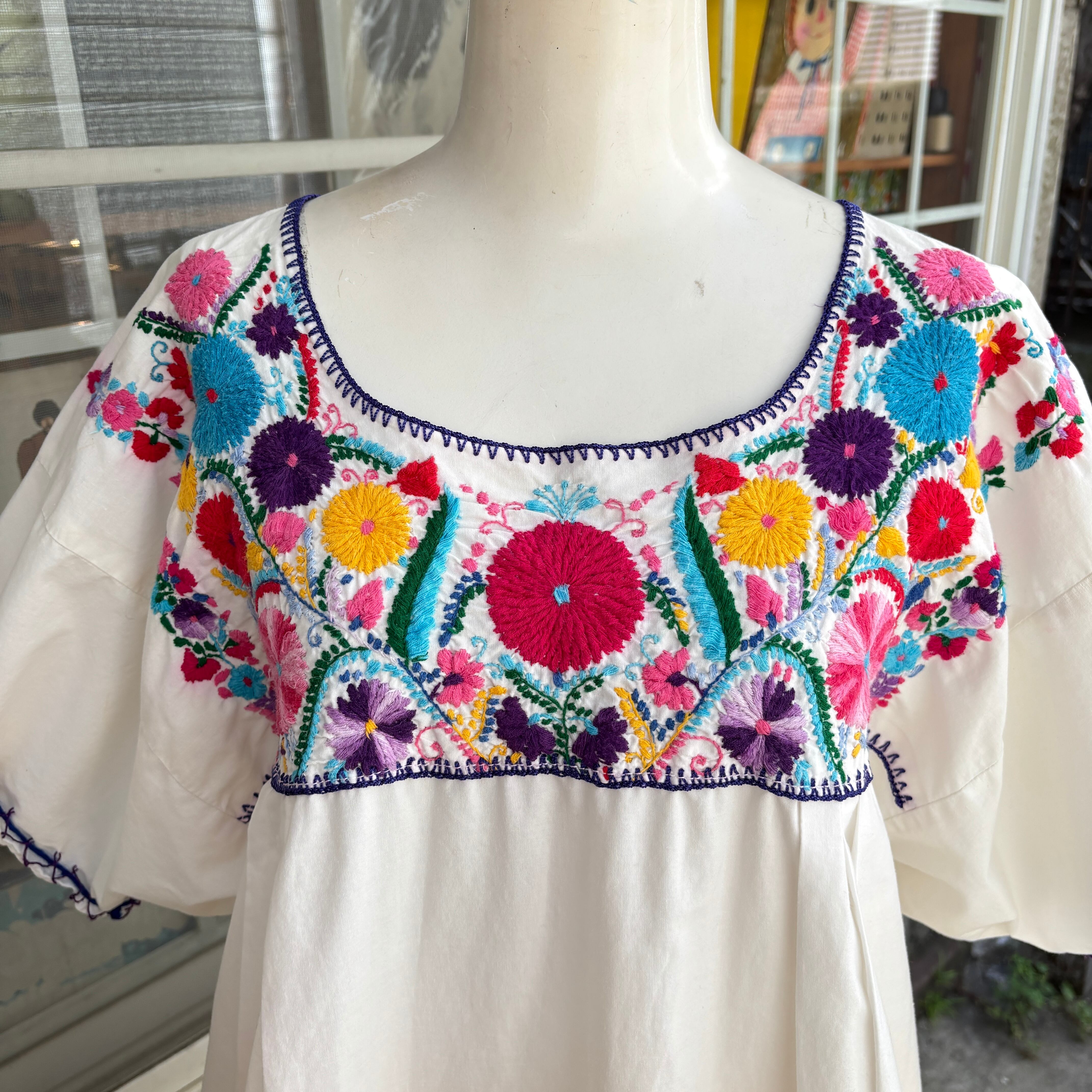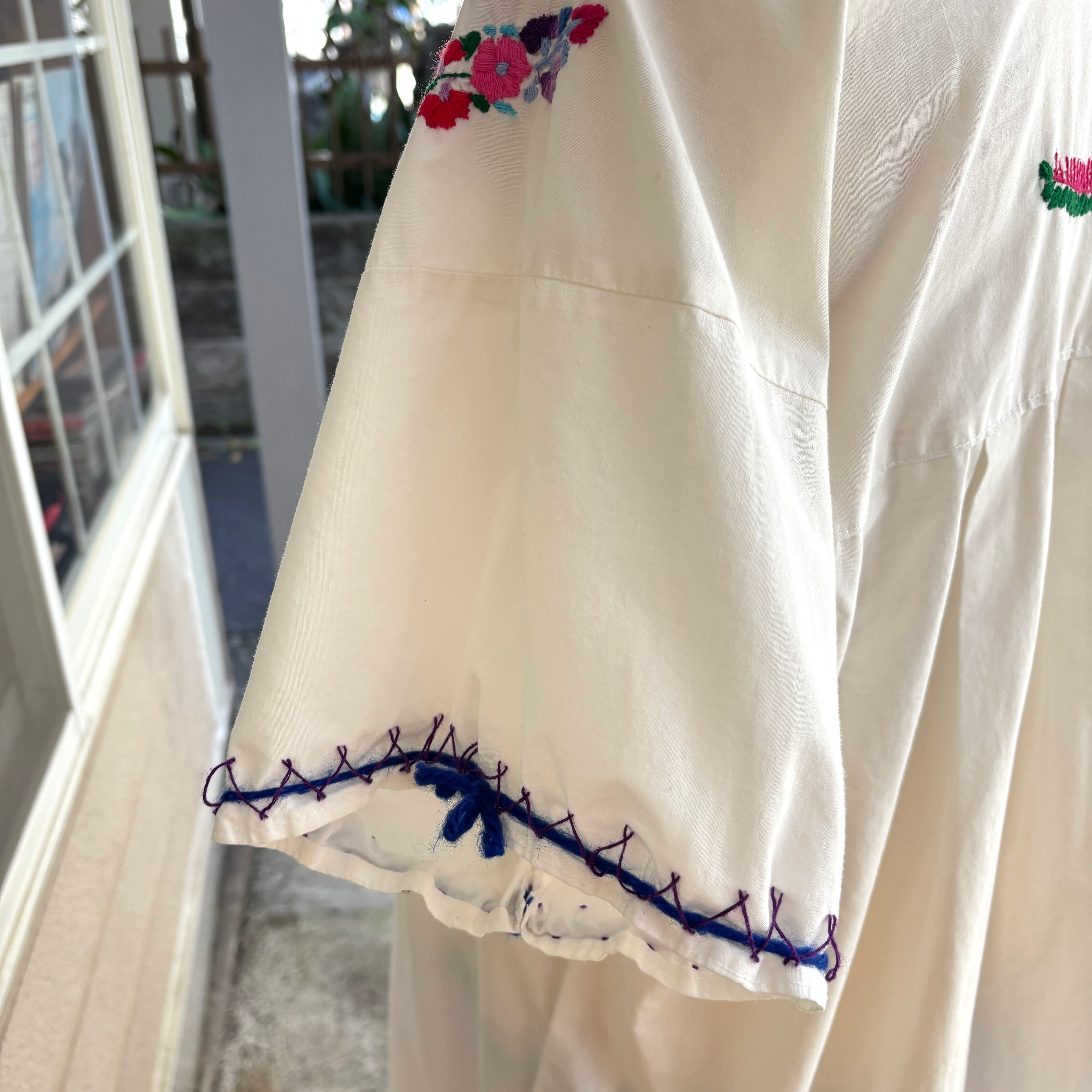 70'S Vintage flower embroidery mexican top。