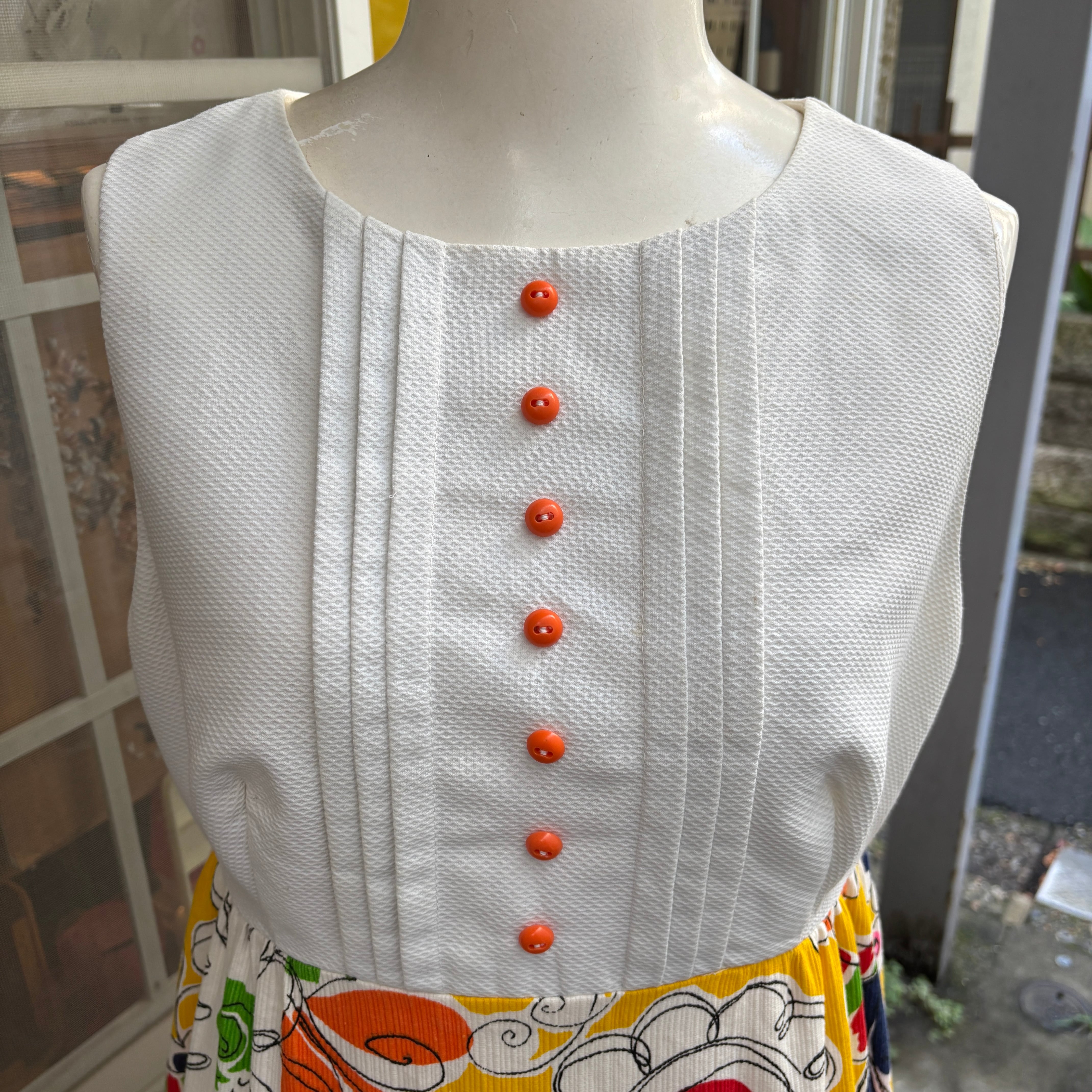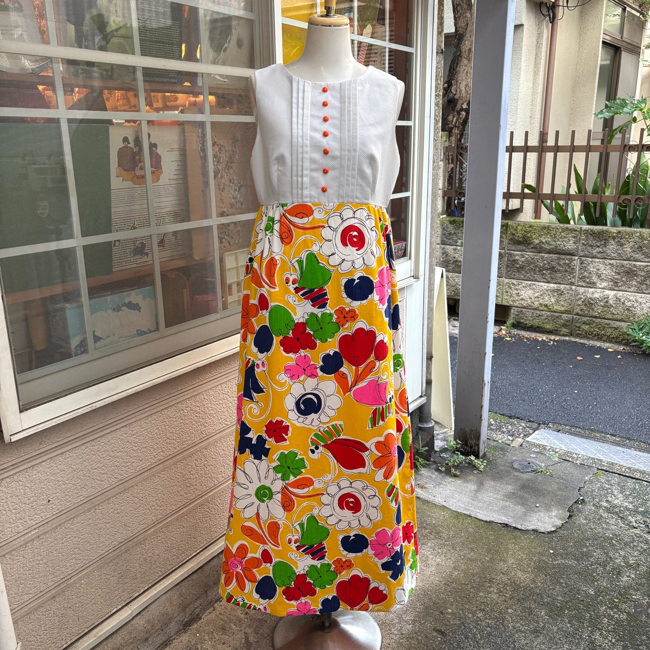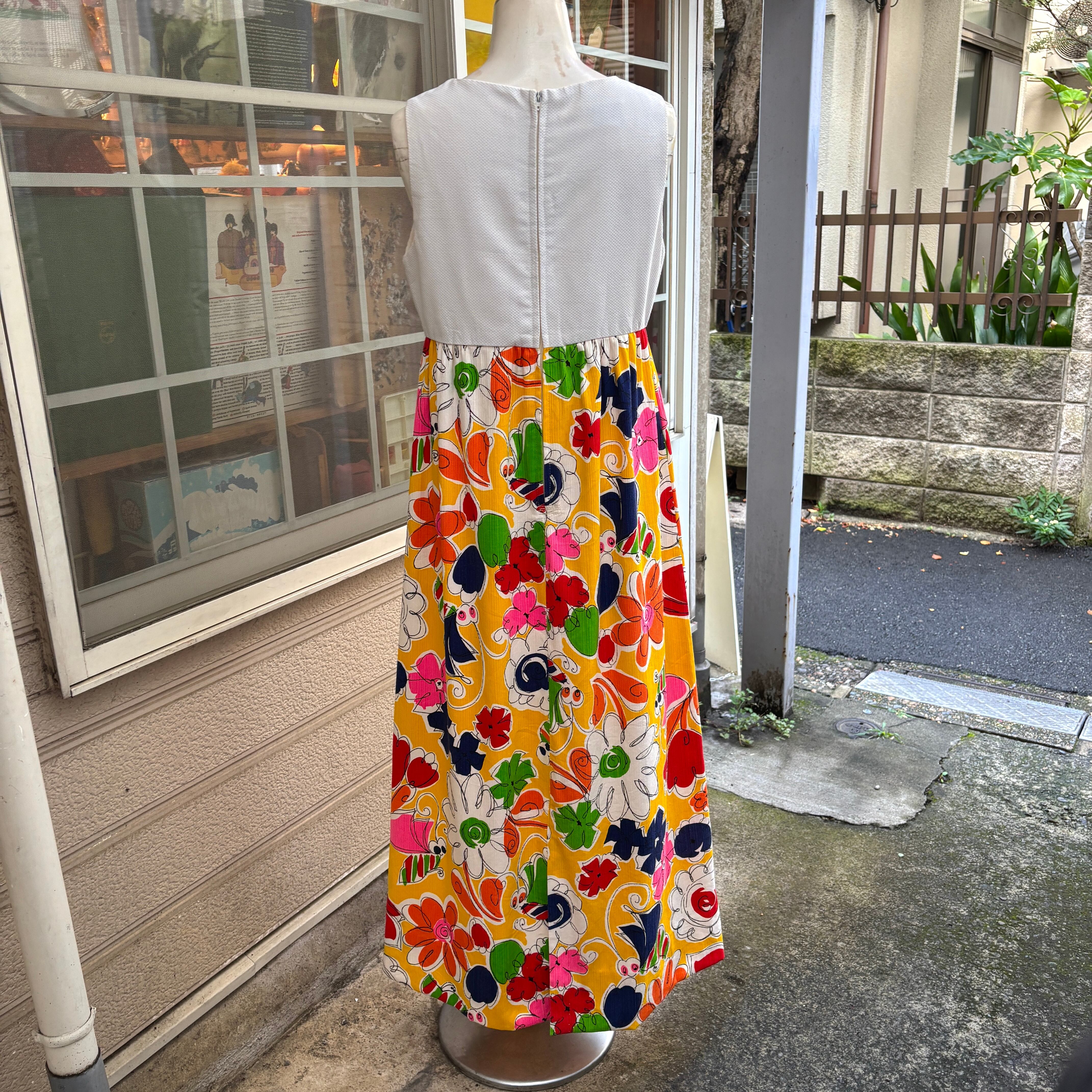 70'S USA Vintage flower&butterfly sleeveless dress。