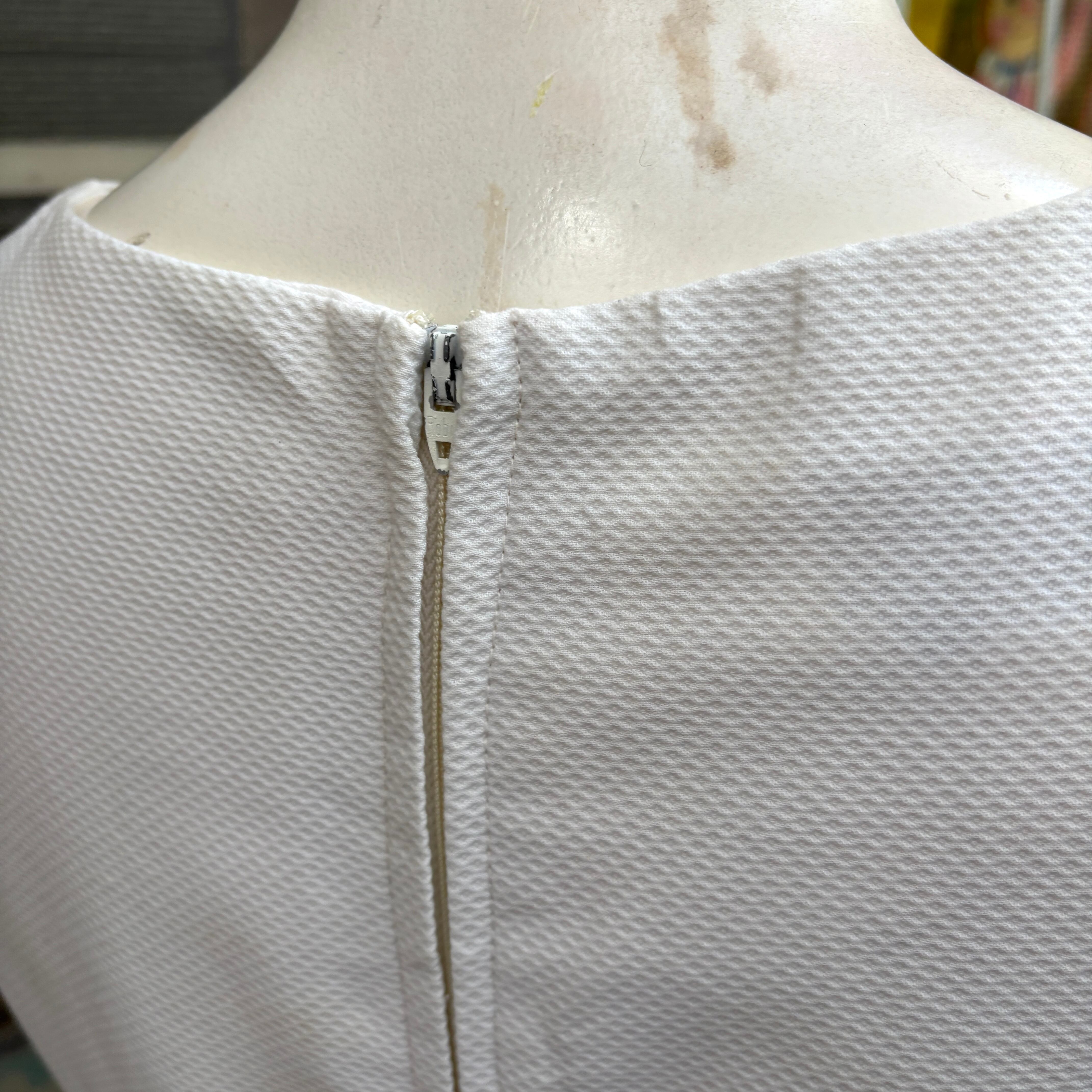 スカートの左サイドに薄っすらとしたシミの上に2つのフラワーパッチのリペアがあります。