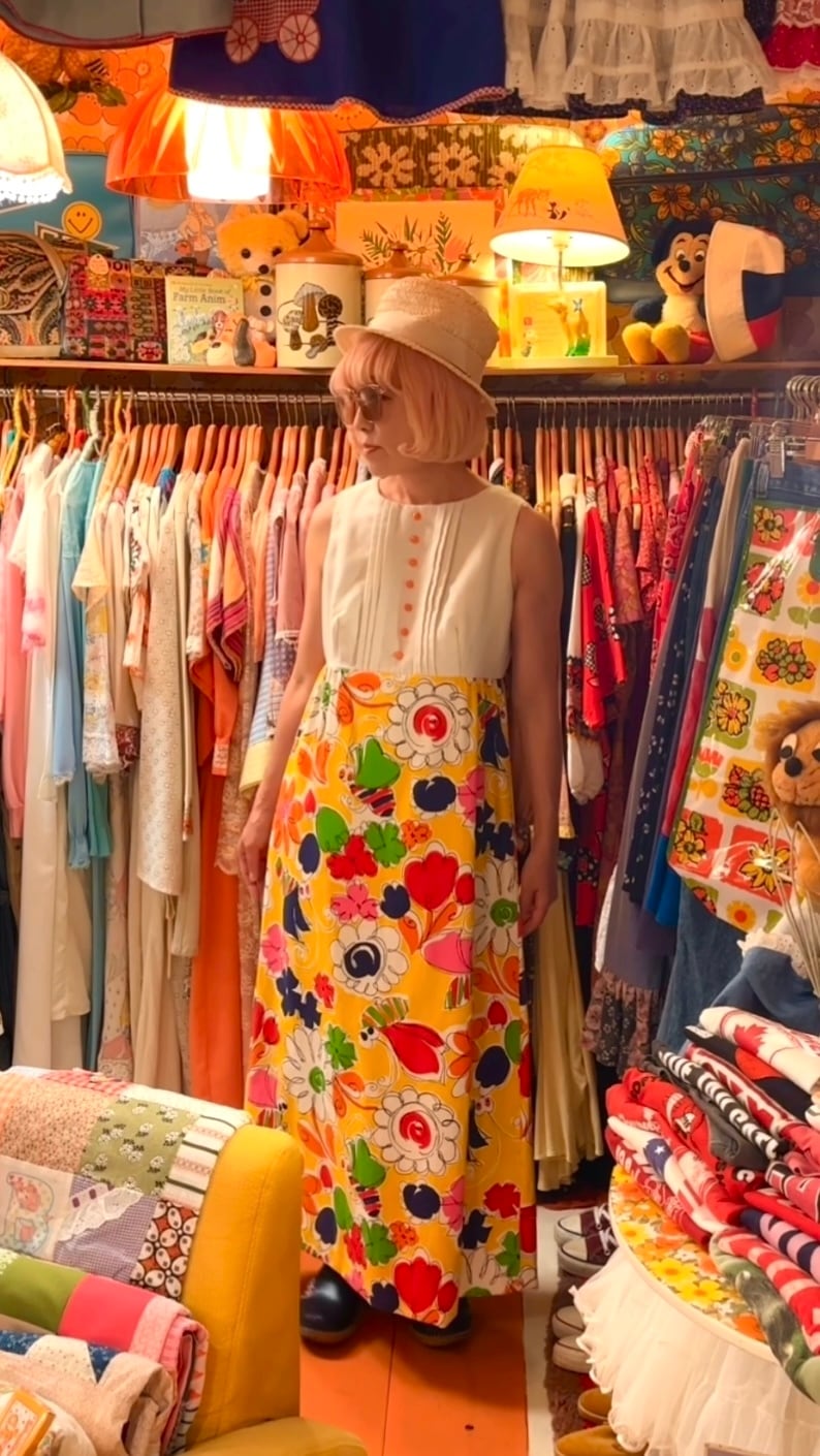 生地特有の若干のシワのクセがありますが、ヴィンテージならではな風合いの生地で、とっても可愛い雰囲気があります。