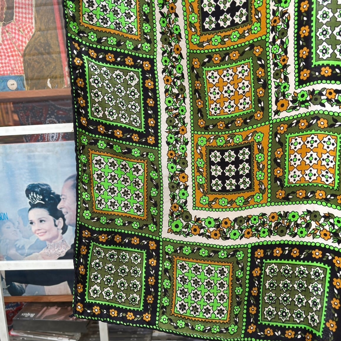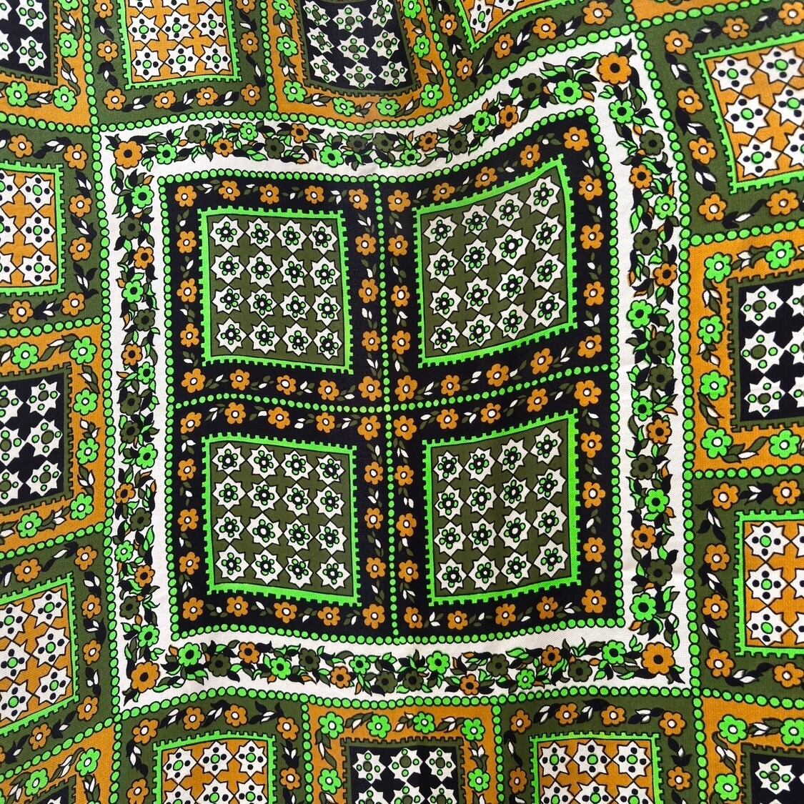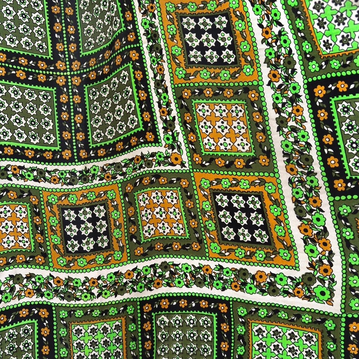 70'S USA Vintage light green flower pattern scarf。