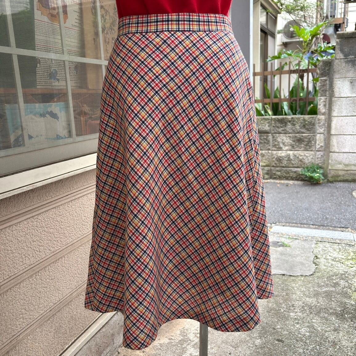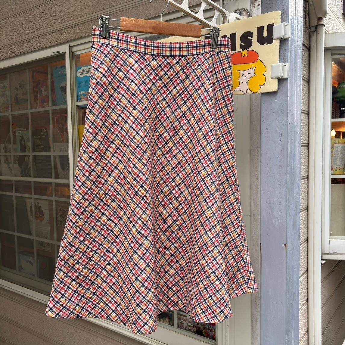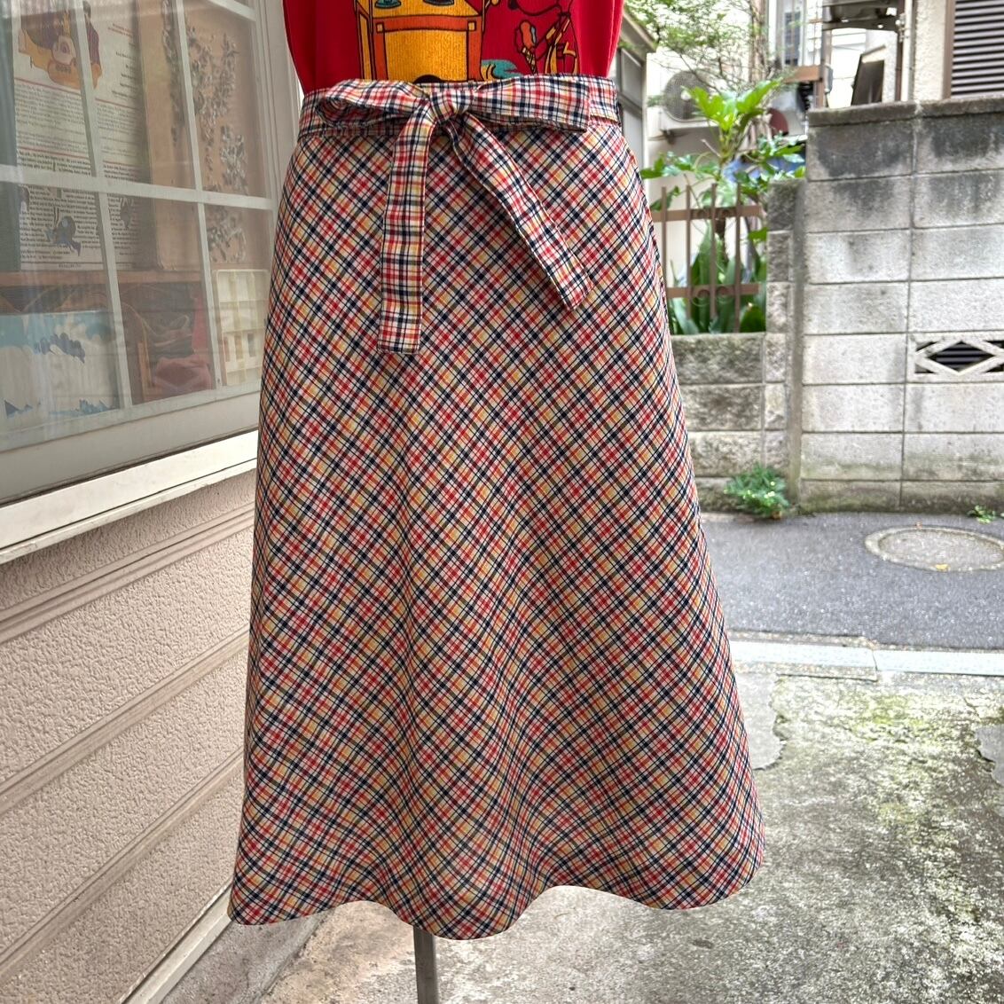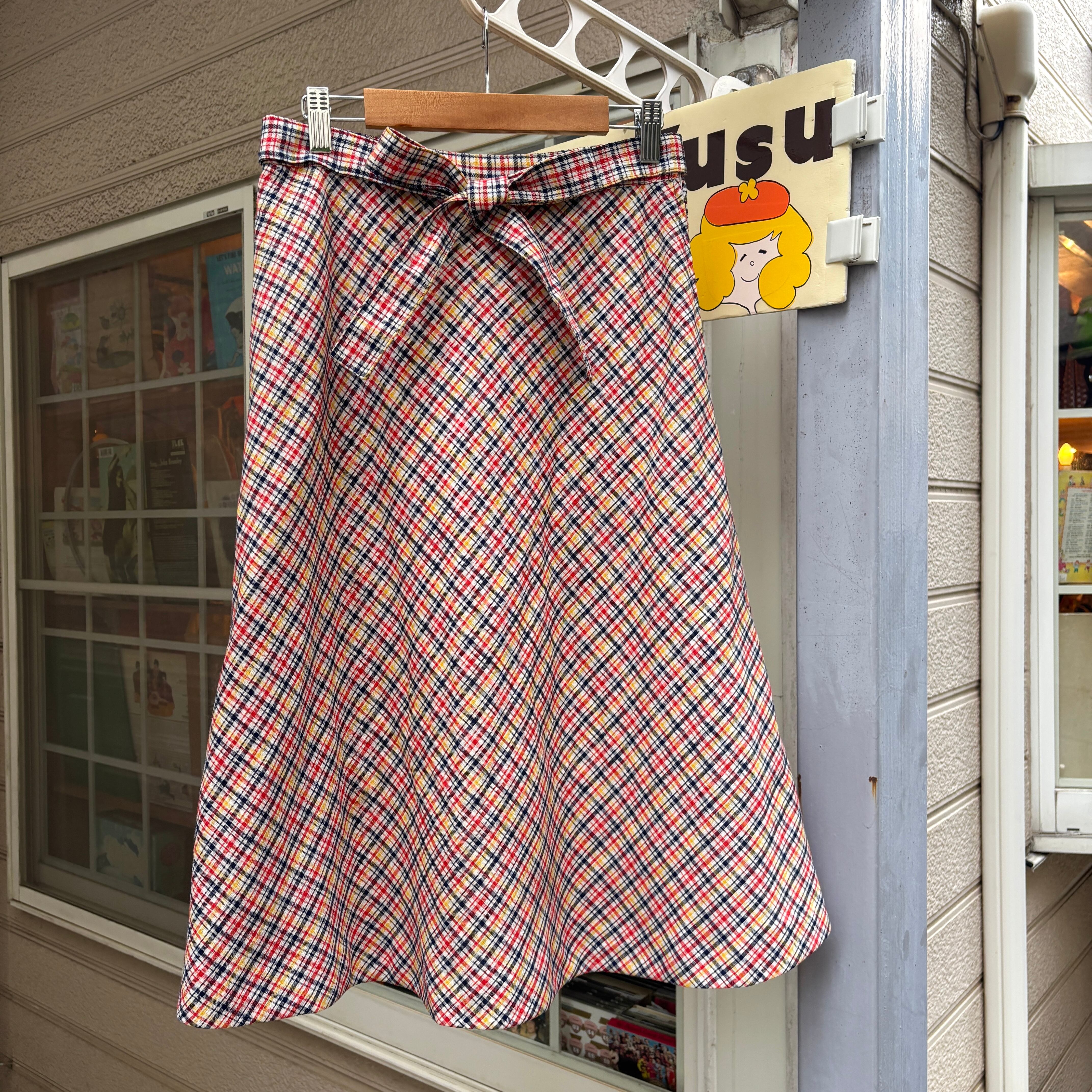 70年代 ヴィンテージ チェック柄 リボンスカートです。