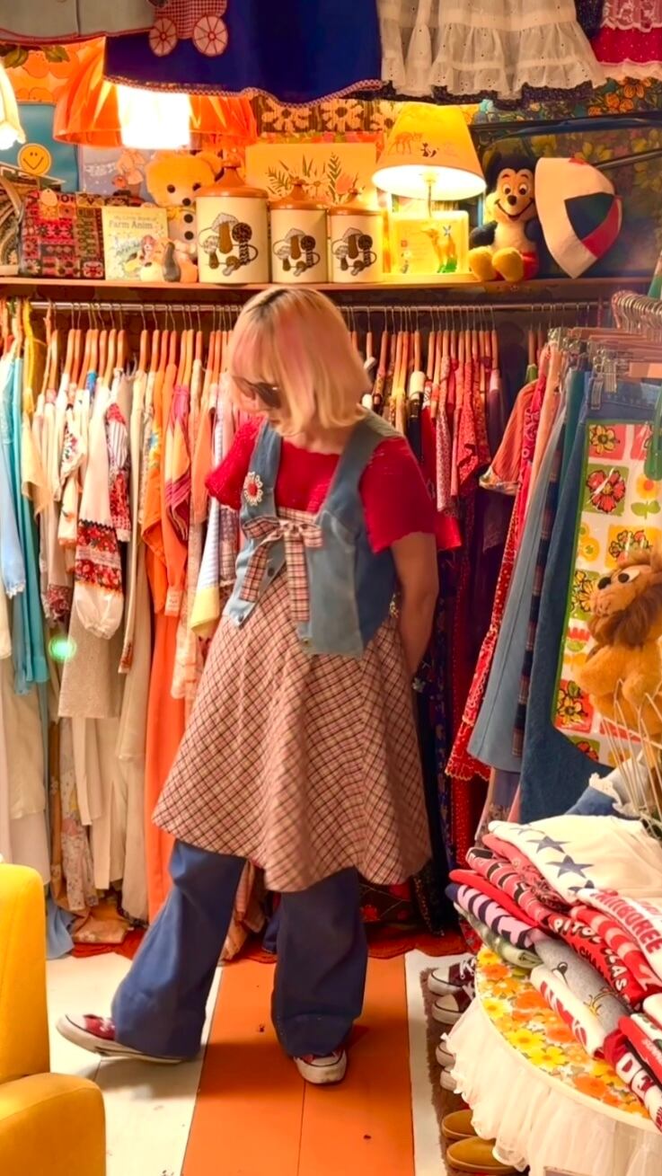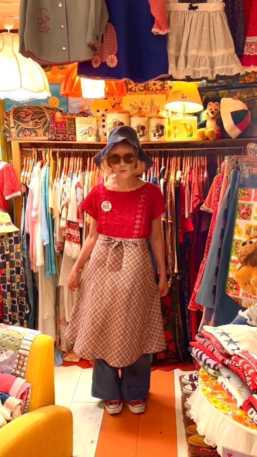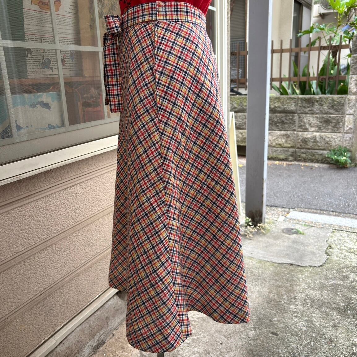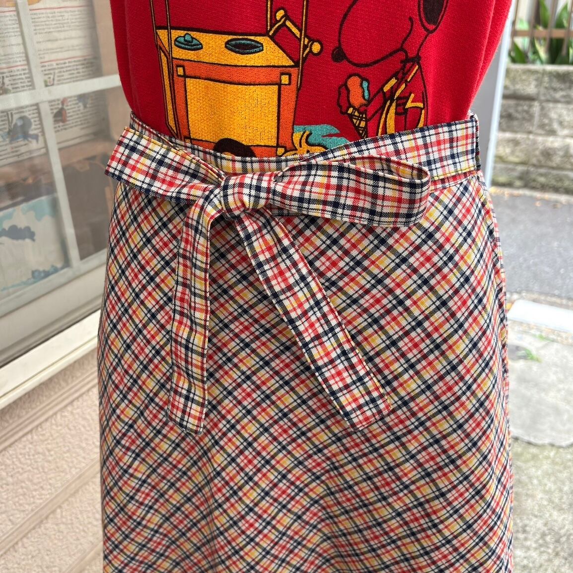 70年代 ヴィンテージ チェック柄 リボンスカートです。