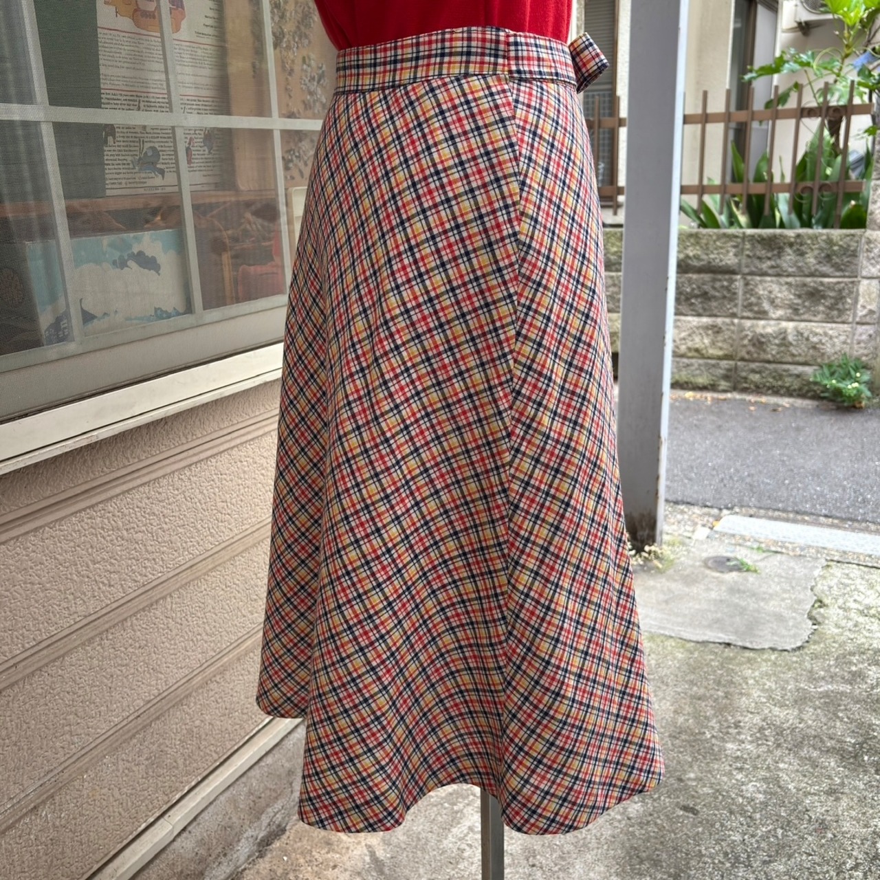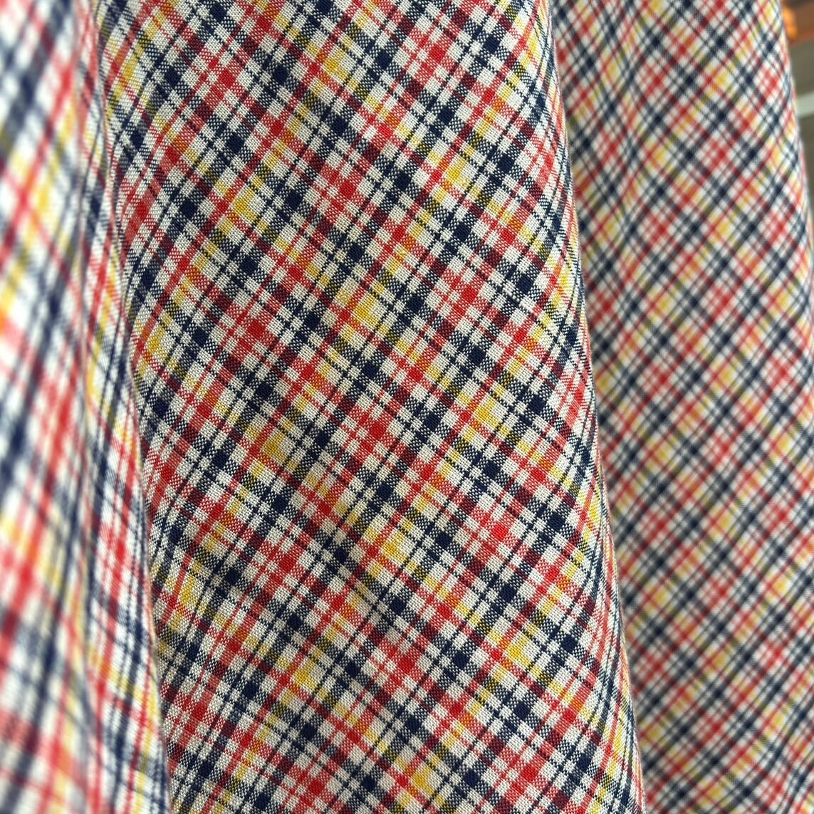 70'S Euro Vintage plaid ribbon skirt。