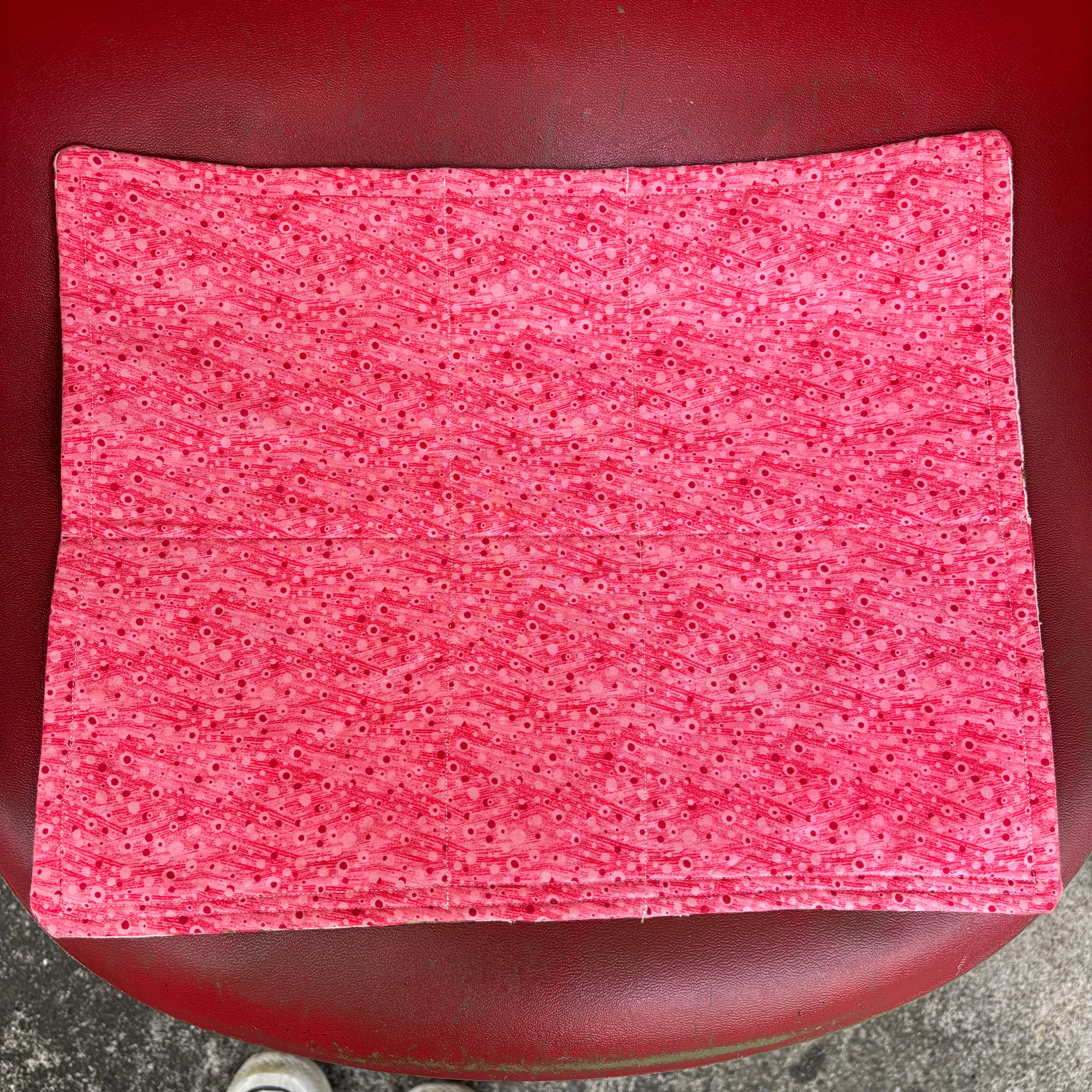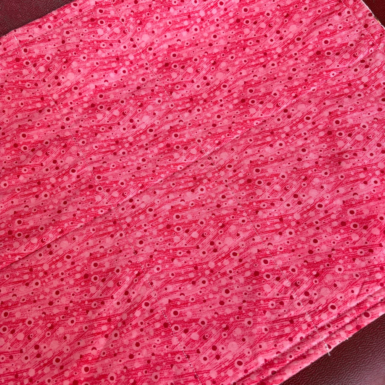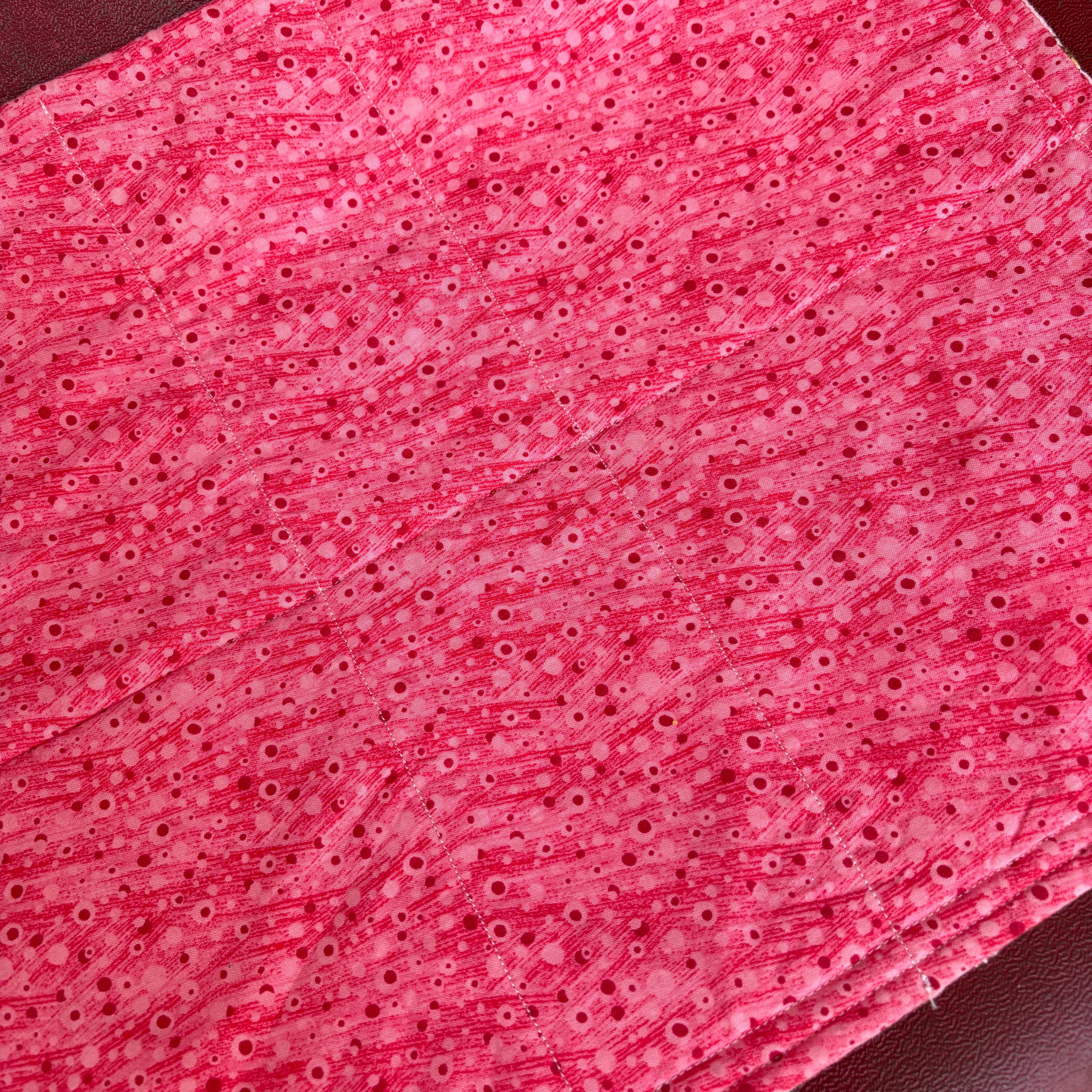 裏面はピンク、レッドの流れるようなデザインの柄の生地になります。