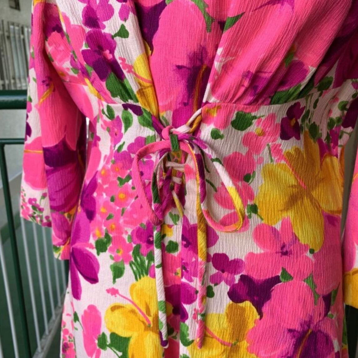 60年代から70年代 ヴィンテージ フラワー柄 ハワイアンドレスです。