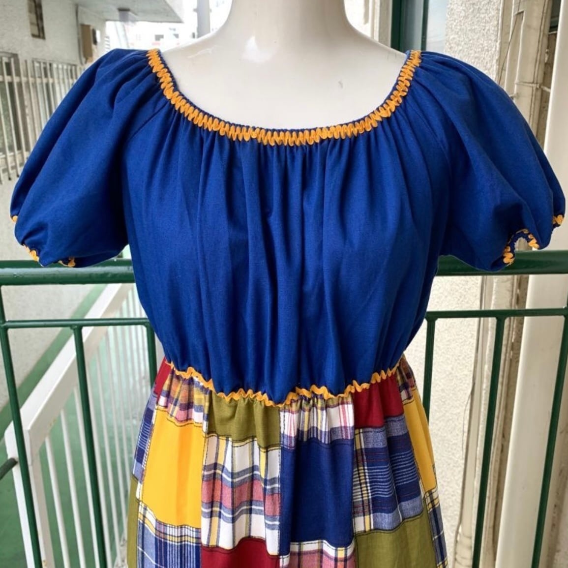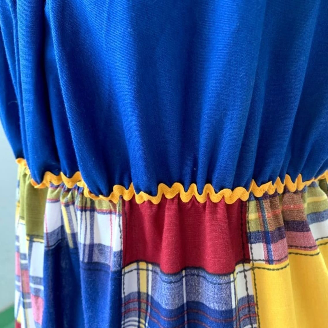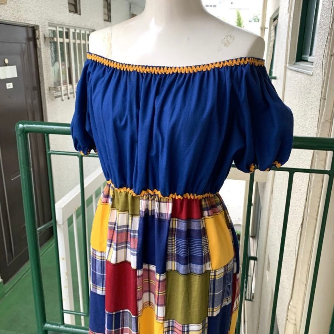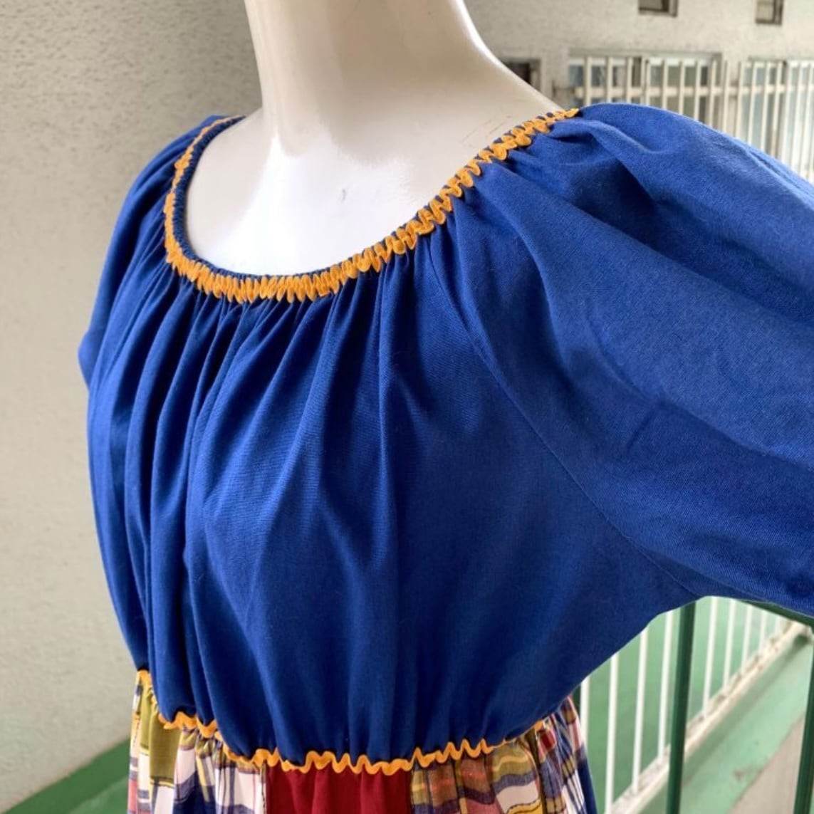 70'S USA Vintage Sears plaid patchwork pattern long dress。