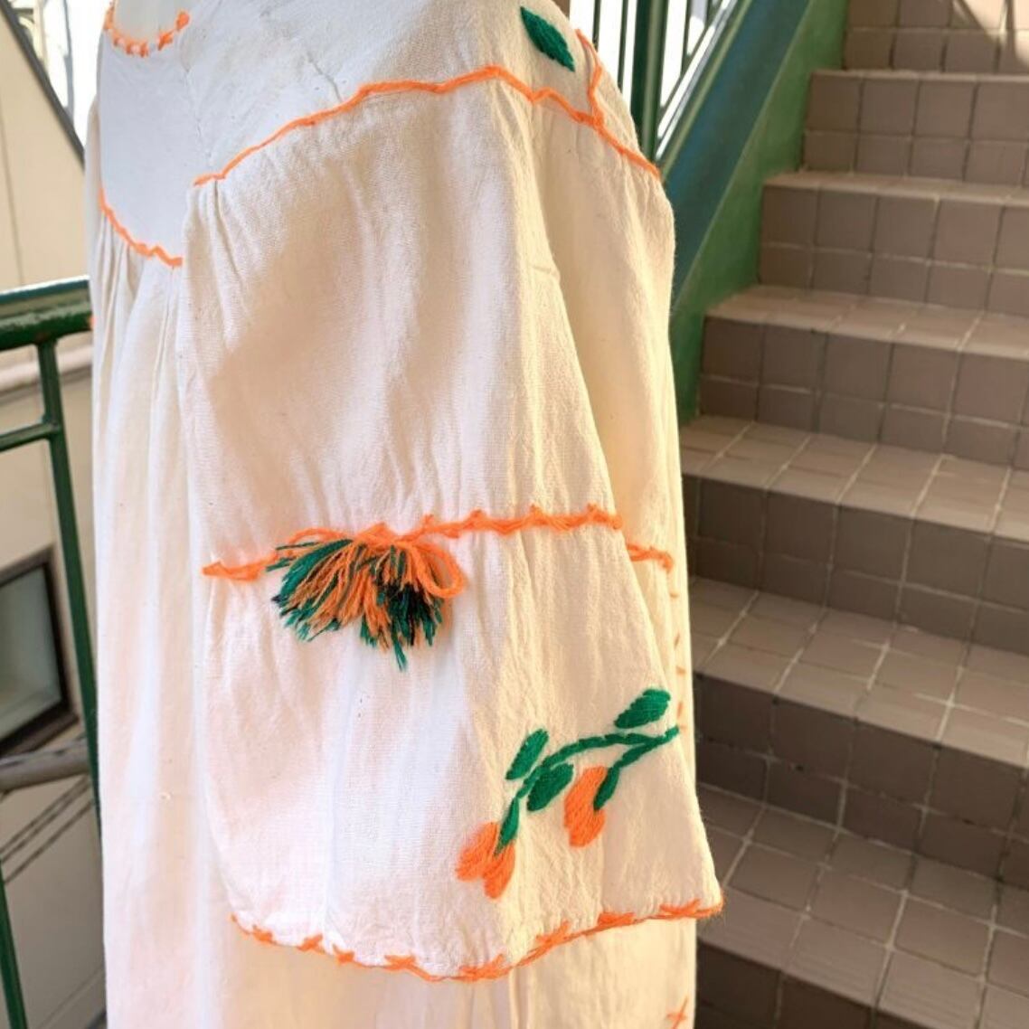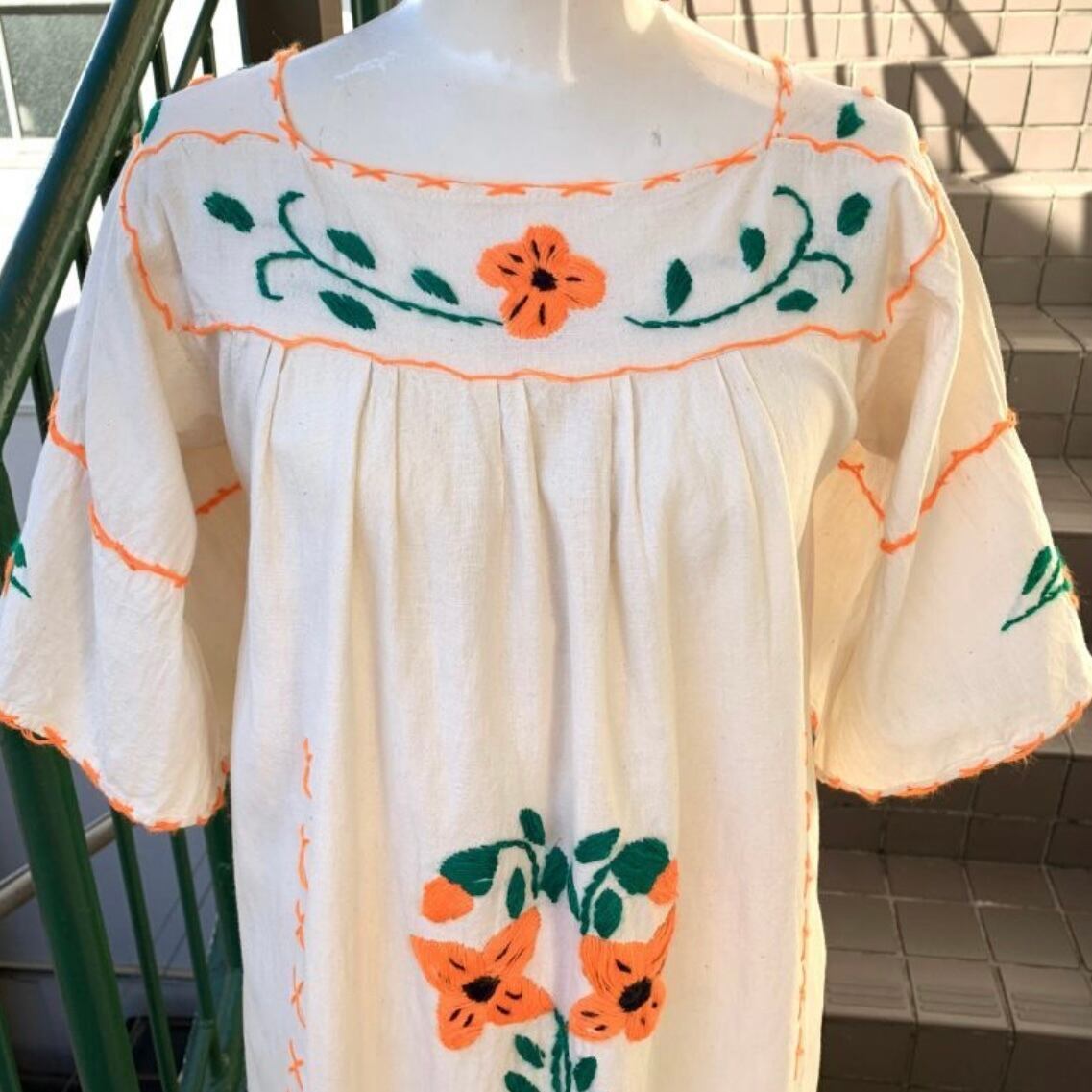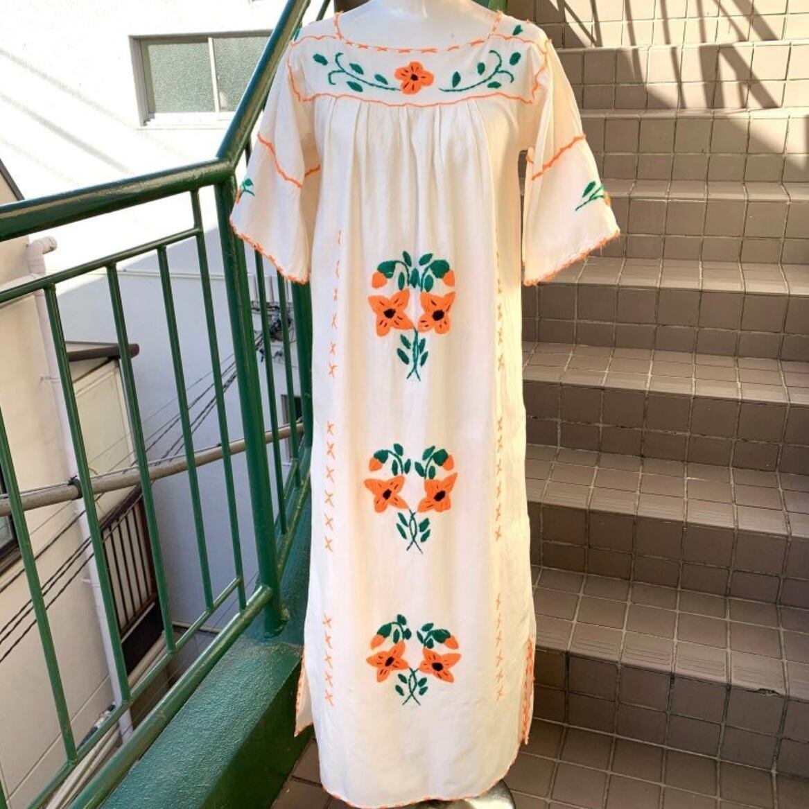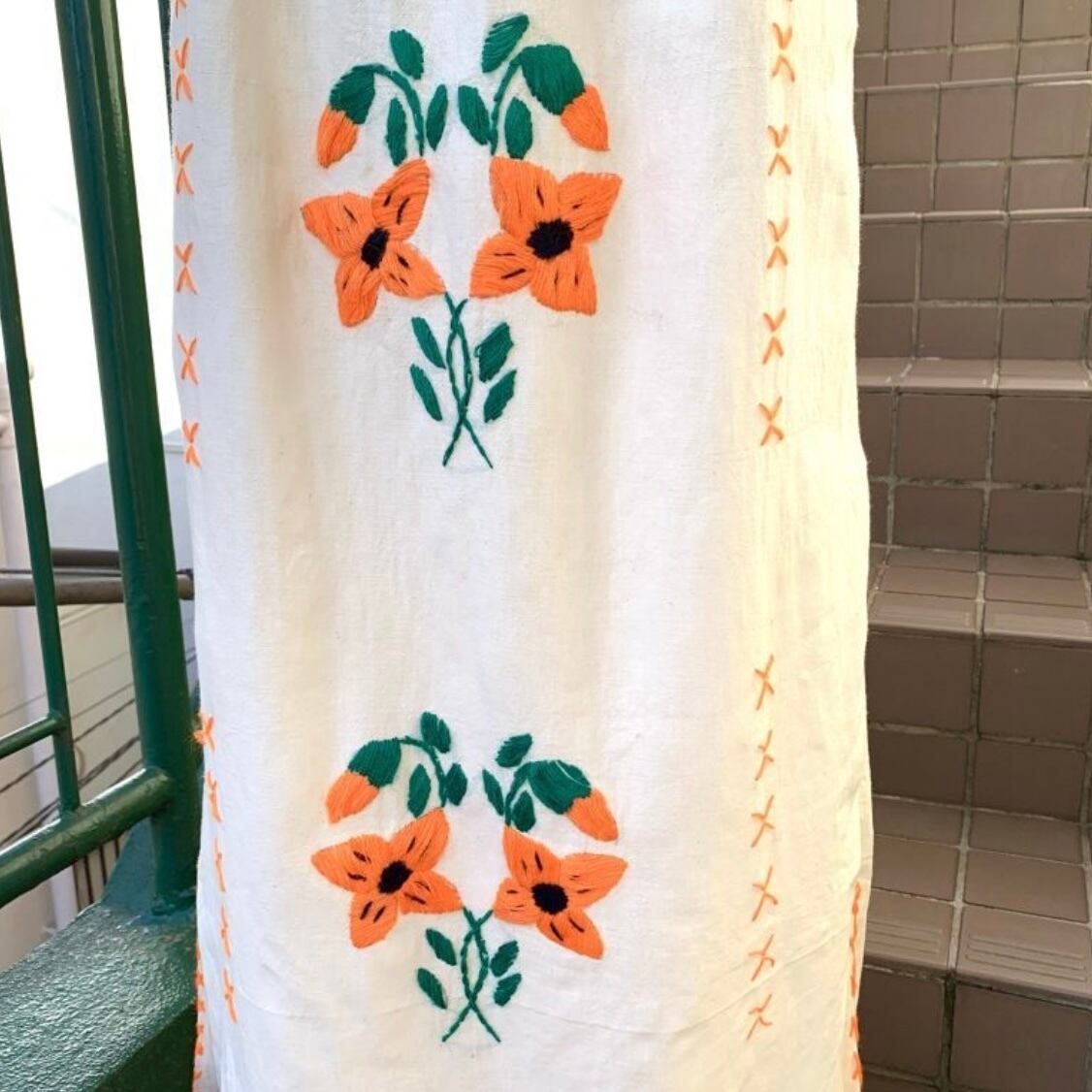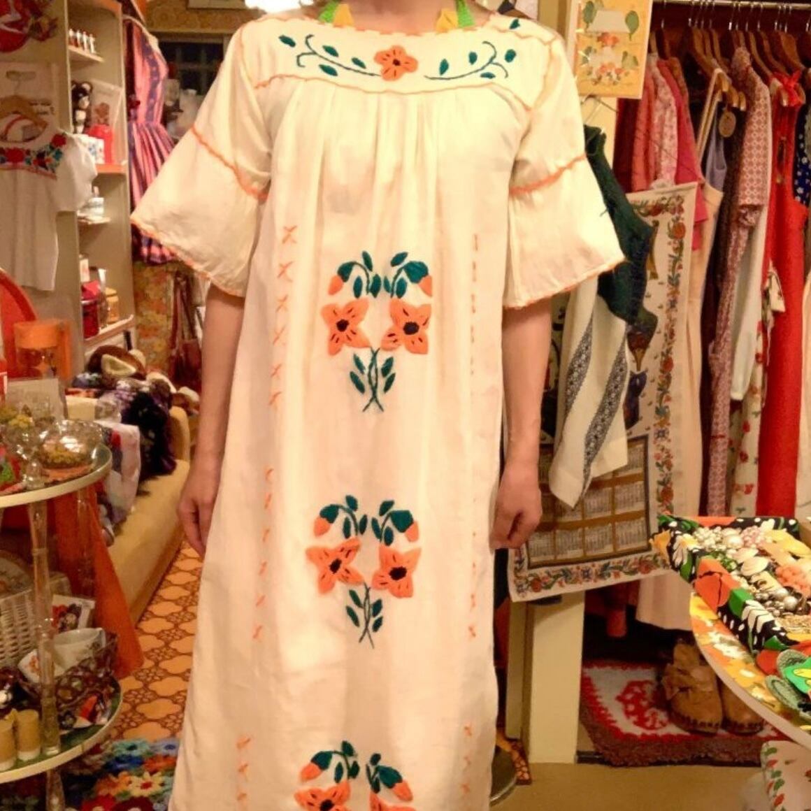 70'S Vintage Mexican Flower embroidery dress。