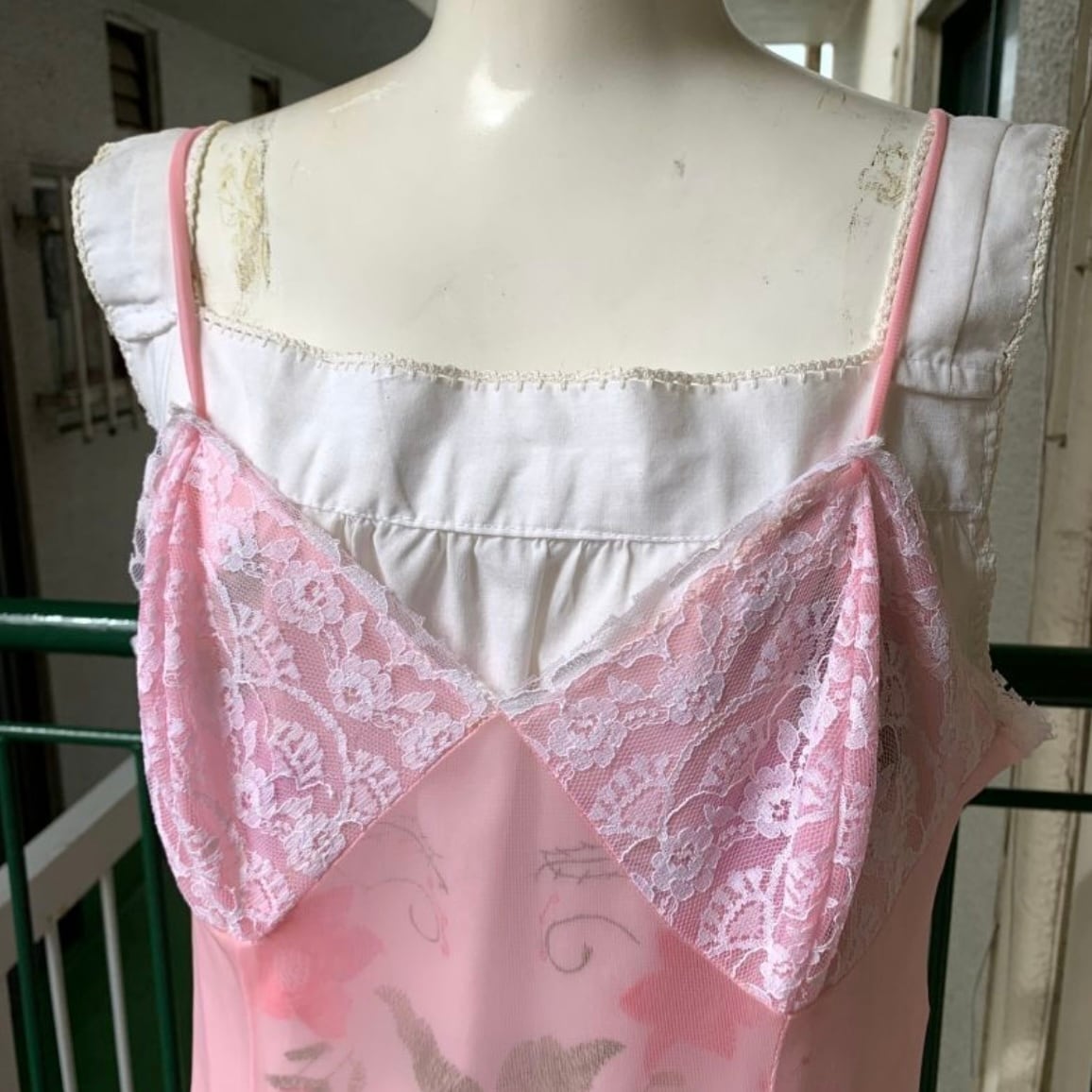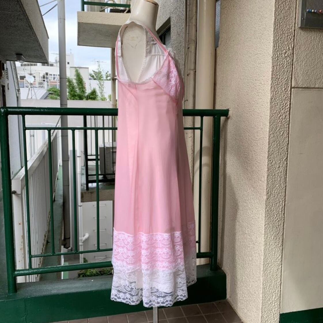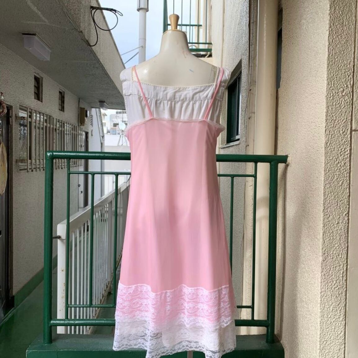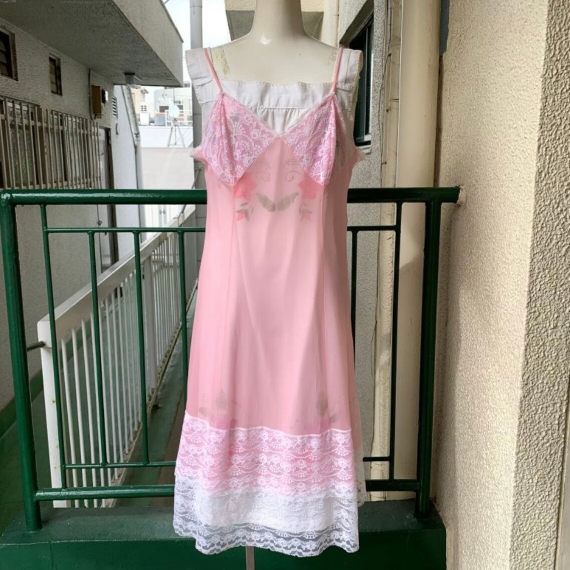 ヴィンテージならではなキュートなピンクカラーにホワイトのフラワーレースがとっても可愛い1着です。